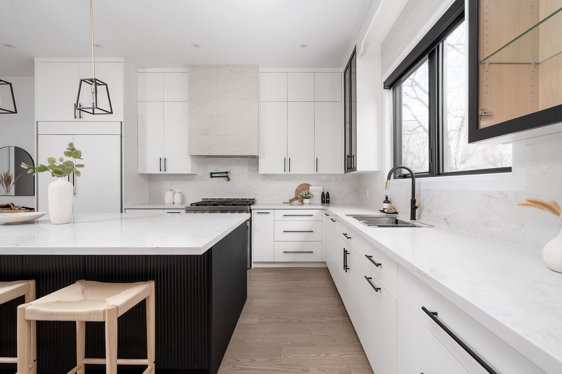 A MUST SEE! This exceptional custom-built 2-storey detached home sits on an impressive 40x151 ft lot, offering outstanding space, luxury & versatility. Featuring 4+2 beds, office, 4.5 baths, excellent curb appeal, B/I garage, private parking, a beautifully finished basement with W/O, this home is thoughtfully designed with high-end finishes for refined living. Inside, soaring ceilings, hardwood floors, quartz countertops, quartz TV/Fireplace mantel & polished porcelain tile in all bathrooms, abundant natural light from large windows throughout& a seamless open-concept layout create an elegant & welcoming atmosphere. The main flr offers a grand foyer with closets, a versatile office, a powder room & access to the garage. The expansive chef's kitchen with S/S appliances, pot filler, large pantry with wine fridge & oversized center island is combined with the dining area & a cozy living room featuring a striking custom stone fireplace & TV mantel with custom millwork. Sliding doors lead to a large, private fenced backyard with an interlocking patio, ideal for outdoor living & entertaining. The 2nd Flr showcases a luxurious primary retreat complete with a spa-like 5PC ensuite with heated floors, a custom designed W/I closet & a 2nd W/I closet. A 2nd bed includes a 4PC ensuite & double closet, while two additional bedrooms, each with double closets, share a 4PC bathroom. A convenient laundry room with sink, cabinetry & a linen closet completes this level. The high-ceiling finished basement with W/O & radiant floor heating offers exceptional flexibility, featuring two additional bedrooms & a second kitchen with living area, a spacious family room & a cold room, an area perfect for in-laws, guests, or extended family. Additional highlights include a sound system on the main floor & backyard, & security cameras. Located in a quiet & sought-after pocket of Clairelea, this remarkable home delivers the perfect blend of elegance, comfort & functionality.