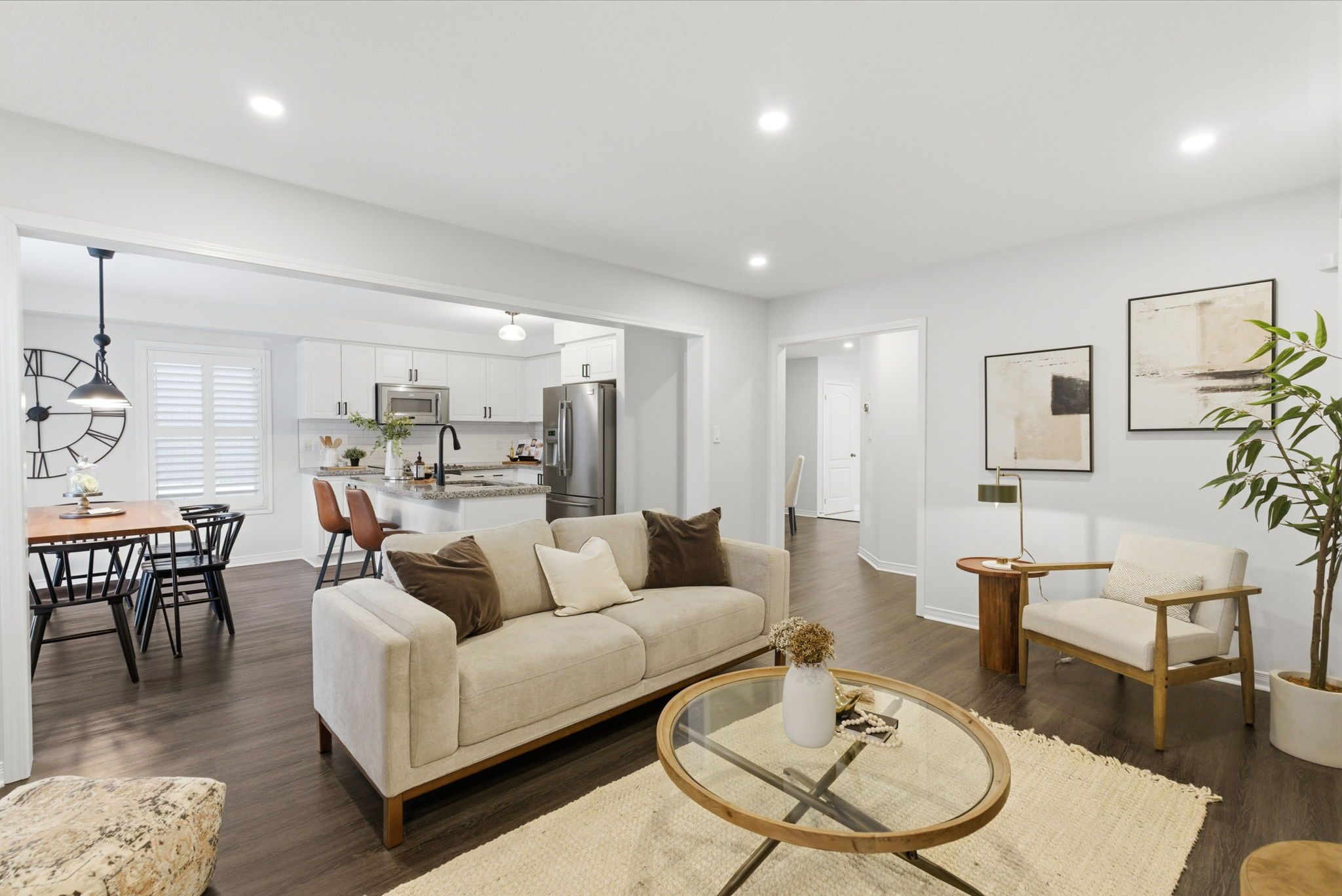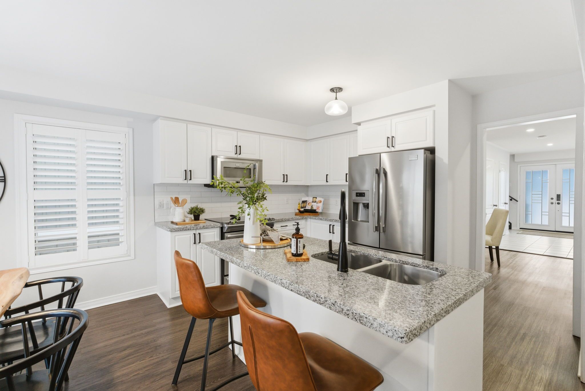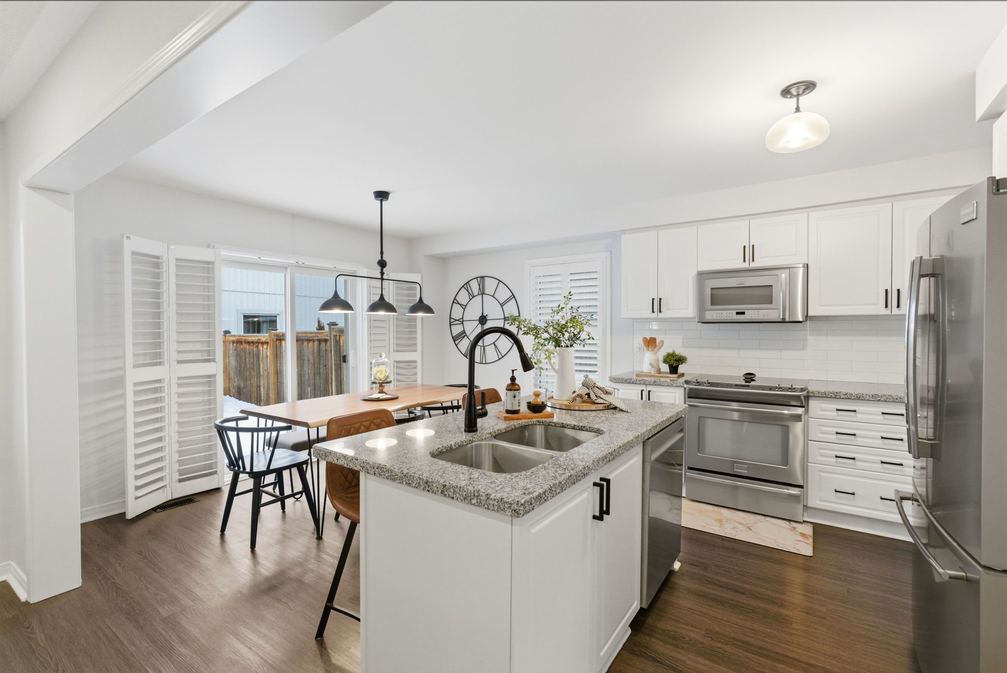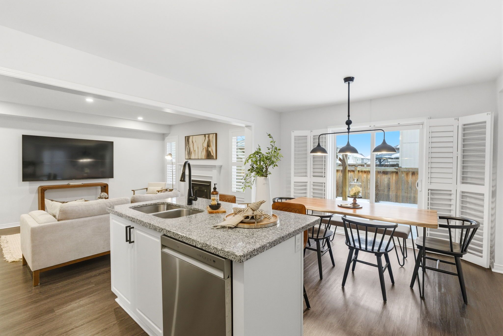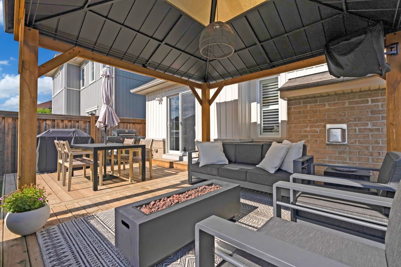Beautifully upgraded, spacious 3+1 bedroom, 4-bathroom home offering incredible versatility for families, professionals, and multi-generational living. Located across from Northglen Park and just a 2 minute walk to the new Northglen Orchard P.S. (JK to grade 8 opening September 2026), this property combines everyday convenience with exceptional functionality. The main floor welcomes you with a bright living and dining area featuring pot lights, upgraded window coverings, laminate flooring, and California shutters. The cozy family room with a gas fireplace provides the perfect space to unwind, while the large kitchen impresses with granite countertops, stainless steel appliances, a breakfast bar, and a walkout to a deck overlooking a fully fenced backyard oasis, ideal for entertaining or relaxing outdoors. A dedicated office/den/workspace on the second floor makes working from home effortless featuring a built-in desk. Added practicality comes with main-floor laundry with direct garage access, upgraded lighting, faucets, and custom shelving. Upstairs, the spacious primary bedroom serves as a true retreat, complete with a large 4 piece ensuite bathroom and two walk-in closets. Two additional bedrooms offer generous closet space and natural light. The fully finished, completely independent basement is a standout feature, offering a true in-law suite with its own separate side entrance. It includes a full kitchen with under cabinet lighting, large living/dining area, private laundry, one bedroom with a 3-piece ensuite and pot lights throughout, perfect for extended family or potential rental income. Additional highlights include a 1.5 car wide garage, extended and wide driveway with parking for up to 4 vehicles, upgraded bathroom lighting and thoughtful finishes throughout the home. This is a rare opportunity to own a move-in-ready property in front of a park and brand new school that truly checks every box for space, comfort, and flexibility.