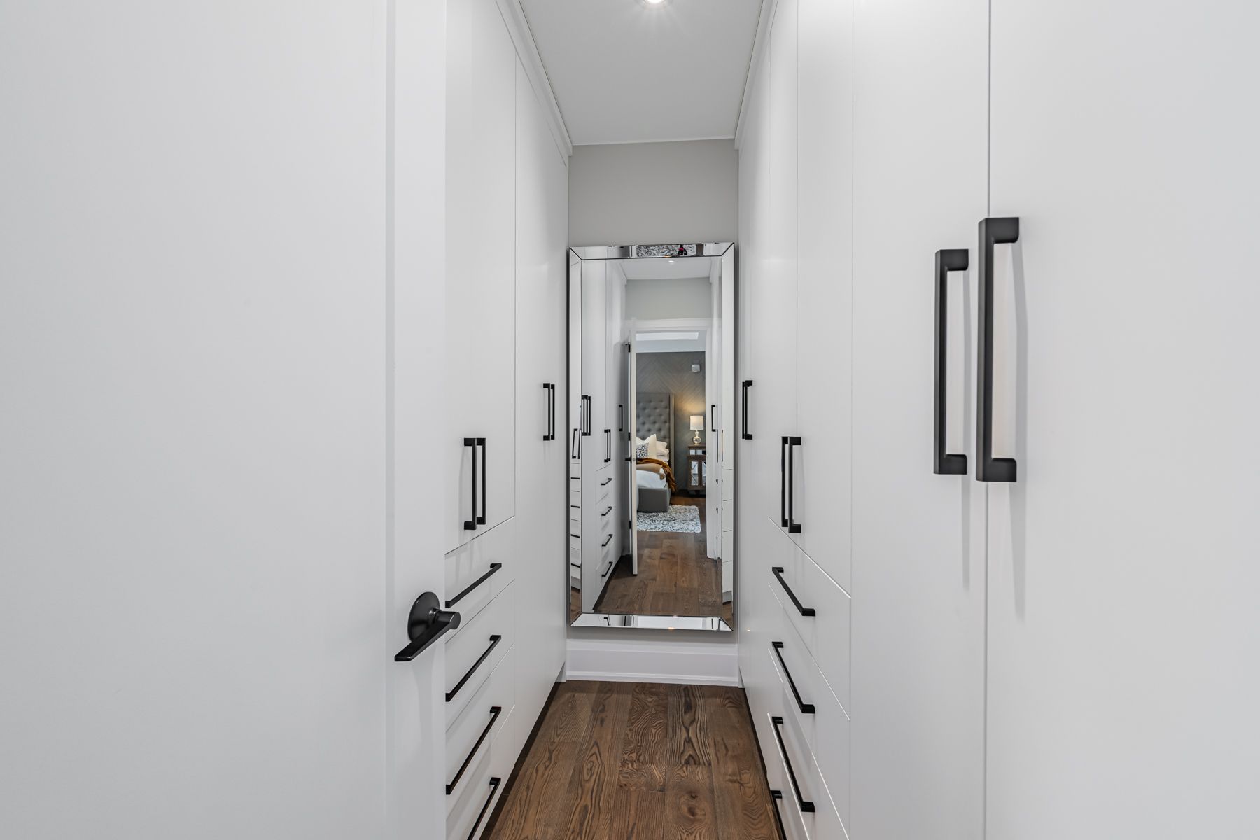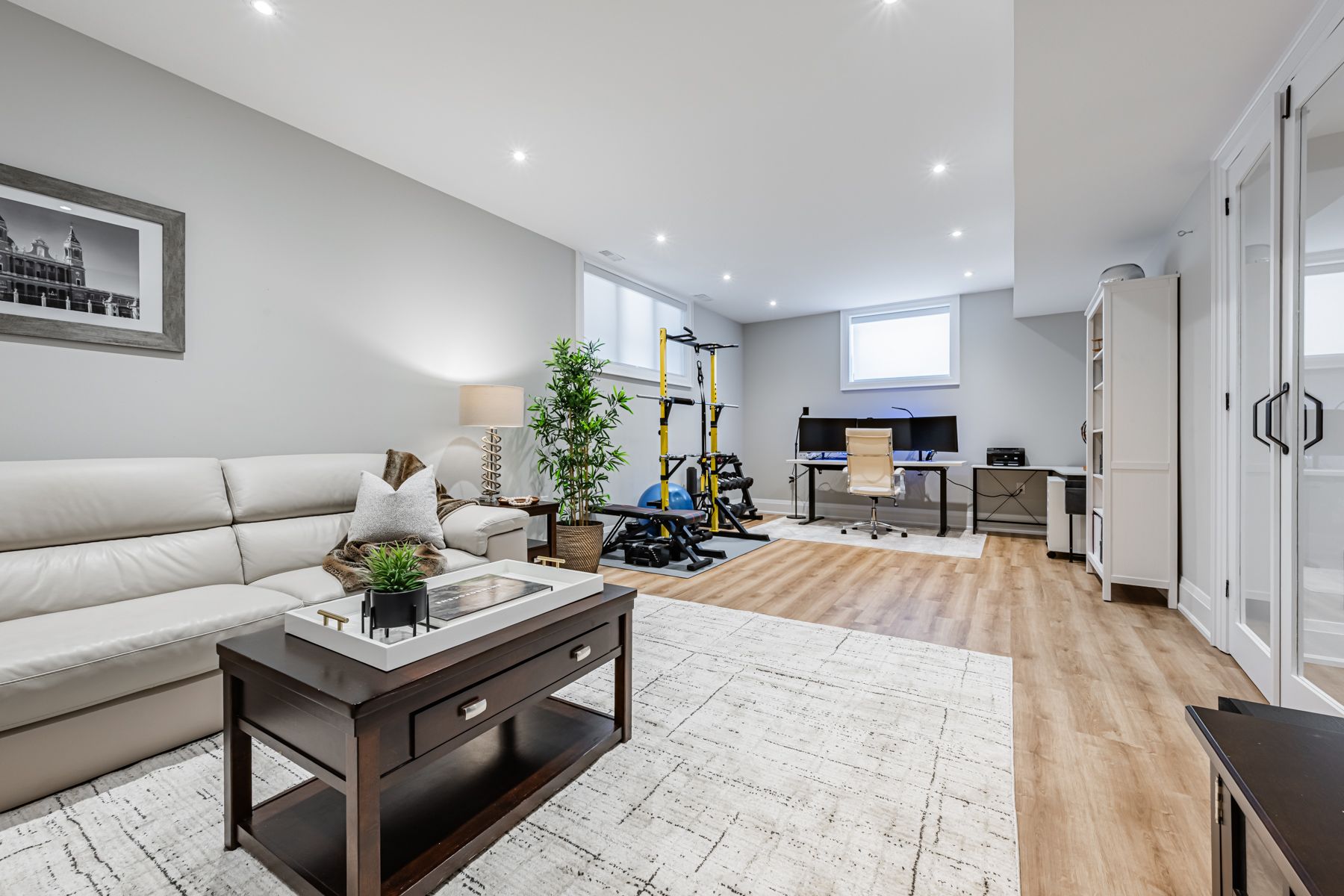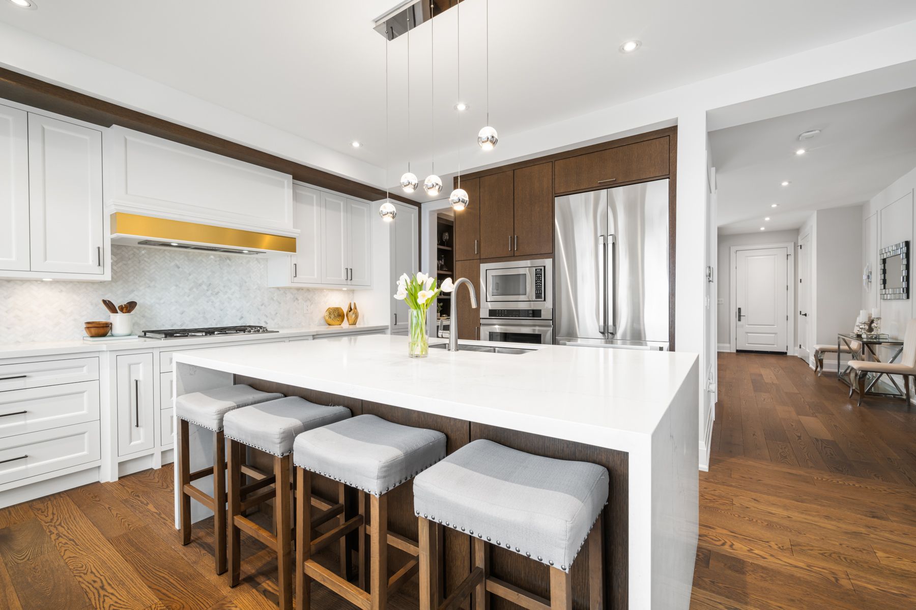 Set on a 40-foot wide lot in sought-after Topham Park, this custom-built (2020) home offers exceptional scale with over 3,500 square feet of indoor living space plus a south facing resort-style backyard sanctuary. High ceilings and expansive windows fill the home with natural light. The main floor is designed for daily routines and effortless entertaining, with elegant living and dining areas & a powder room. The show-stopping kitchen features a walk-through pantry/dry bar, sunny breakfast area, oversized quartz waterfall island, and premium Dacor appliances including a gas stove. Relax fireside in the handsome family room and step out to a backyard that defines luxury living, complete with year-round heated swim spa & hot tub, upgraded composite deck with glass railings and motorized awning, gas line for bbq, plus a lower garden retreat with mini putting green, outdoor TV lounge, water feature and dining area. Upstairs, every bedroom has an ensuite. The king-sized primary boasts a custom walk-in closet and dreamy spa-like bath with dual vanity, freestanding tub, and oversized shower. A large skylight illuminates the upper level, and convenient second-floor laundry adds everyday ease. The fully finished lower level, accessible via a side entrance, is ready for movie nights and includes space for a home gym & office, plus a fifth bedroom, full bath, and abundant storage. Central vac, a rough-in for a second laundry room, high-efficiency mechanicals, and dual sump pumps provide added flexibility and peace of mind. Smart upgrades include automated blinds, USB ports, and a Tesla/electric vehicle charger in the built-in garage. Beautiful landscaping and interlock paving enhance curb appeal. Close to the DVP for easy commuting, rapid transit incl TTC Crosstown, great schools, shopping, dining, parks, public tennis courts and nature trails. This is more than a house; it's a place where lifelong memories are made.