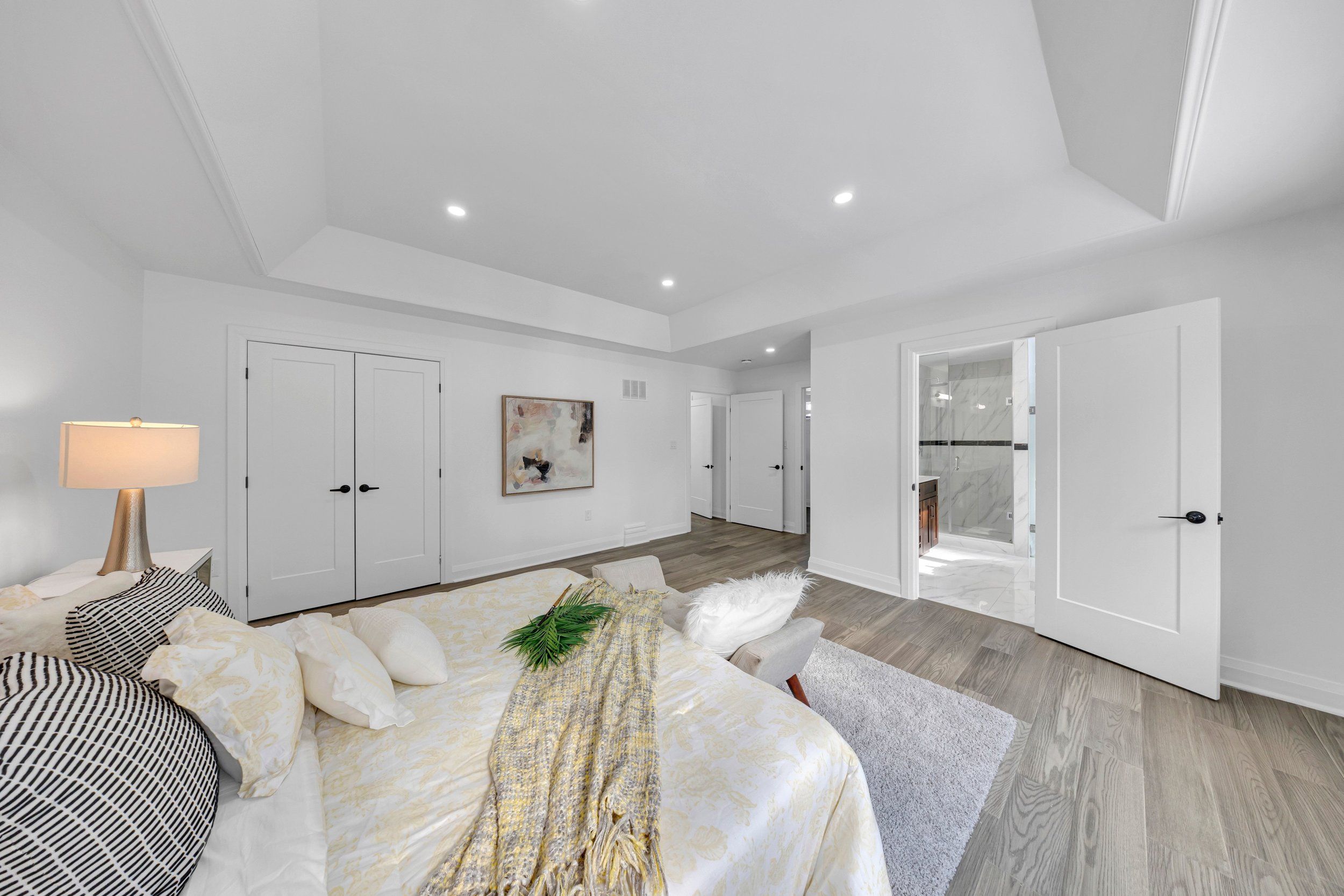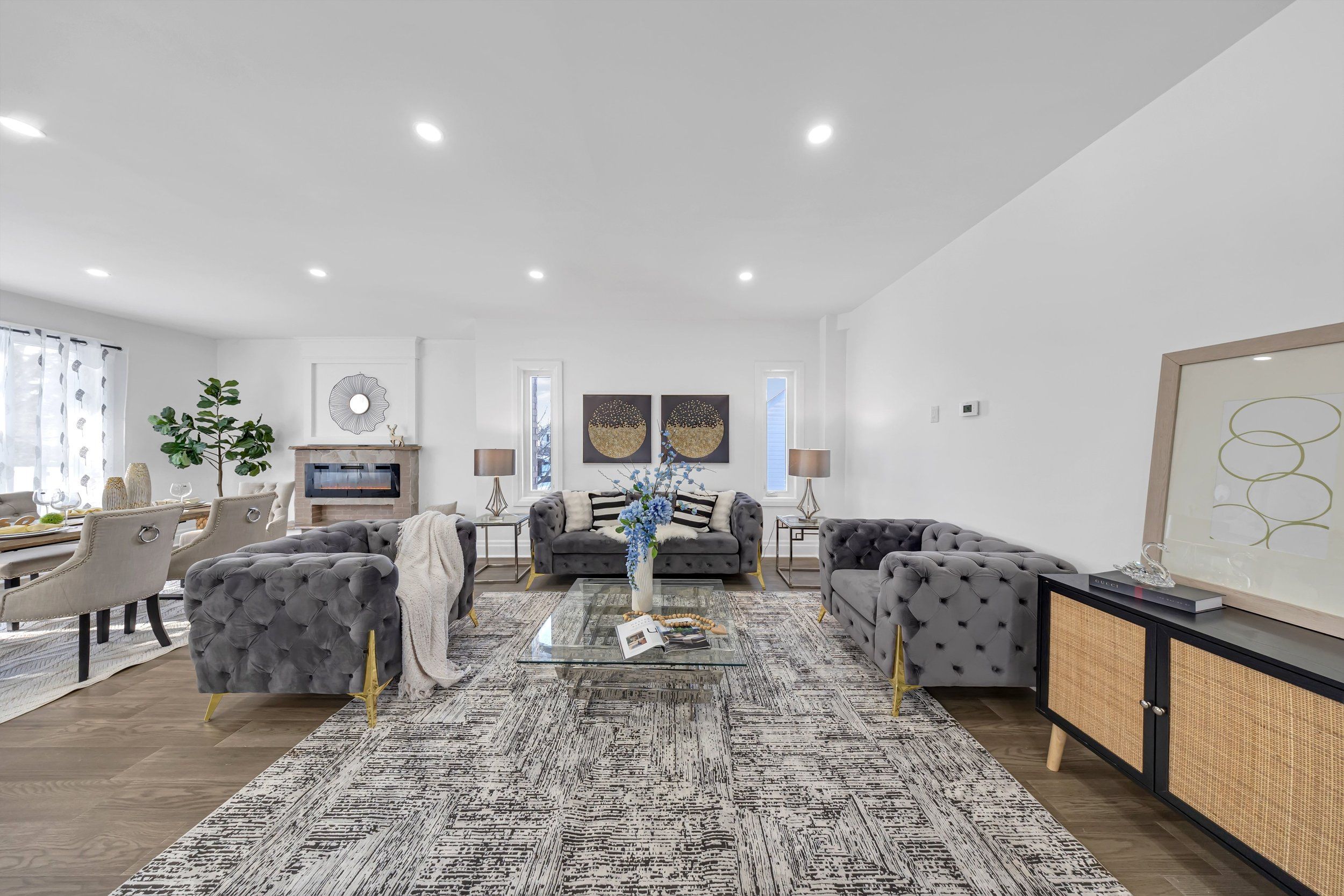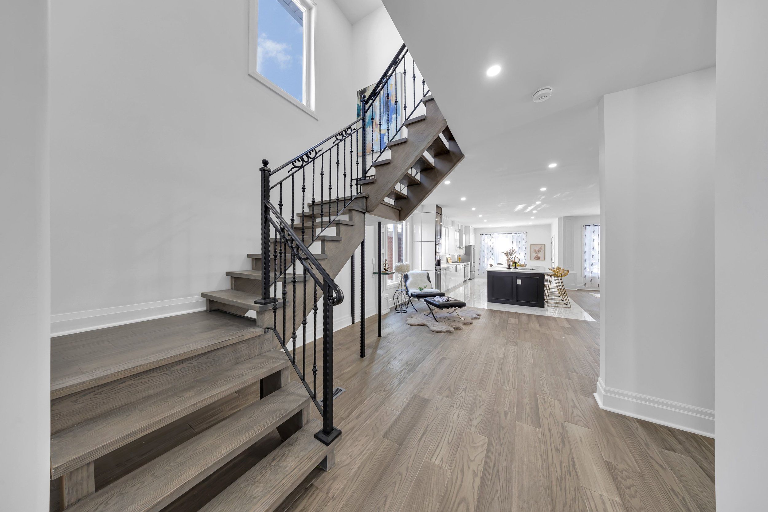 Welcome to this stunning custom built home in a quiet Oshawa neighbourhood. Featuring 4spacious bedrooms, each with its own ensuite, this home offers modern open concept living with hardwood floors, pot lights, and an elegant solid wood staircase. The luxury kitchen includes quartz countertops, a large island, and high end appliances. The primary bedroom boasts a walk-in closet and a 5-piece ensuite. Enjoy the electric fireplace, large front walkout balcony, high garage ceilings, reverse osmosis system, and full-size washer and dryer. The finished basement includes two kitchens and two separate entrances, ideal for rental income or extended family. Conveniently located close to downtown Oshawa, Ontario Tech University, Oshawa GO Station, shopping, parks, schools, Highway 401.