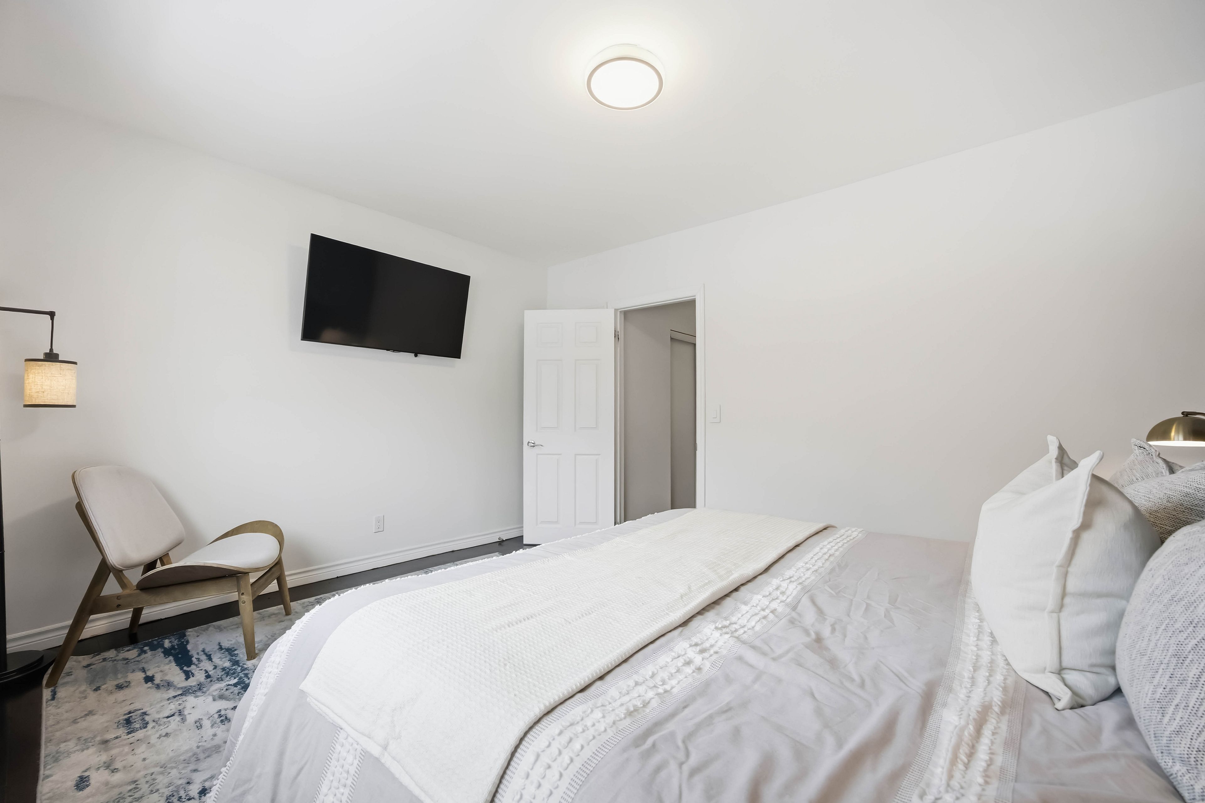 Beautifully upgraded Beaches Semi with a fully renovated income-producing bsmt apt w/ sep entrance on a premium corner lot just steps to waterfront, transit, shops, parks & top-rated schools. Turn-key home offers high-end finishes, outdoor living space.Main level features wide-plank oak hdwd floors, smooth ceilings, hdwd stairs & cozy living rm w/ elec fireplace. Custom kitchen w/ quartz counters & backsplash, dovetail drawers, pull-out cabinetry & ample storage. Main-fl powder rm plus oversized Samsung washer & dryer.Upper level offers 3 spacious bdrms w/ extra-lg closets & full 4-pc bath. All windows upgraded 2023 to European tilt-and-turn style incl noise-reducing windows in primary. Window coverings throughout. Newly renovated bsmt apt (2026) features 2 bdrms, brand-new appls, new cabinetry, laundry rough-in & seperate 100-amp panel - ideal for rental income or extended family. Major upgrades include furnace & A/C (2021), tankless HWT (rental 2021), top-to-bottom stucco exterior, waterproofed foundation, spray-foam insulated bsmt walls w/ soundproof ceilings, new shingles & flat roof (2024) w/ new plywood, attic insulation & vents + transferable 10-yr warranty, plus 200-amp main floor service.Outdoor features include private side yard, solarium entry, front deck, raised rear deck w/ BBQ, walk-down to large interlock patio, newer fence & asphalt driveway - perfect for entertaining & multi-car parking. Steps to Woodbine Beach & Boardwalk, Woodbine subway, parks, shops, restos & sought-after Bowmore school catchment w/ quick DT access. Rare opportunity offering lifestyle, modern upgrades & strong income potential in one of Toronto's most desirable neighbourhoods.