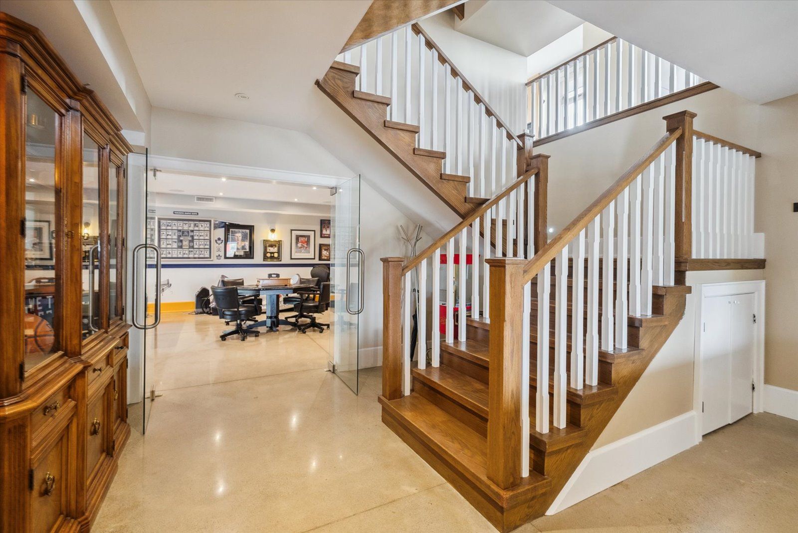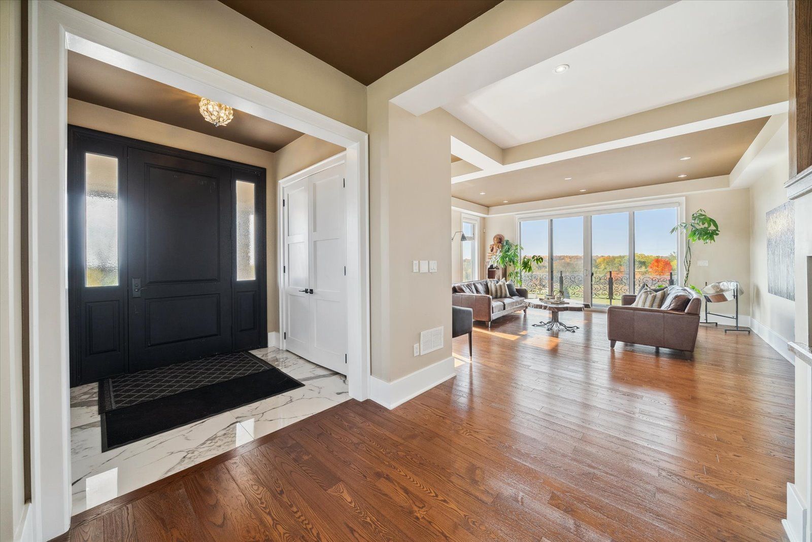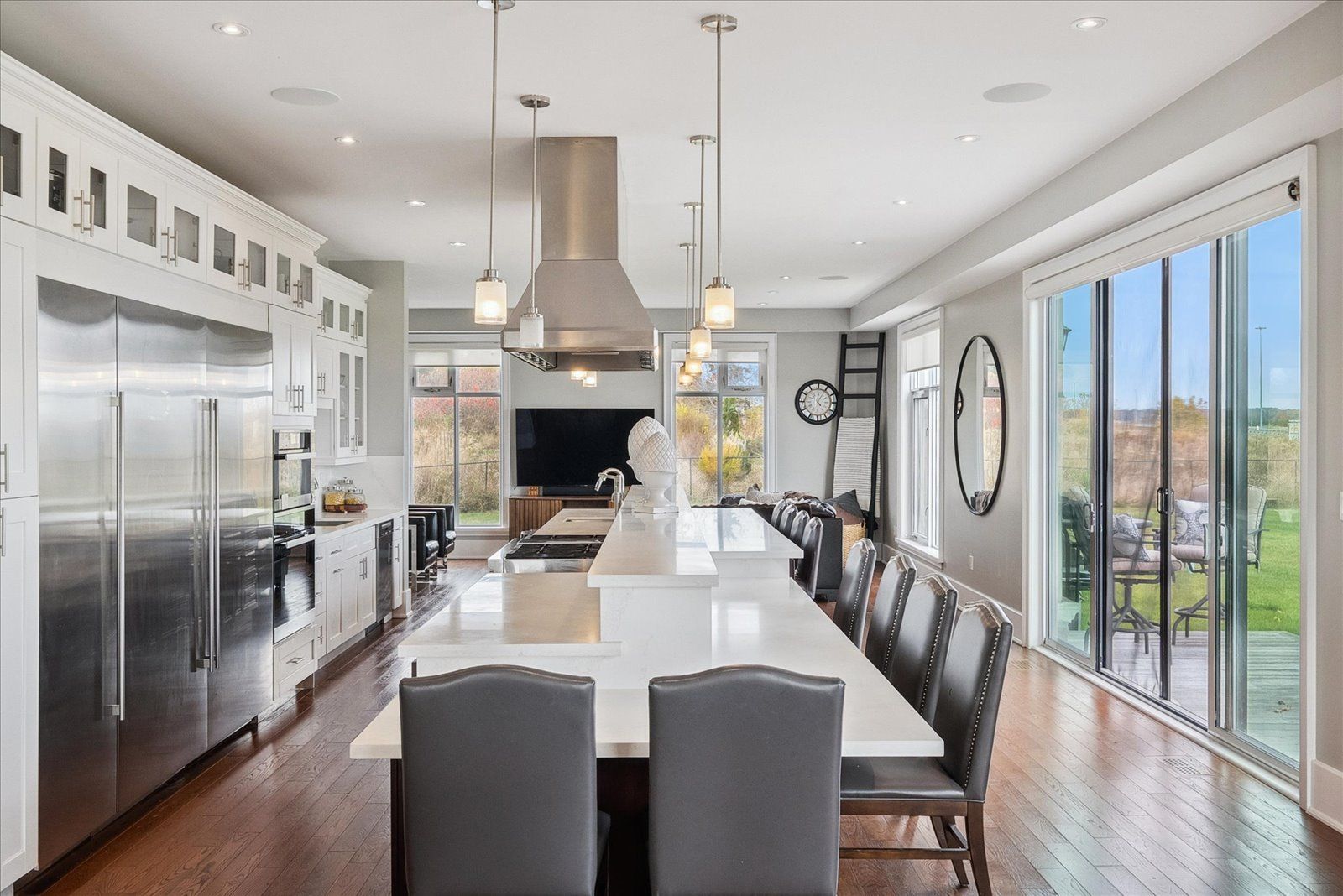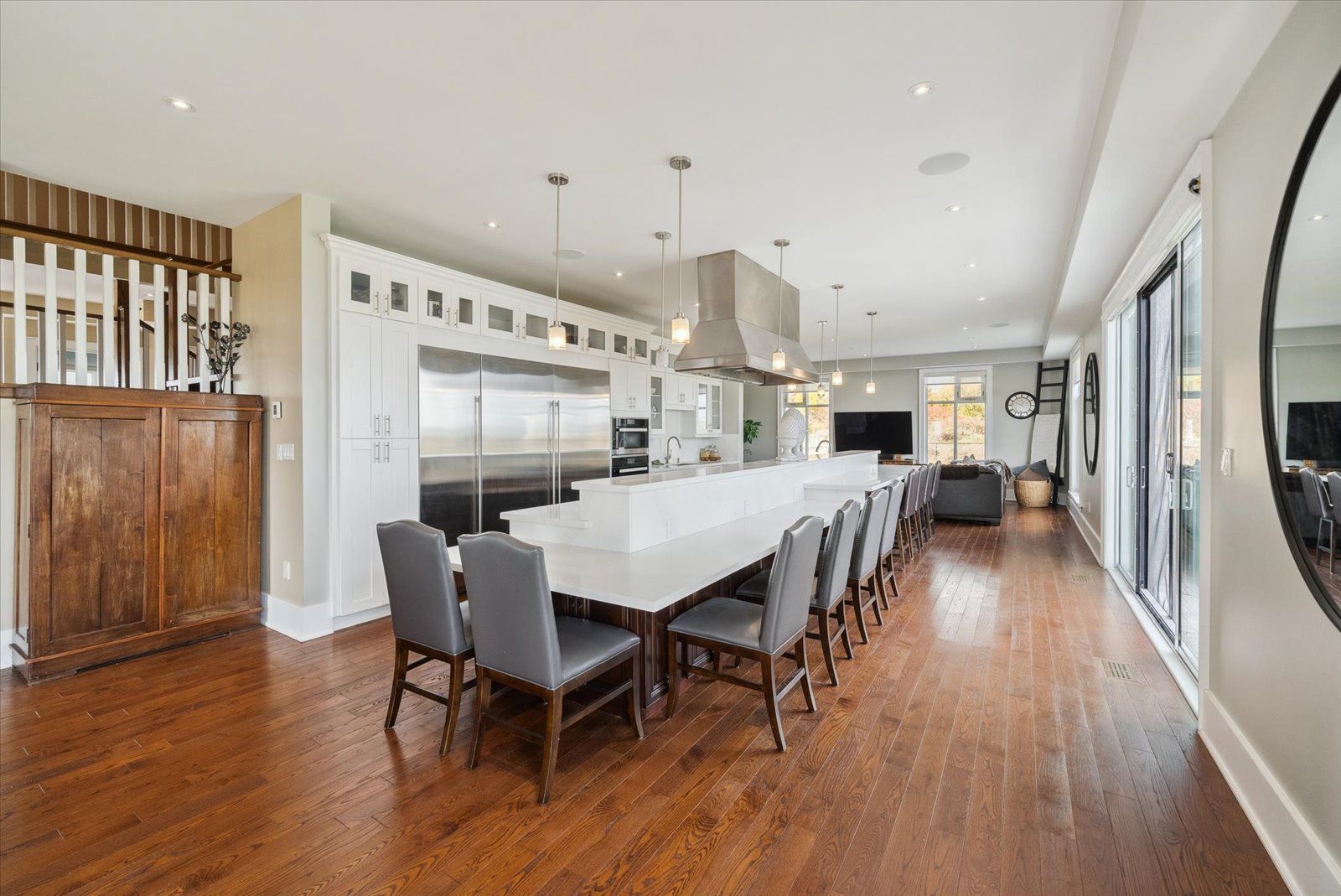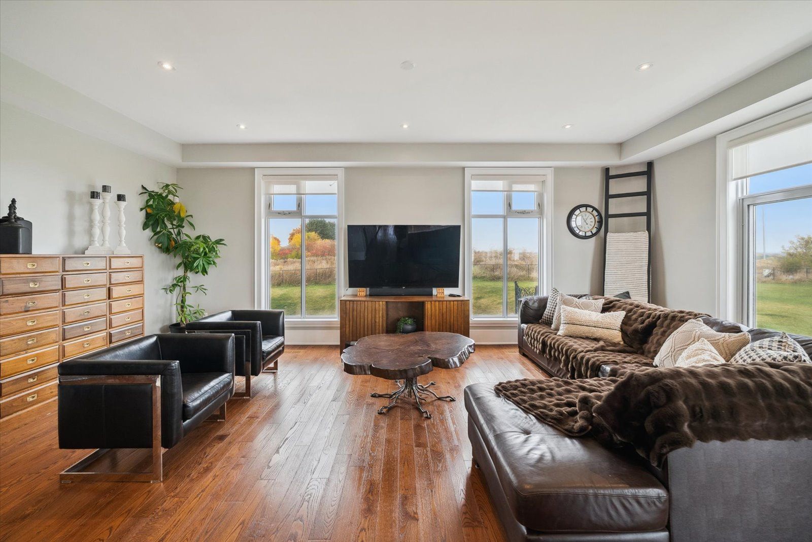 Power of Sale (mortgage foreclosure) opportunity with financing available. The vendor is willing to provide a first mortgage loan of up to $2,000,000 at a competitive interest rate, offering a rare and flexible financing opportunity for qualified buyers. Built only 10 years ago, this custom 7 bedroom, 8 bathroom estate is privately set behind gates on a serene premium 6+ acre lot. Designed for tranquility, security, and privacy, the fully fenced property features a scenic natural water feature and expansive sports court, creating a resort-style atmosphere.The heart of the home is an impressive open-concept kitchen anchored by a stunning 25-foot quartz centre island with abundant seating, complete with a Wolf gas stove, dual Sub-Zero refrigerators, two Miele built-in ovens, under-cabinet lighting, and premium finishes throughout. The kitchen flows seamlessly into the family and dining areas with walkout access to the backyard patio overlooking the scenic grounds.A separate formal living room opens onto a balcony spanning the front of the home. The main floor also offers a private in-law suite with coffee bar, two bedrooms, 3-piece bath, and a dedicated office. Upstairs features five generously sized bedrooms, each with its own ensuite, plus a convenient second-floor laundry room.The primary suite includes a walk-in closet with custom shelving and a spa-inspired 5-piece ensuite with steam shower, fireplace, and Juliette balcony. The fully finished basement features radiant heated floors. Additional highlights include geothermal heating, gated and fenced grounds, a 5-car garage, and custom motorized blinds with individual remotes. A rare opportunity to own a private estate with flexible vendor financing in place.