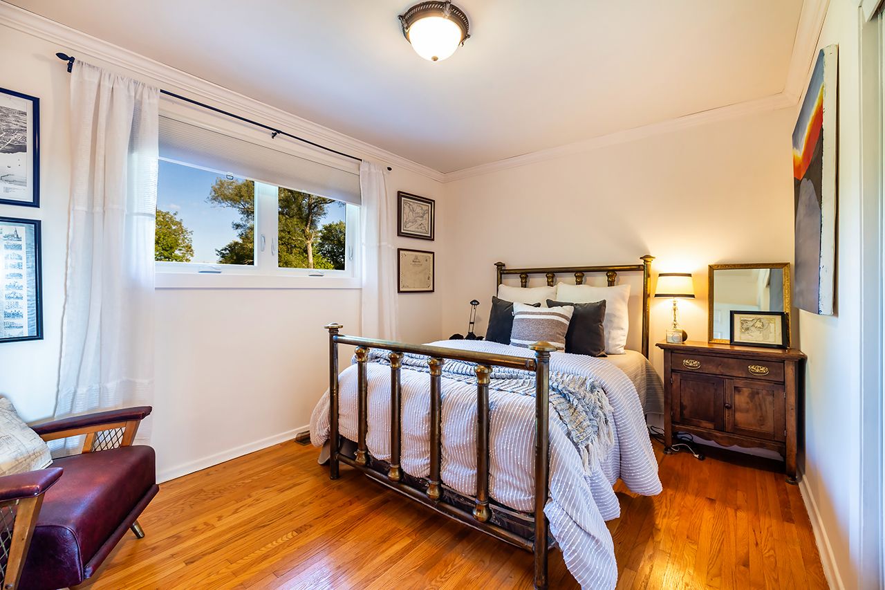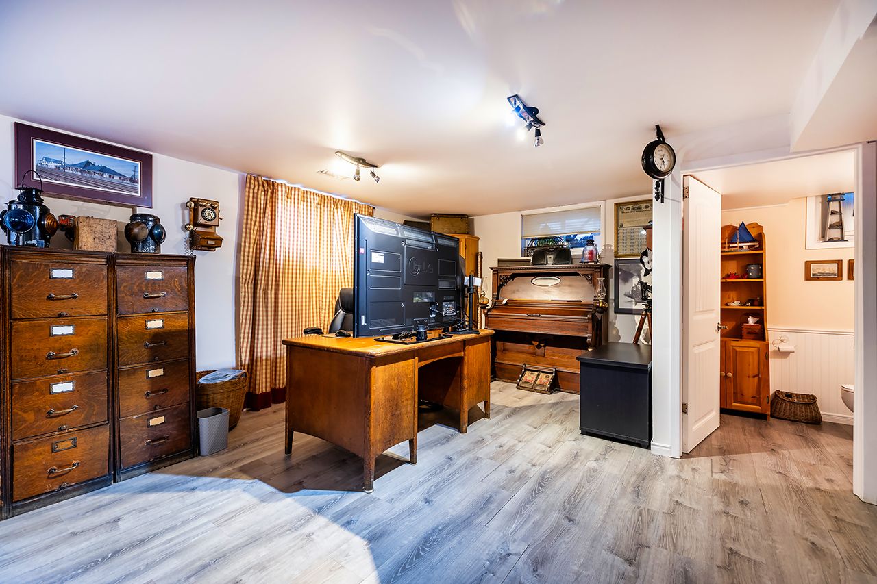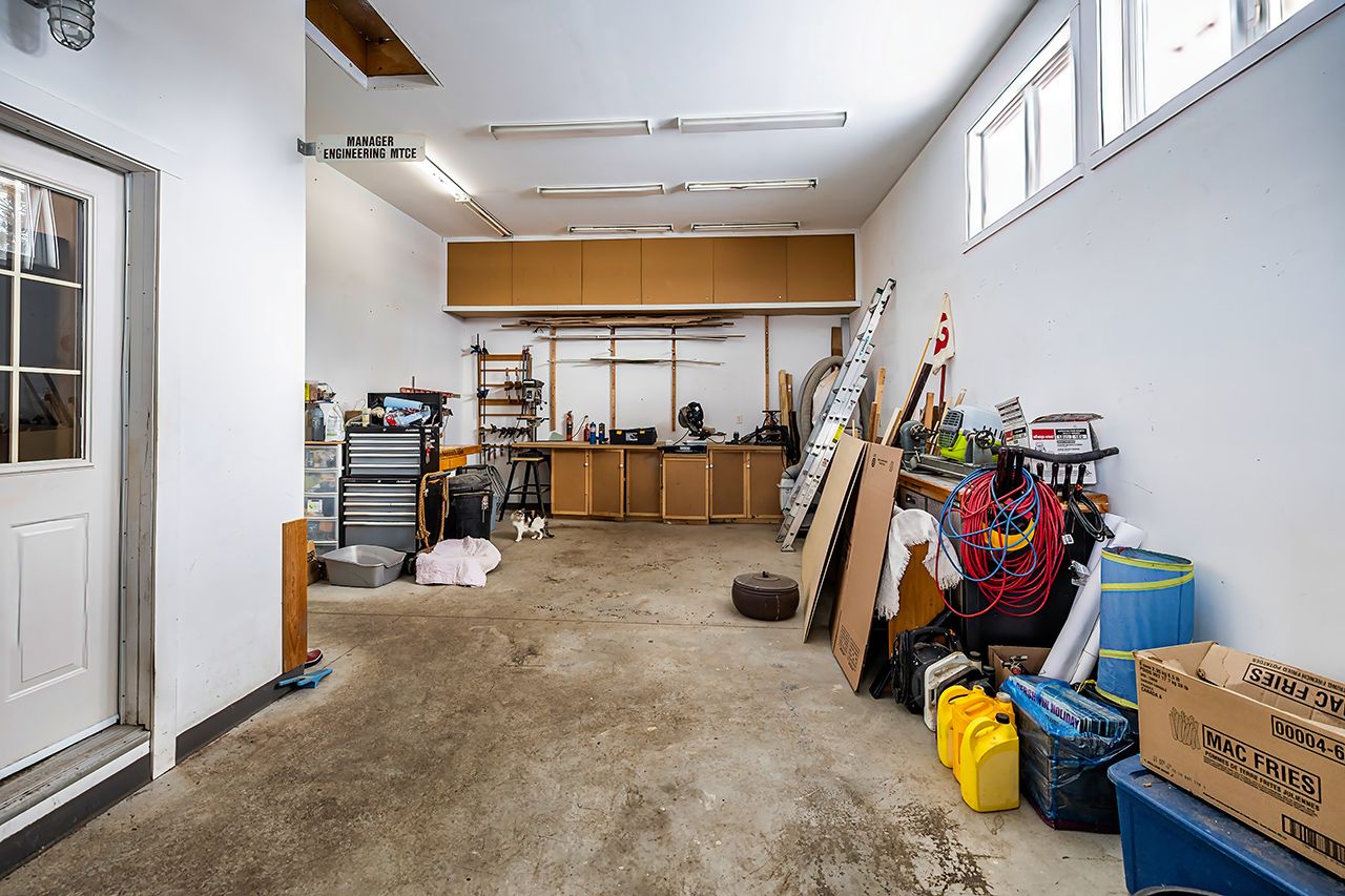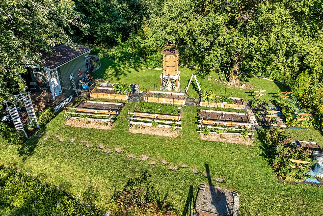 Welcome to this stunning country bungalow, a true retreat for nature lovers & garden enthusiasts alike. Nestled among mature trees & beautifully manicured perennial gardens, this home offers a rare blend of charm, functionality, & outdoor living at its finest. Step inside to an inviting living room, complete with a large bay window that fills the space with natural light, and electric fireplace. The heart of the home is the custom kitchen, showcasing stainless steel appliances, a double oven, double-drawer dishwasher, and a convenient breakfast bar. Custom cabinetry provides both style & storage, making this kitchen as practical as it is beautiful! The main floor features three spacious bedrooms, each with large windows & ample closet space. Halfway down the stairs you'll find one of the hardest-working spaces in the house, the laundry room. Equipped with heated floors & direct access to the oversized two-car garage, this room makes everyday tasks effortless. The garage itself is ideal for hobbyists or professionals alike, with a built-in workshop, storage, and access to both the front and back yards. Continue to the fully finished basement, where a versatile kitchenette with plenty of storage adds convenience and flexibility. Just off this area, a dedicated cold room provides the perfect space for canning, or garden harvest storage. The large recreation room features a gas fireplace and a walk-out to the backyard, seamlessly blending indoor and outdoor living. Step outside to experience a backyard oasis unlike any other. Meandering walkways guide you through perennial gardens, vegetable plots with their own water tower & irrigation systems, and tranquil water features including a seasonal stream create a peaceful atmosphere. A greenhouse provides year-round gardening opportunities, while an enchanting bunkie complete with a double bed offers a delightful retreat for guests! Private well, refurbished in 2011, provides reliable high-quality water.