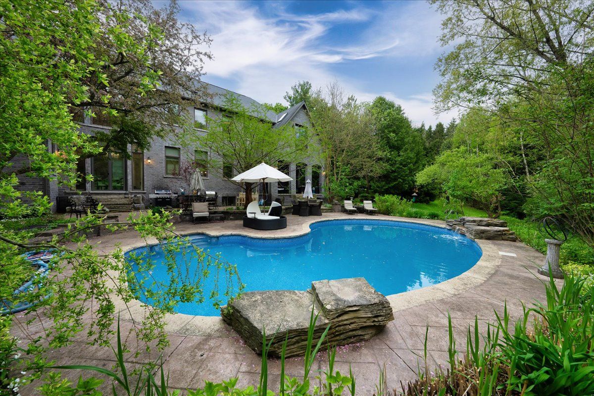 Built in 2018 Custom Home on a Rare 50+ Acre Parcel of Land with 1311 ft Frontage on Cul de Sac Street. Gated 1200 Feet Long Winding Driveway Delivers Complete Privacy. No For Sale Sign.Misty Meadows is Located Only Minutes from 400 & 27 and Less Than Half an Hour from 401 in Toronto. It Features 5 Bedrooms and 4 Full Bathrooms. Unfinished Area on the Second Floor Gives Possibility to Extend the Living Space for Two More Bedrooms and One Bathroom. Existing Finished Space is Well Over 6,500 sq.ft. Mahogany Entrance Door and Four Balcony French Doors are Imported from Europe. Main Floor Features 11 ft. Ceiling and Soaring 21-24 ft. in Living and Dining. 10ft High Windows, 8ft Doors, 14ft Long Kitchen Island, Granite Wood Burning Fireplace, 9-10 ft. Ceiling on the Second Floor, Two Living Rooms, Two Primary Bedrooms, White Oak Solid Hardwood Floors Throughout, Bidet or Smart Toilette in Every WC. Wet Bar in Finished Basement. Very Bright & Spacious! High Ceiling in the Garage Gives the Option to Add Lifts. The Property Has Good Balance of Rolling Field with Multiple Paddocks and Deciduous/Evergreen Forest, Horse Shelter with Three Stalls, Kidney Shape Saltwater Pool With Waterfall, and Entire House Kohler Generator. The New Construction of 4,800 sq.ft. Garage/Barn Was Approved by King Township. Low Property Tax Reflects Exemption for Conservation Area at Rear (15 Acres) and Reduction for Front Part of the Lot (31 Acres) due Forest Management Plan. Buyer can Refuse or Continue the Enrollment in This Program. The Backyard Area is Adjacent to Renown Happy Valley Forest with Miles of Paths and Spectacular Views of Magnificent Scenery.