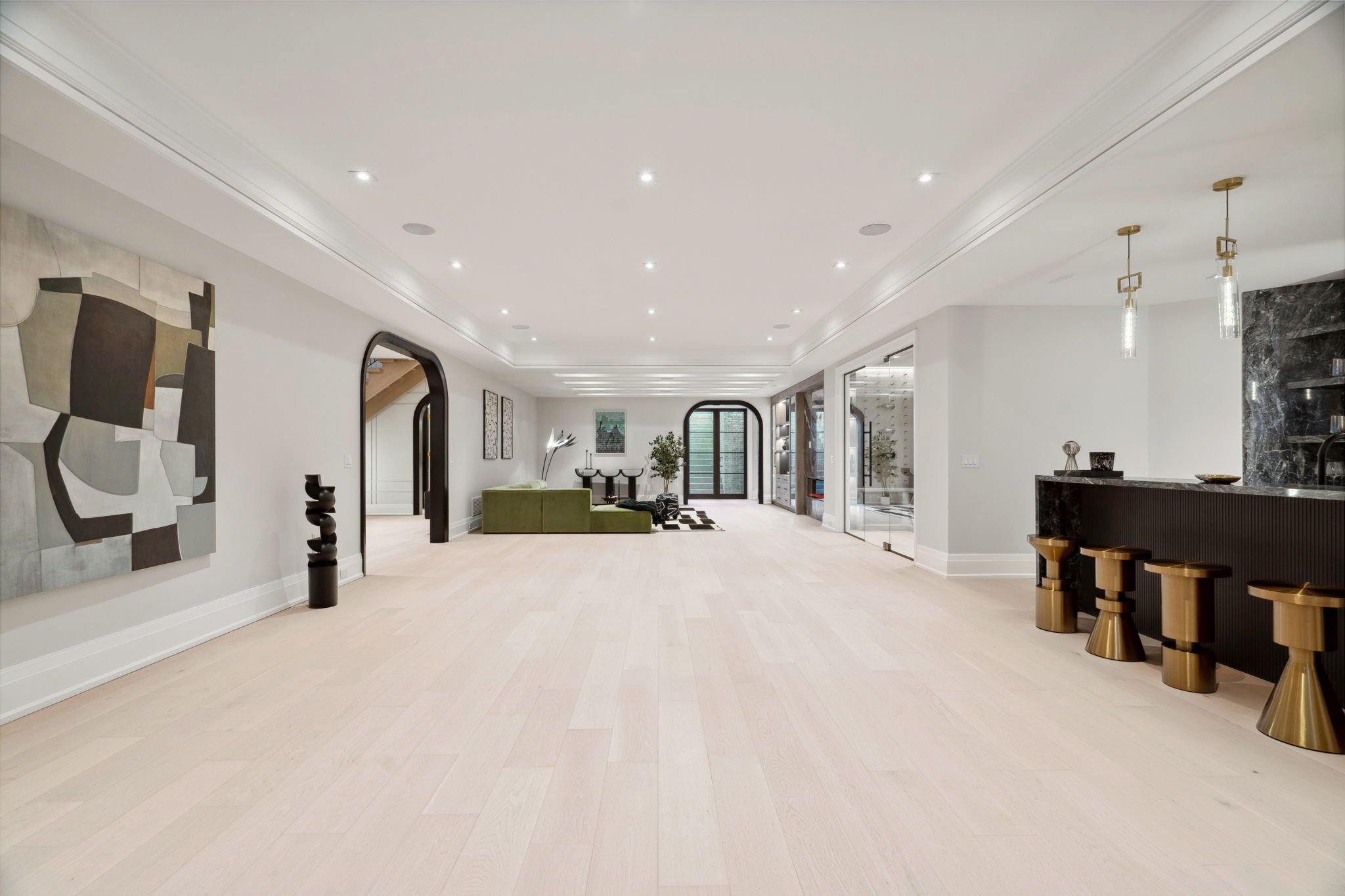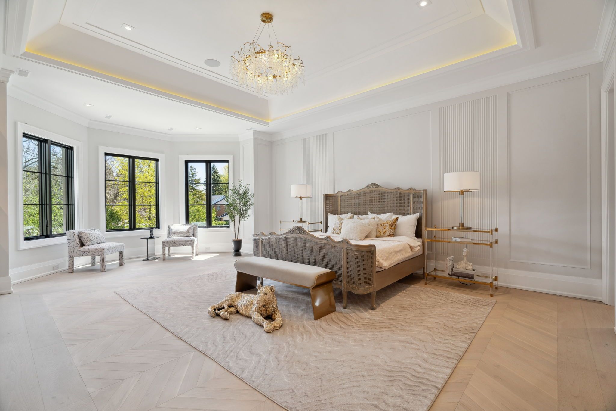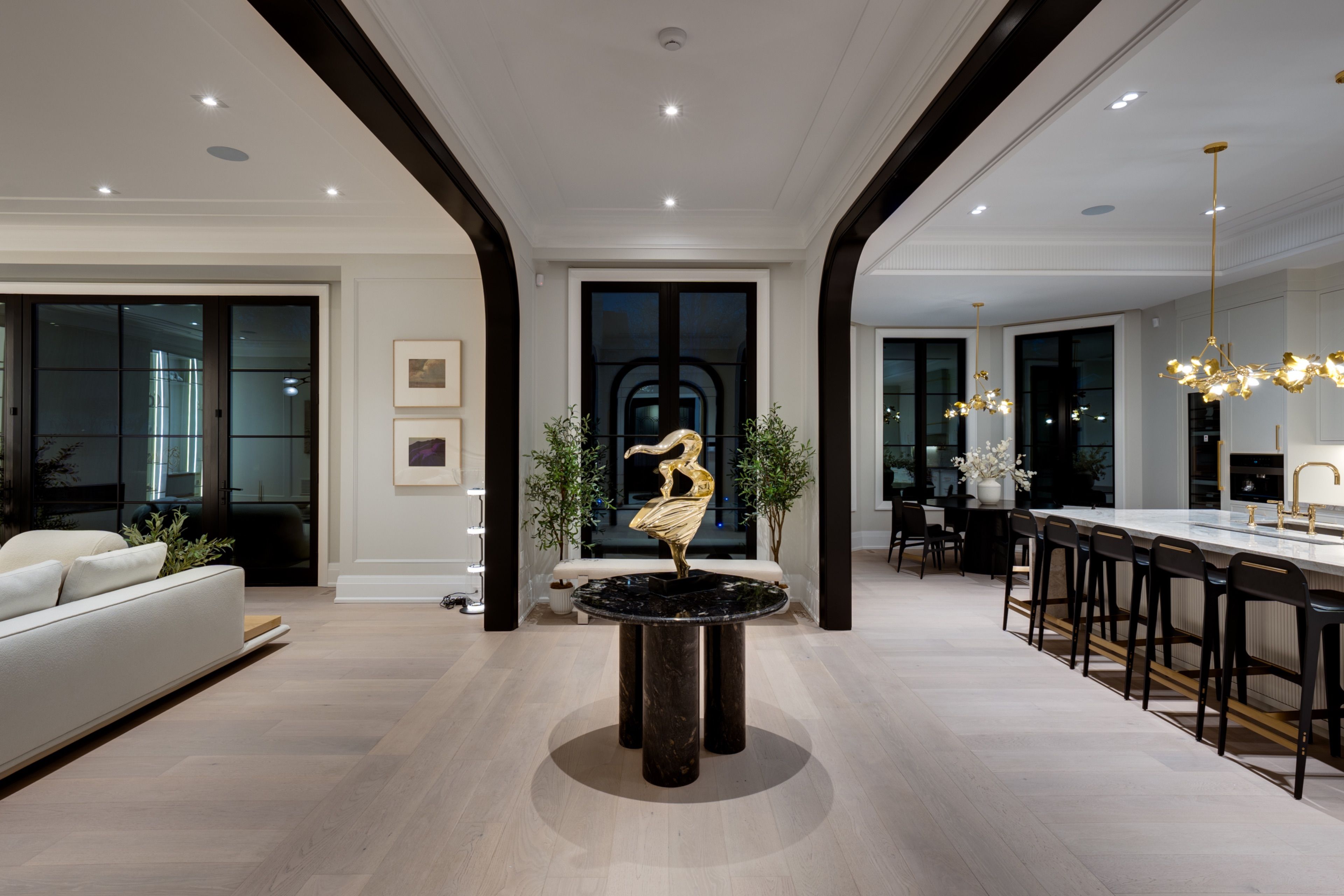 A Masterpiece by Richard Wengle Architect Inc., Curated by Raphael Gomes Interiors. The Number 1 Sunflower Court is a branded built architectural gem nestled on a tranquil cul-de-sac in the prestigious Bayview Glen .This custom-designed estate flawlessly merges timeless design with cutting-edge innovation, showcasing the signature vision of world-renowned architecture and Interior designer the King & Queens true sanctuary featuring a spacious lounge area, dual spa-inspired bathrooms, and separate custom his-and-hers walk-in closets. The Prince and Princes Bedroom; each complete with a private spa ensuite. An entertainers dream with an open-concept chefs gourmet kitchen boasting Miele appliances: 36" fridge/freezer, built-in coffee station, microwave, oven, and a 48 Wolf gas cooktop. Butler kitchen with a full appliance set completes the culinary space. This magnificent mansion with Elevated 10-ft ceilings and dual high-efficiency furnaces ensure optimal comfort and air circulation throughout leads us to a Radiant heated floors flow through a spacious recreation zone, wet bar, full gym, sauna, and sunlit lounge with walk-up access to the ambience pool area. State of art theatre room is the perfect place to relax and spend quality entertainment time inside of your luxury heaven sums up one of a kind luxurious experiences.