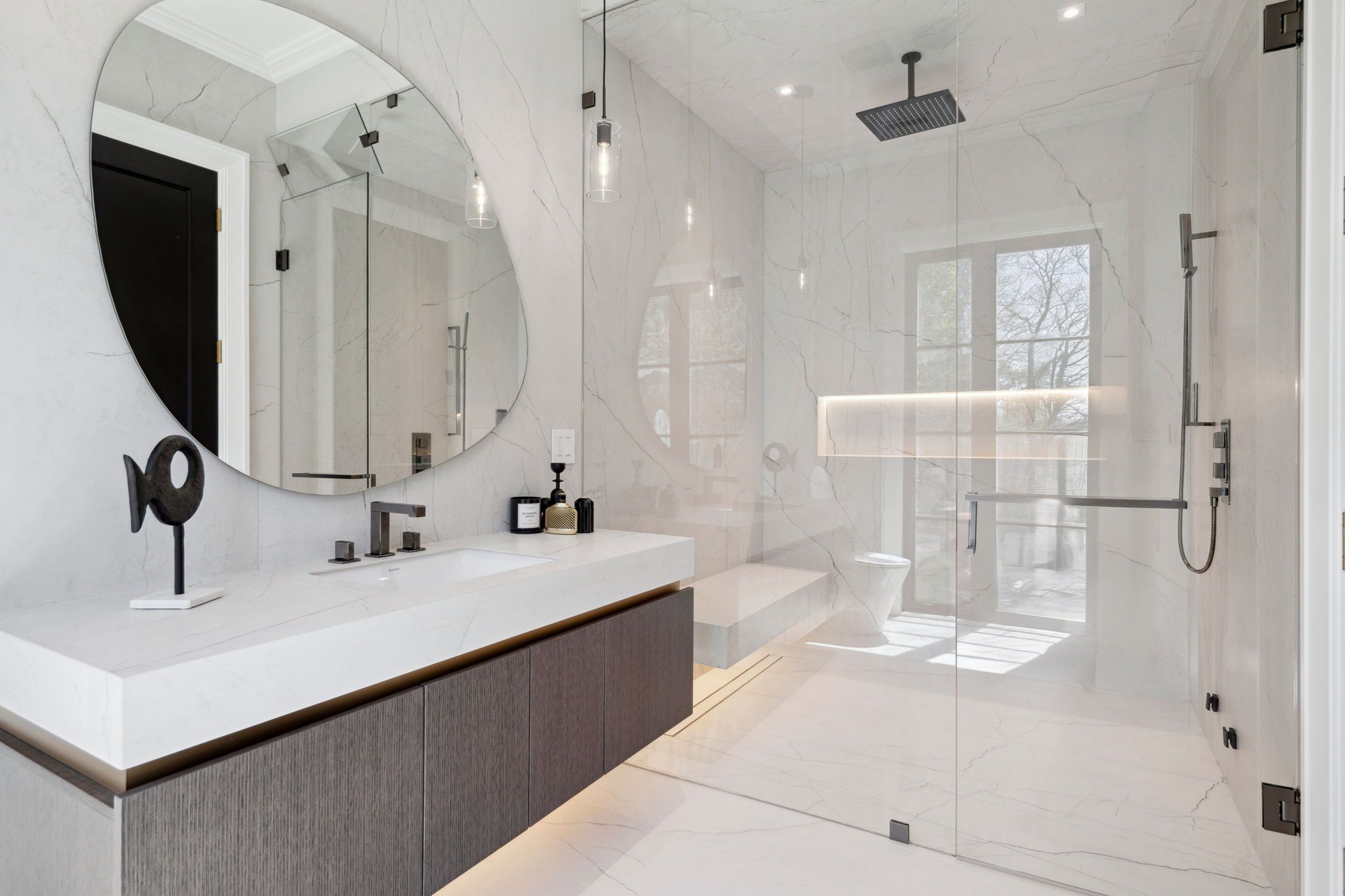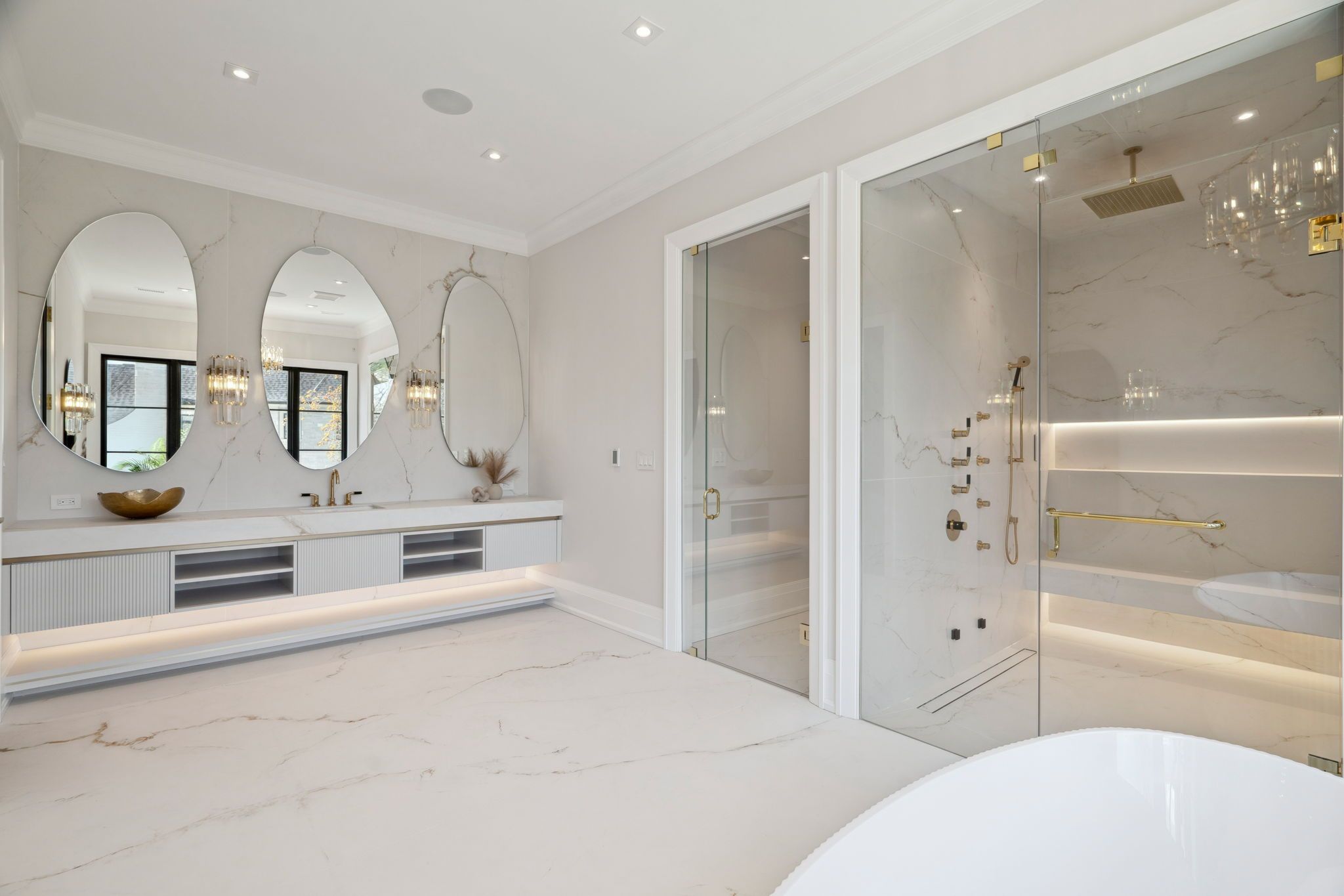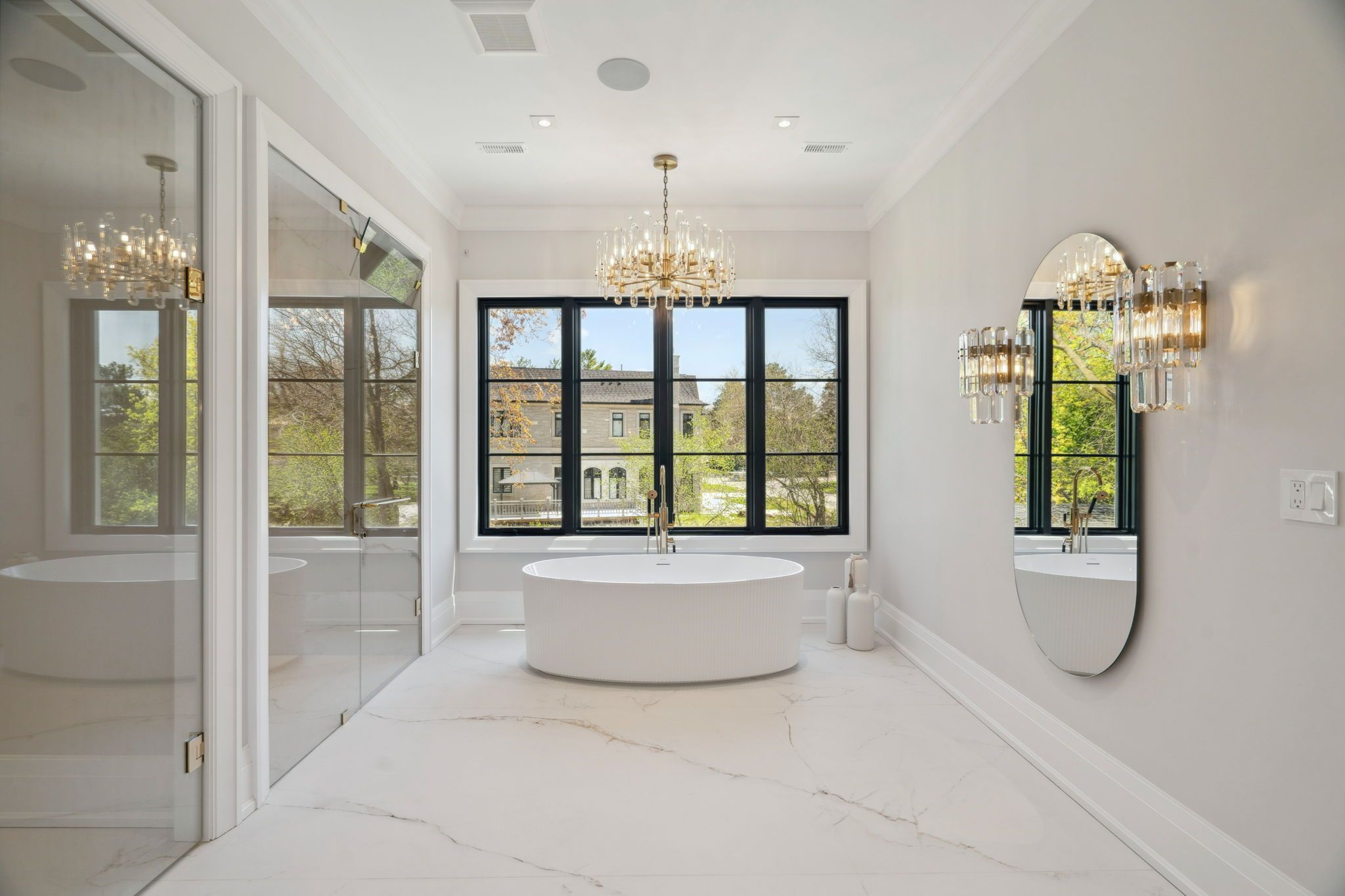 A Masterpiece by Richard Wengle Architect Inc., Curated by Raphael Gomes Interiors. The Number 1 Sunflower Court is a branded built architectural gem nestled on a tranquil cul-de-sac in the prestigious Bayview Glen .This custom-designed estate flawlessly merges timeless design with cutting-edge innovation, showcasing the signature vision of world-renowned architecture and Interior designer the King & Queens true sanctuary featuring a spacious lounge area, dual spa-inspired bathrooms, and separate custom his-and-hers walk-in closets. The Prince and Princes Bedroom; each complete with a private spa ensuite. An entertainers dream with an open-concept chefs gourmet kitchen boasting Miele appliances: 36" fridge/freezer, built-in coffee station, microwave, oven, and a 48 Wolf gas cooktop. Butler kitchen with a full appliance set completes the culinary space. This magnificent mansion with Elevated 10-ft ceilings and dual high-efficiency furnaces ensure optimal comfort and air circulation throughout leads us to a Radiant heated floors flow through a spacious recreation zone, wet bar, full gym, sauna, and sunlit lounge with walk-up access to the ambience pool area. State of art theatre room is the perfect place to relax and spend quality entertainment time inside of your luxury heaven sums up one of a kind luxurious experiences.
