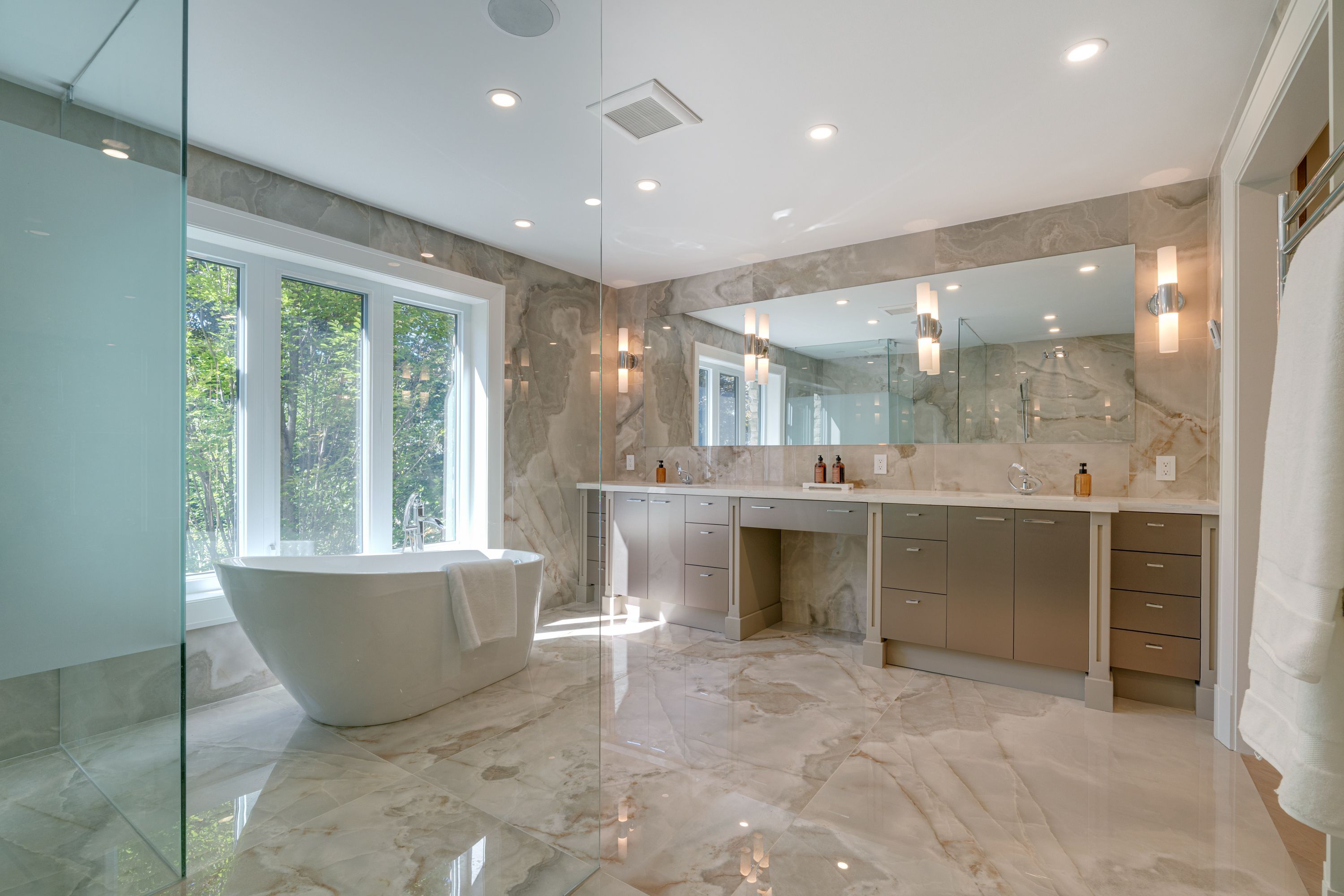 - Interior Features: Auto Garage Door Remote, Bar Fridge, Central Vacuum, Carpet Free, Countertop Range, In-Law Capability, On Demand Water Heater, Sauna