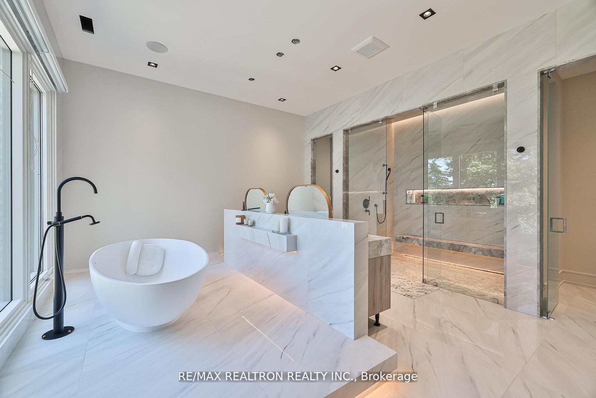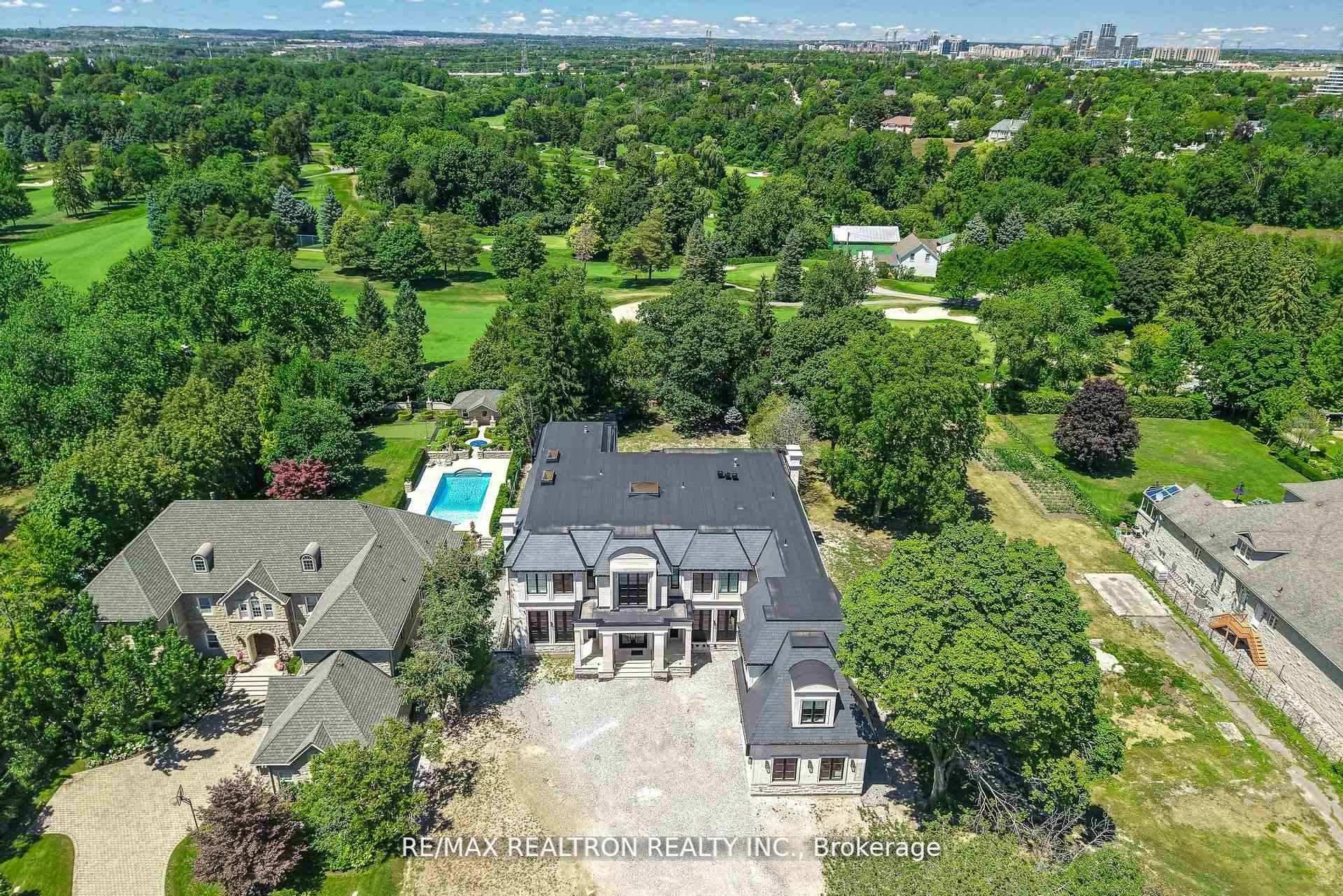 A triumph of architectural brilliance. Designed by award-winning Raphael Gomes, 41 Thornbank Rd. is an architectural gem on one of Thornhill's most coveted streets in Vaughan's most exclusive enclave. Surrounded by grand estates and mature trees, this brand new custom home sits on a spectacular 100 x 302 ft lot backing onto the best part of The Thornhill Club Golf Course, offering serene views and total privacy. Spanning about 16,200 sq.ft with 10,771 sq.ft above grade, including a partially finished 5,400+ sq.ft lower level, this state-of-the-art smart home is equipped with 400-amp service and Control4 automation. Features 5+2 bedrooms, 11 bathrooms (3 roughed-in L/L, 1 cabana), heated floors, and an elevator. The exterior pairs limestone with Belden Winter Mist brick for a timeless aesthetic. Inside, a 28-ft cathedral foyer introduces a grand main floor with 12-ft ceilings and 10-ft solid-core doors. The show-stopping family room boasts a 2-storey glass wall and 28-ft ceiling, flooding the space with natural light. Lutron automated blinds ensure effortless light and privacy control. The gourmet Miele kitchen with Dacor prep kitchen features an oversized island, wine fridges, and built-ins. The main floor includes 2 powder rooms and a grand office with separate entrances. The upper level offers 10-ft ceilings and 5 luxury bedrooms with ensuites and walk-ins. The primary suite features a 400 sq.ft 7-pc spa ensuite, 500 sq.ft custom closet with dual islands, and a private terrace. The lower level is roughed-in for 2 bedrooms, 3 bathrooms, theatre, spa, gym, rec room, and laundry. Landscaping, driveway, and permit-ready pool await your customization. An exceptional offering priced far below replacement value, presenting a rare chance to secure a signature estate at a level impossible to replicate today. Quotes from contractors available to supply front and rear landscaping upgrade with a pool and to complete the basement for in or around $1M.
