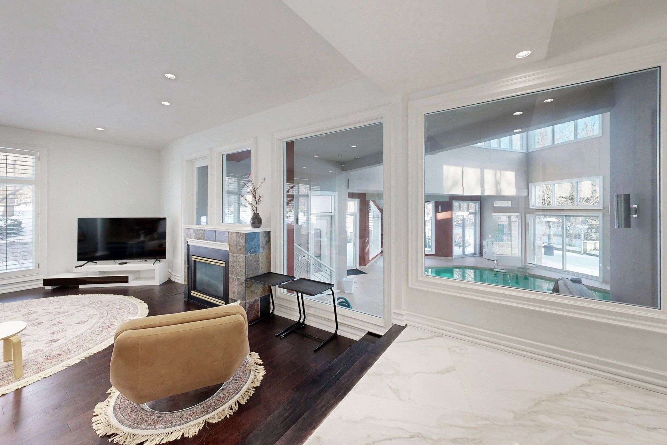 Exceptional estate residence located in the prestigious Woodland Acres community of Vaughan, situated on approximately 1.73 acres of private, landscaped grounds surrounded by mature greenery. Designed for both comfortable living and entertaining, the home features an indoor swimming pool, basement home theatre, and multiple walkouts to outdoor living spaces. Custom gourmet kitchen with high-gloss wood cabinetry, black granite countertops, and premium built-in appliances including Sub-Zero refrigerator, gas cooktop, Dacor wall oven, built-in microwave, and integrated dishwasher. Additional features include a private tennis court, hot tub, designer lighting, custom window coverings, California shutters, and complete pool equipment. A rare opportunity offering privacy, luxury amenities, and a resort-style setting in a sought-after enclave.