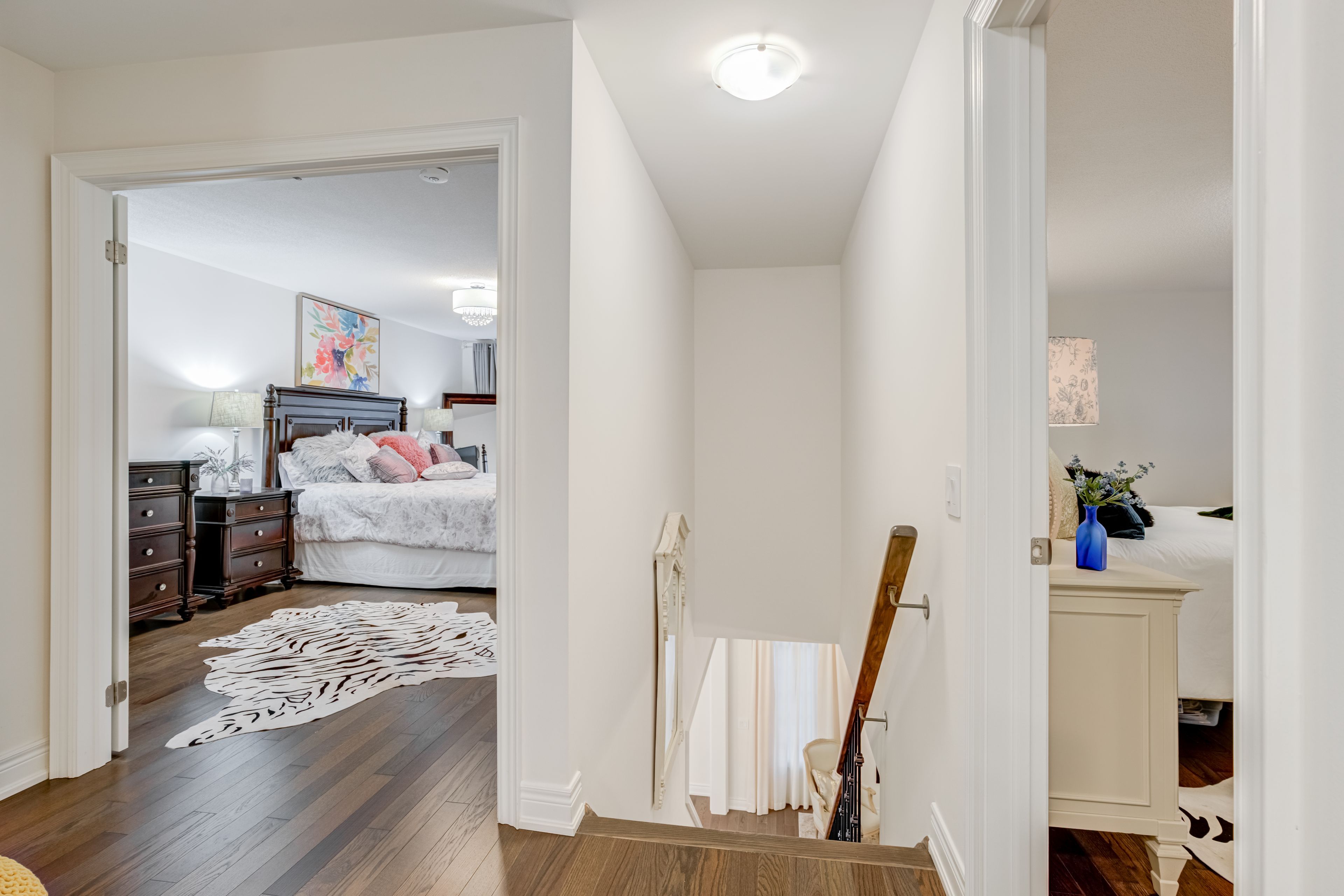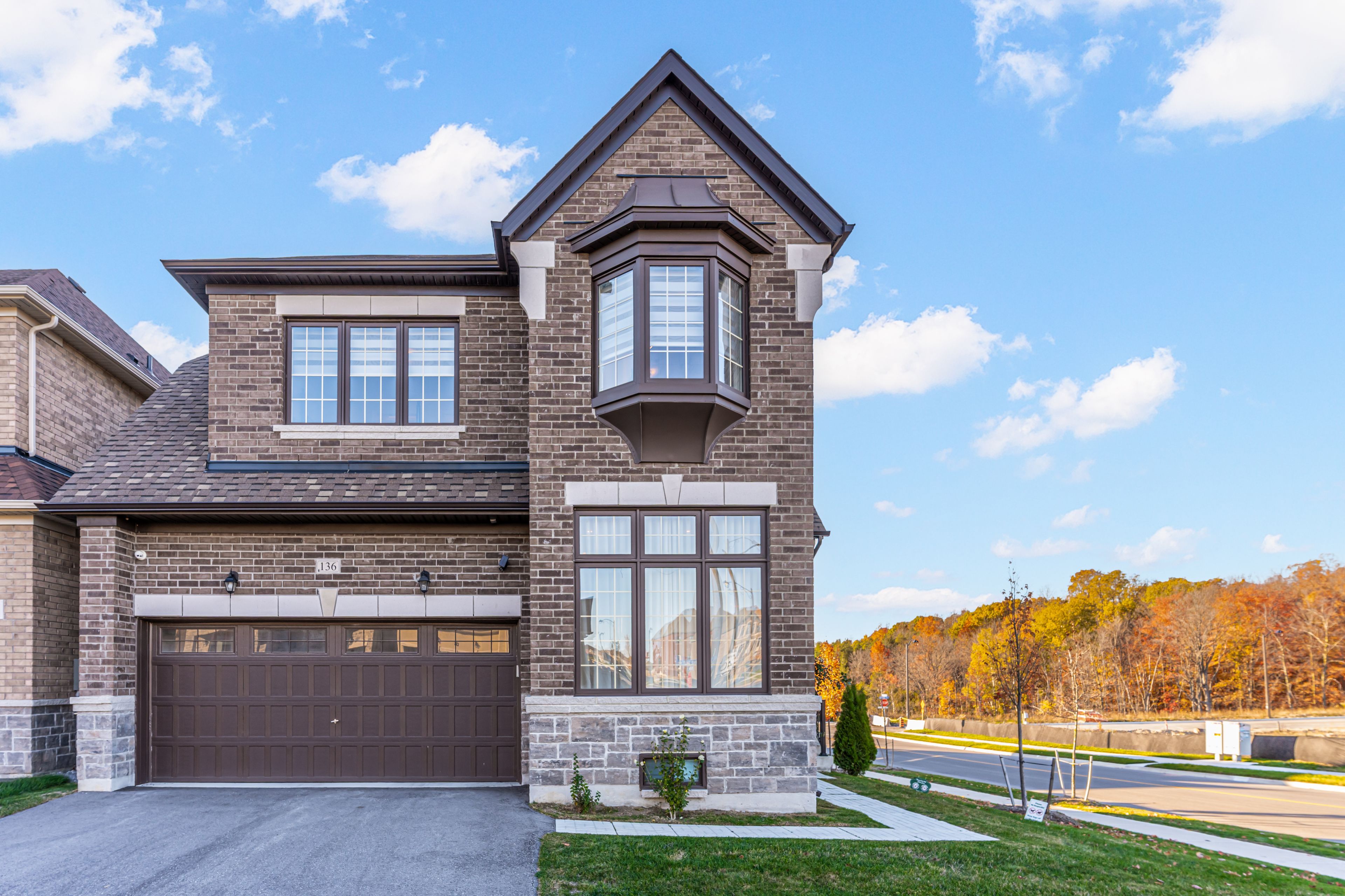 Stunning detached home on a premium corner lot, a residence that perfectly blends timeless elegance, modern comfort, and an unbeatable location.Welcome to this extraordinary detached residence perfectly positioned on a scenic corner with beautiful ravine views, offering unmatched privacy, views, and natural surroundings. Its majestic stone-and-brick exterior delivers breathtaking curb appeal, showcasing timeless design and elevated craftsmanship from the moment you arrive.Step inside the main level defined by an elegant centre hall plan featuring custom soaring 10-ft ceilings and large windows throughout creating a bright, expansive atmosphere ideal for both everyday living and sophisticated entertaining. At the heart of the home lies the gourmet kitchen, complete with built-in premium appliances, upgraded cabinetry, built in custom banquet seating and exceptional storage - a true chef's haven designed for function and style.Upstairs, the enhanced second-level floor plan offers three oversized bedroom retreats, each thoughtfully designed with its own private ensuite and walk-in closet. This rare configuration provides the ultimate in comfort, convenience, and privacy for family members and guests alike.Walking distance to community centre, parks, trails, top-rated schools, YRP Transit. With easy access to Highways, Upper Canada Mall and everything a young family needs this beauty delivers a lifestyle defined by convenience, elegance, and distinction. Every corner reflects sophistication and warmth - A true haven of refined living for families of all sizes. Come Home to your personal sanctuary and embrace the finest in living at 136 Carriage Shop Bend, Where timeless design meets modern luxury.