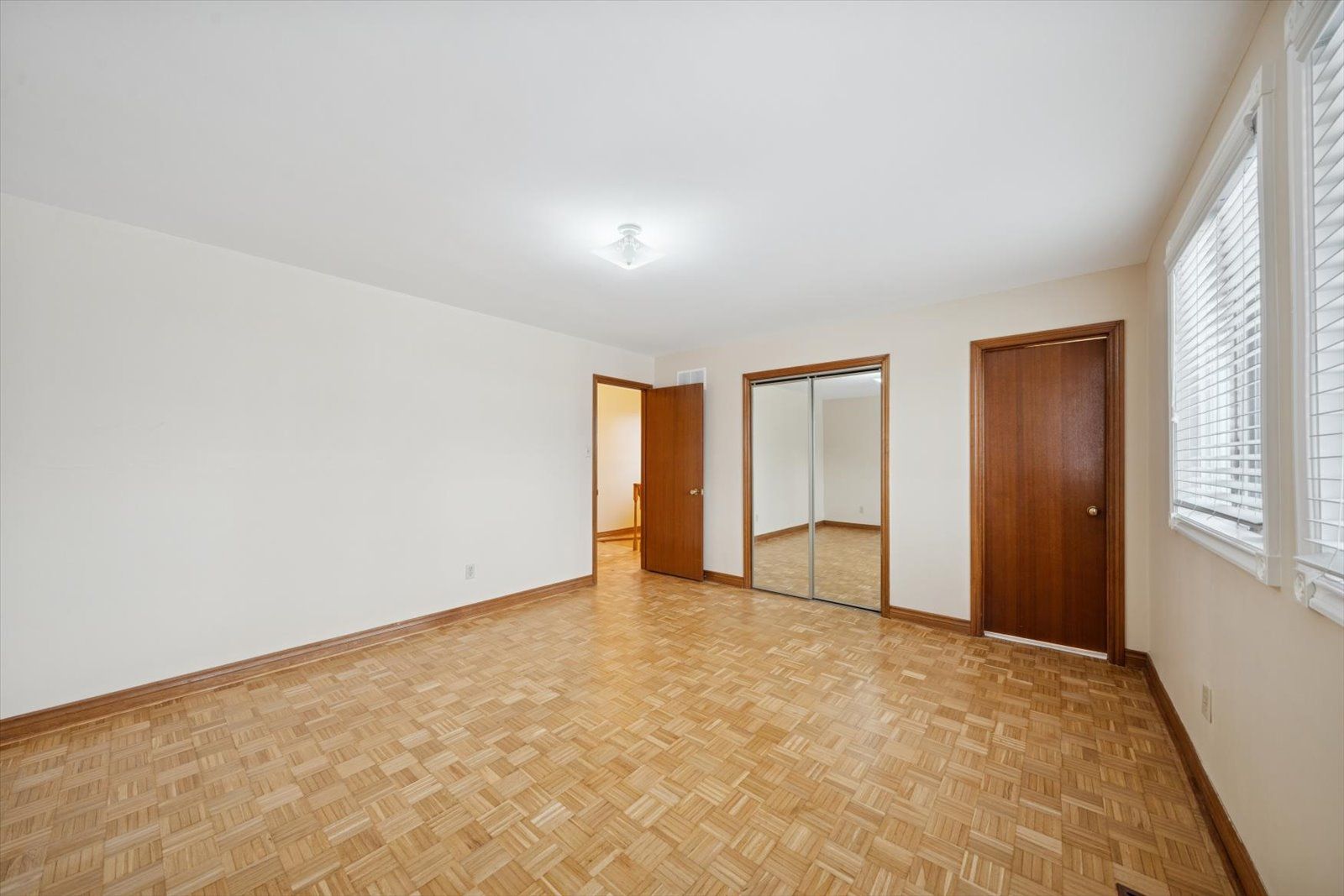 Built in 1986 by Greenpark Homes, this residence retains much of its original charm. Parquet flooring and ceramic tile flow throughout. A well-sized family room, equipped with a wood burning, floor to ceiling bricked fireplace also offers patio doors to access the rear yard. The ground floor kitchen features a tasteful backsplash and retro-style oak cabinetry. The finished basement offers excellent versatility, with two separate staircases leading to a kitchen area, professionally finished drywall, ceramic flooring, ample pot lighting, and a three-piece washroom. A newer high-efficiency Lennox furnace has been installed. Property is being sold under Power of Sale, as-is, where-is, with no representations or warranties. 48 hr irrevocable