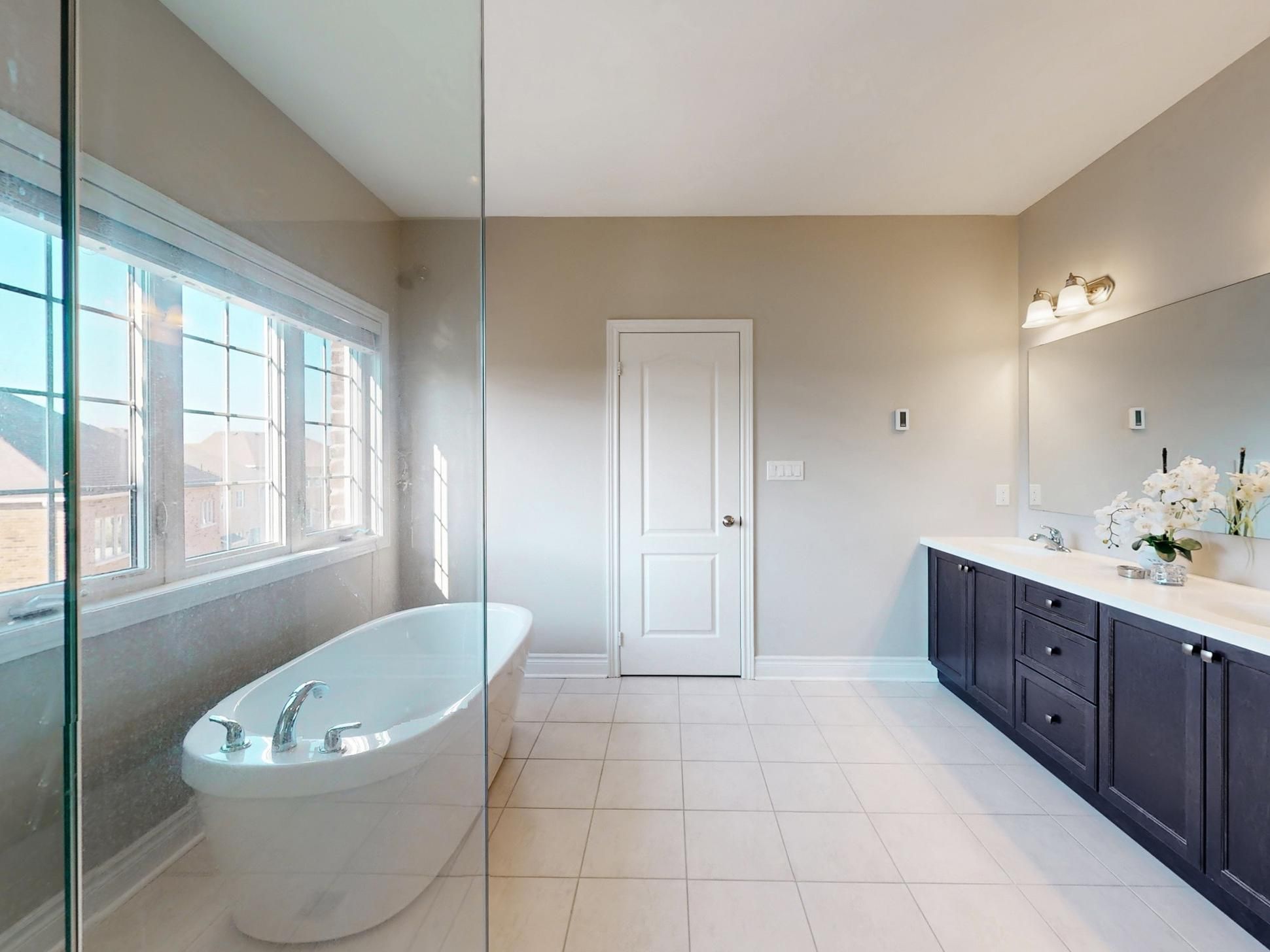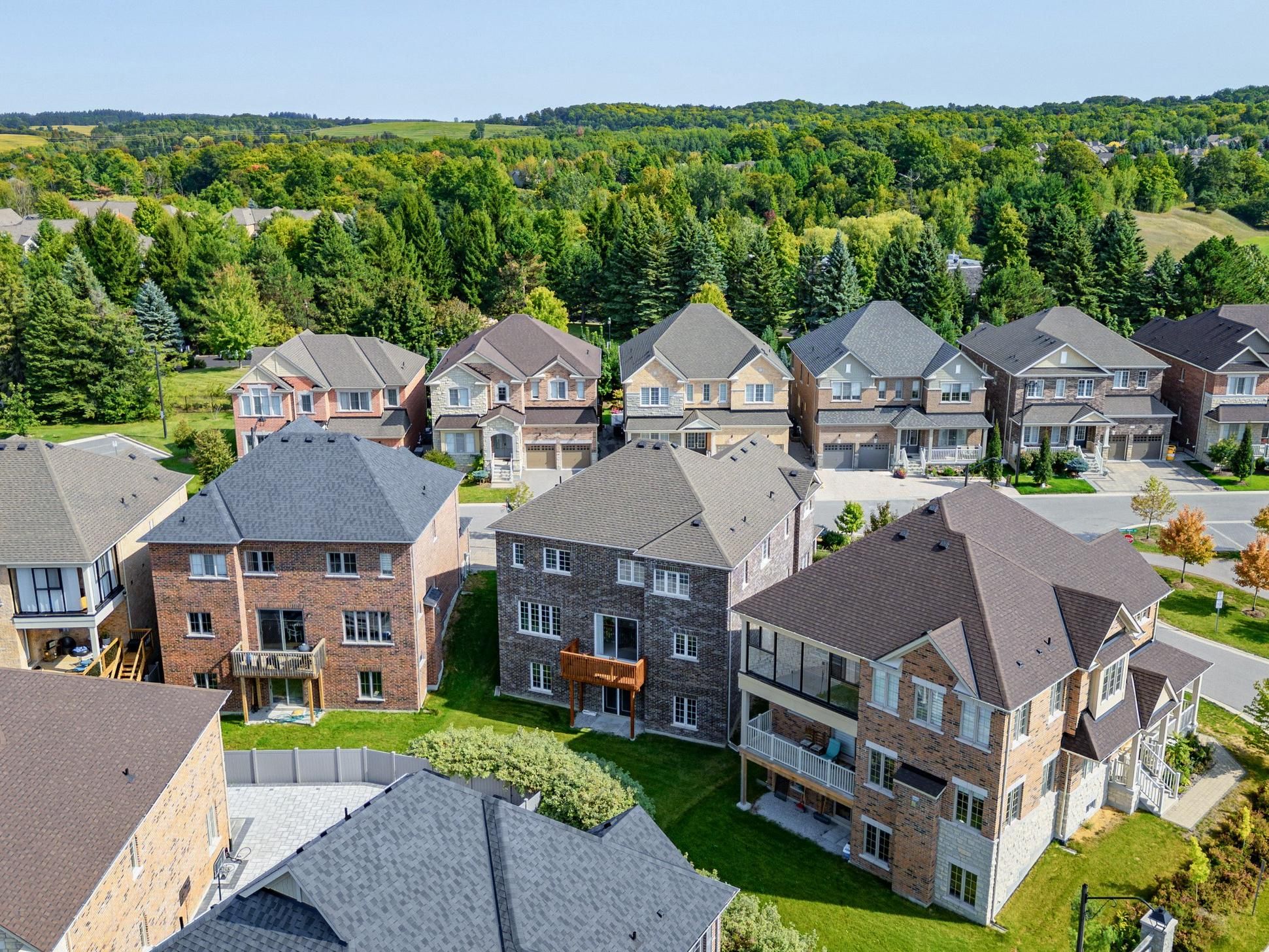 A Warm Welcome To Your New Home Sweet Home - 61 Match Point Court with nearly 100 Frontage (one of the biggest lots in this luxurious, upscale but cozy community with 56 homes only), nestled within the Prestigious Aurora Estates Community. This breathtaking Brookfield Masterpiece is tucked within an exclusive gated community with enhanced security, offering the perfect blend of luxury and serenity among multimillion-dollar estates. With Approx. 3,300 square feet above grade, this meticulously designed residence exudes sophistication, highlighted by 10-foot ceilings on the main floor and 9-foot ceilings on the second floor, a walk-out basement with 9-Foot Ceilings & Lots of Extended Windows. An Airy & Grand Foyer, this open-concept layout showcases Extensive Upgrades, including 8-foot framed double-door, Upgraded Hardwood floor Thru Main & 2nd Floors, Smooth Ceilings & Tons of Upgrades Thru. Open-Concept Gourmet Kitchen, featuring Italian Stainless-Steel Appliances, Quartz Countertops, a Huge Center Island, Upgraded Cabinetry, A Servery connecting to the dining room, a Spacious Breakfast Area. Upstairs, you'll find four generously sized bedrooms with 3 Upgraded Bathrooms. The Grand Primary Suite is a private sanctuary with oversized walk-in closets and a spa-inspired 5-piece ensuite complete with heated floors, double sinks, a soaker tub, a frameless glass shower, and serene park views. Outside, both the front and back yards are fully interlocked, fenced, and professionally landscaped. The backyard offers a private oasis, perfect for cottage-style relaxation and memorable gatherings with family and friends. This luxury home is a rare find - Schedule your showing before it is gone!