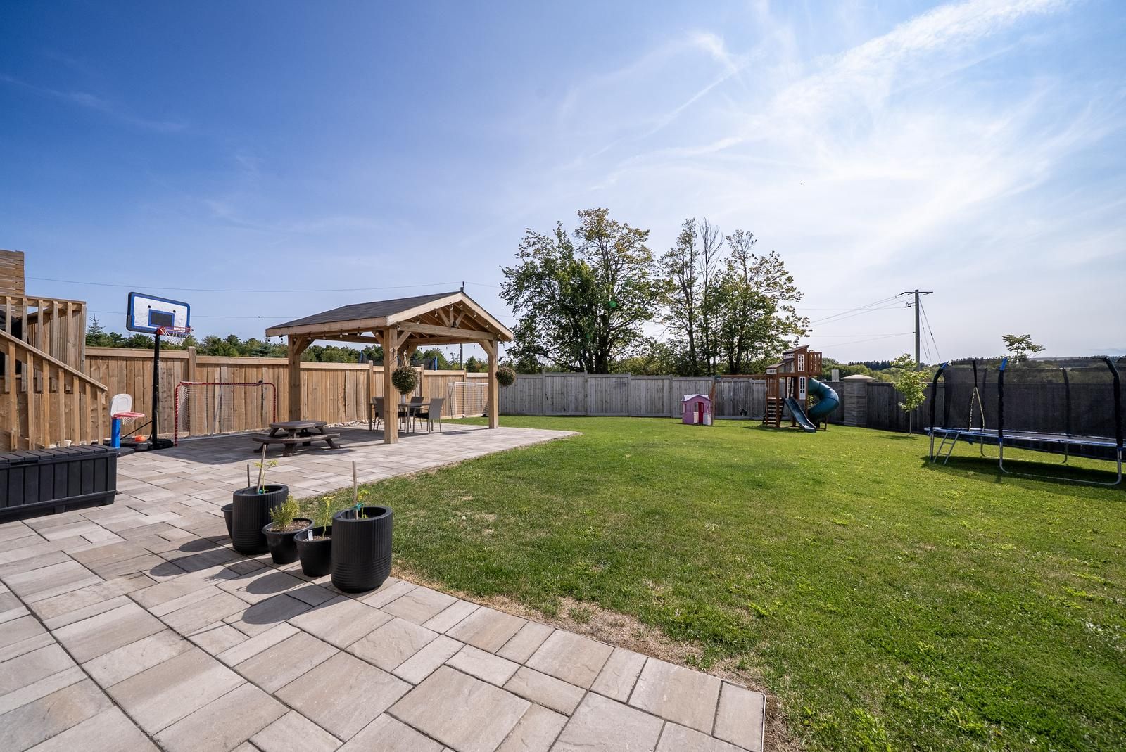 Exceptional customized 4 bedroom, 4 bathroom home offering close to 3,000 sq.ft. of refined living space with quality finishes throughout. Striking curb appeal with professionally landscaped grounds, elegant exterior and inviting covered entry. The open-concept main floor features wide plank hardwood flooring, spacious principal rooms and a designer kitchen complete with quartz countertops, oversized island, built-in appliances, extended cabinetry and coffee station, seamlessly flowing into the sun-filled family room with gas fireplace and backyard views.The second level offers four generous bedrooms and three full bathrooms, highlighted by a luxurious primary retreat with a spa-inspired 5-piece ensuite and dual custom walk-in closets. Enjoy the added benefit of 9-ft ceilings on both the main and upper levels, creating a bright and airy atmosphere throughout.Located on one of the largest lots in the neighbourhood with no rear neighbours, the private backyard oasis is beautifully landscaped and includes a custom gazebo, garden shed and raised vegetable planters, with ample room for a future pool or swim spa. Direct garage access with custom built-ins. Unfinished basement with excellent development potential.Ideally situated in New Stouffville, close to top schools, parks, trails, shopping, dining, GO Transit and convenient access to Hwy 404 & 407. An outstanding opportunity in a premier family community.