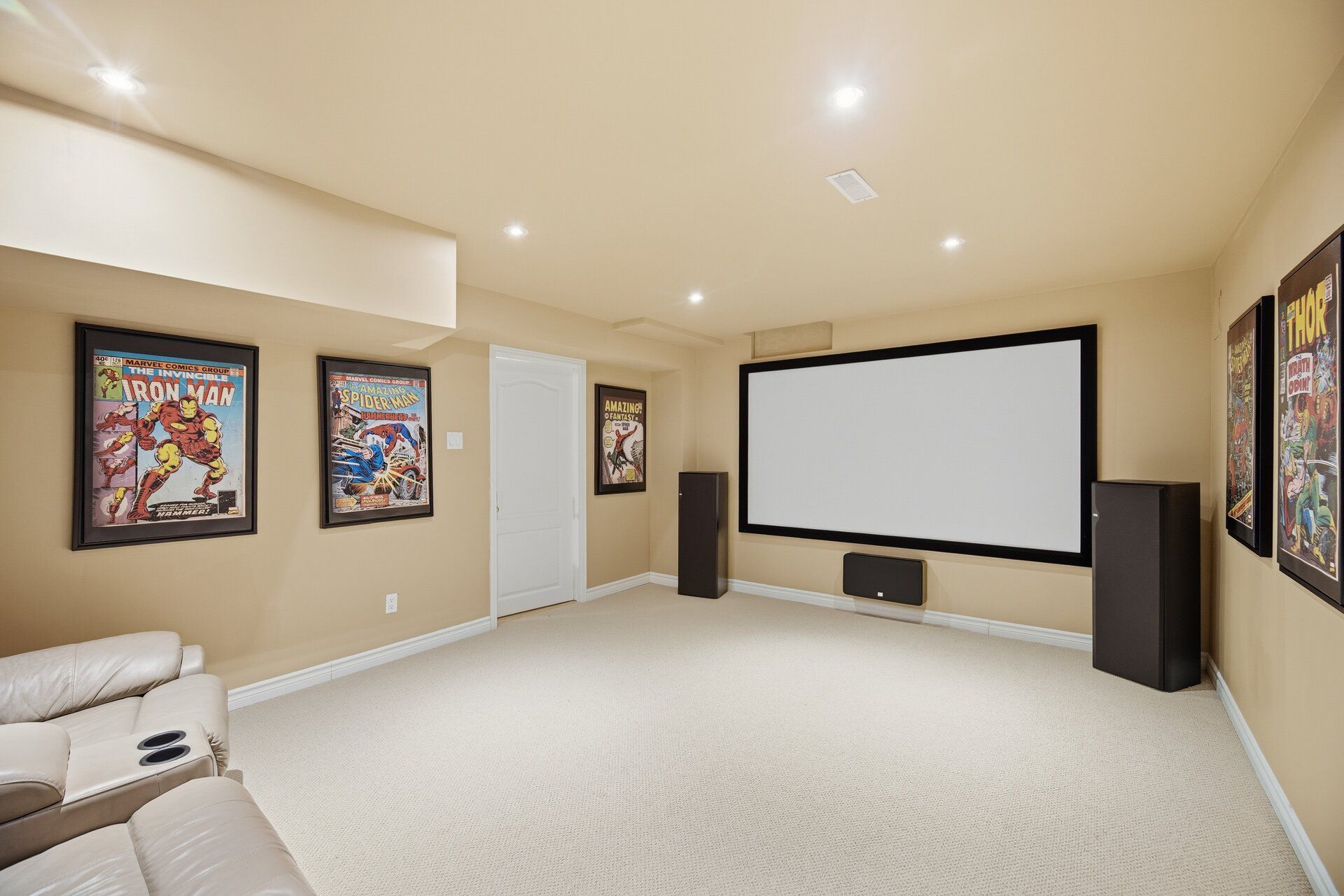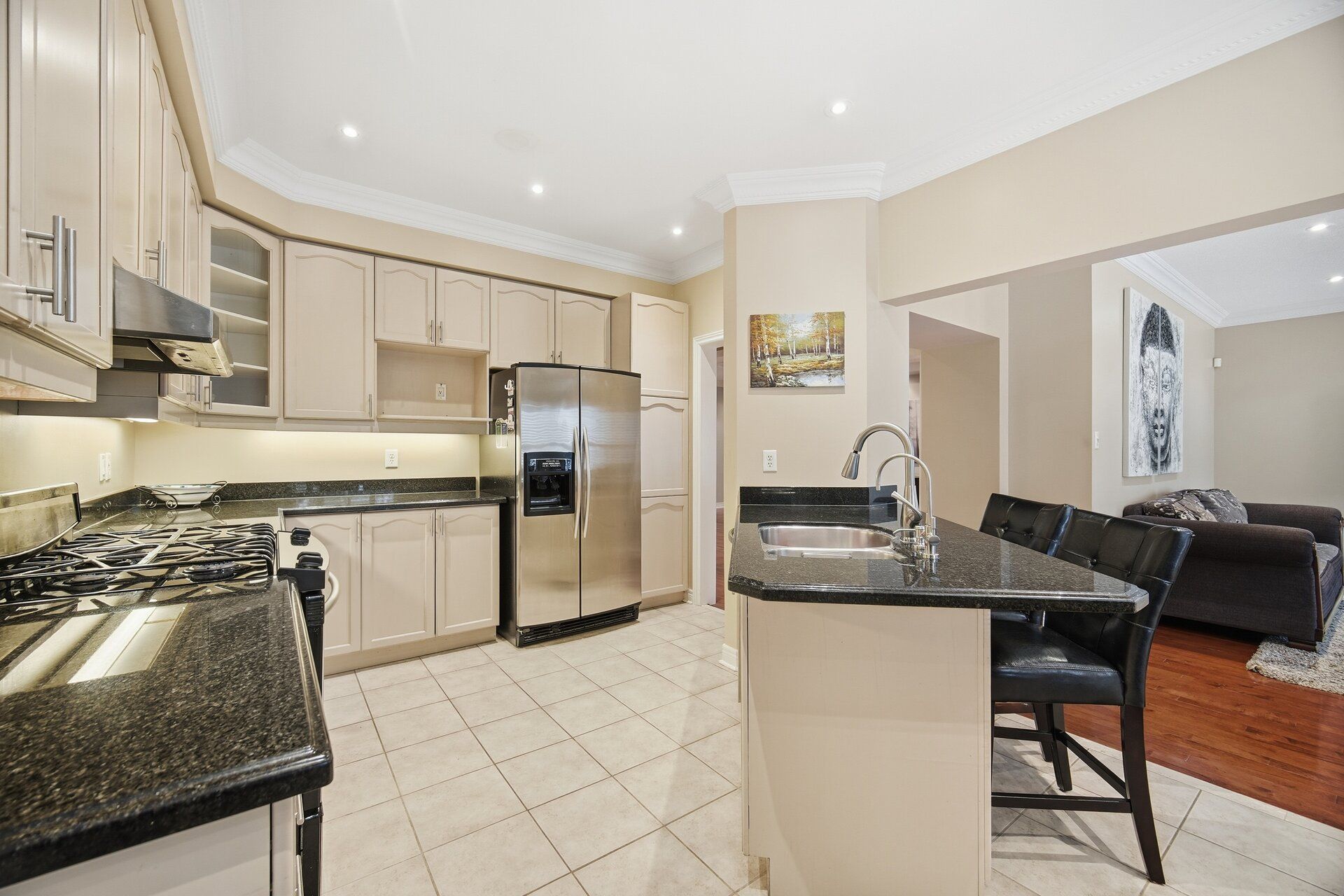 Impeccably maintained 4+1 bedroom, 4 bathroom detached home in highly sought-after Thornhill Woods, offering approx. 2,900 sq ft above grade plus professionally finished basement with dedicated home theatre/media room and full bath. Features hardwood floors on main level, a family room with fireplace open to kitchen with granite counters, double-car garage, and private backyard with mature trees. Quiet, mature neighbourhood with long-term residents. Minutes to Hwy 407, approx. 10-minute drive to GO stations and subway, parks, schools, community centre, shopping and transit. Full-house water filtration & RO system; all appliances and BBQ included.