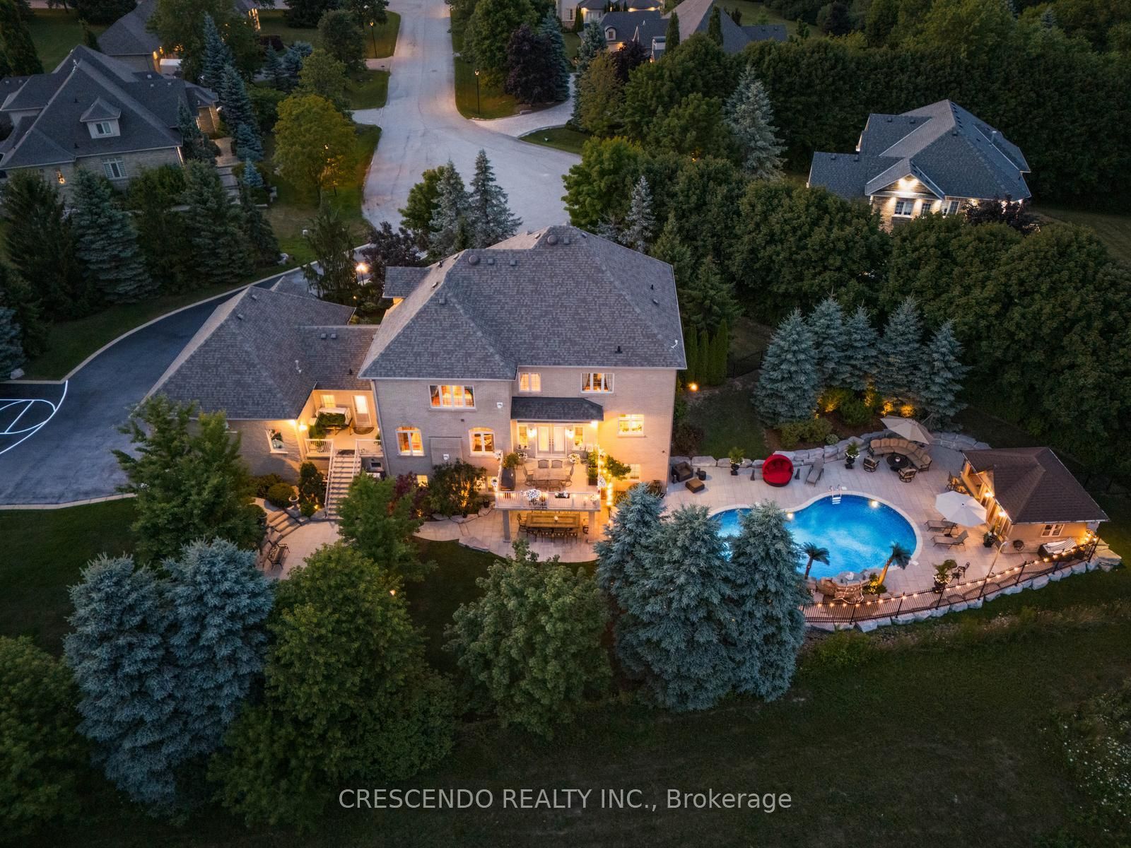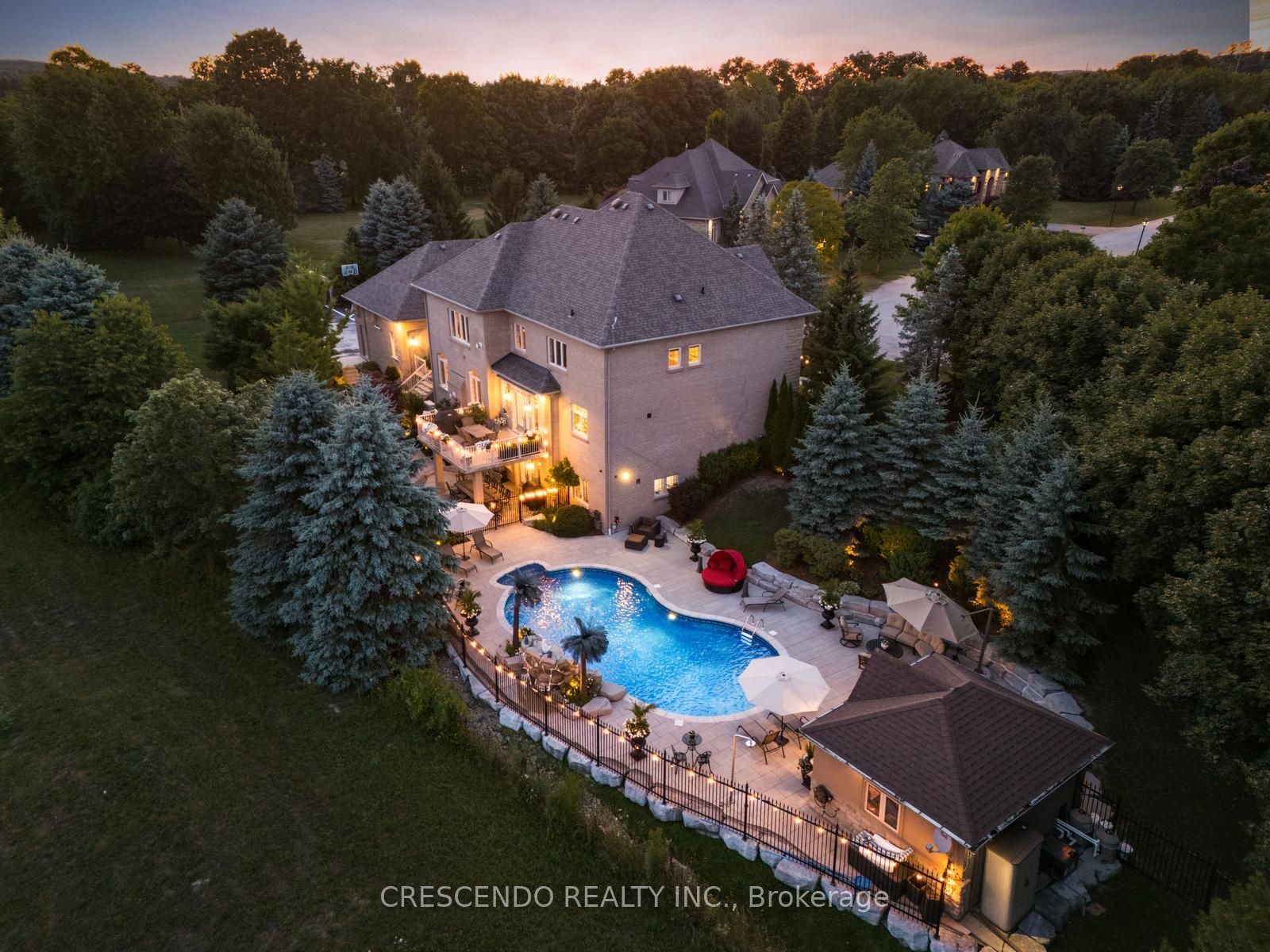Welcome To This Exquisite Estate In The Prestigious Laskay Community Of King City, Situated On A Stunning One-Acre Premium Lot End Of A Private Cul-De-Sac. This Custom-Built Home Offers 4 Bedrooms, 5 Bathrooms, Over 7,000 Sq. Ft. Of Beautifully Finished Living Space Across Main And Lower Levels. Designed For Elegance, Comfort, And Privacy, Featuring A Resort-Style Backyard Surrounded By Mature Trees And Lush Landscaping, Creating A Tranquil Retreat Perfect For Relaxing Or Entertaining Under The Stars. A Grand Entrance Welcomes You With A Prominent Water Fountain & 100+ Ft Driveway. Customizable Gemstone Lighting Enhances The Exterior After Dusk. Inside, A Soaring 24-Ft Foyer And Modern Circular Staircase Impress. The Main Level Showcases A Spacious Layout W/ Stone & Hardwood Floors, Large Windows For Natural Light. The Chefs Kitchen Includes Granite Counters, Custom Cabinetry, And Premium Appliances Combined With A Walkout Balcony With Gas BBQ Overlooking The Private Backyard. Open To Kitchen Is A Cozy Family Room With Gas Fireplace. The Hall Connects A Large Laundry Room And A 3-Car Garage With 12-Ft Ceilings Including Car Lift. The Lower Level Is An Entertainers Dream With An Open Layout, Full Kitchen W/ Island, Spacious Living Area, Private Salon, And Home Theatre Featuring 12 Recliners And 7-Speaker Surround Sound. Walkout Access Leads To The Backyard Retreat With Multiple Seating Areas, A 20 X 40 Saltwater Pool, Remote-Controlled Waterfall & Lighting, Pool Cabana With Bar, Shutters, & Outdoor Shower. Upstairs, The Grand Landing Opens To A Luxurious Primary Suite With Fireplace, Dual Walk-In Closets W/ Custom Built-Ins, Spa-Inspired Ensuite With Jacuzzi, Oversized Shower, And Vaulted Ceiling. Prime Location Minutes From Highway 400, Plenty Of Space On Property To Add More Garages Or Increase Home's Square Footage If Desired.