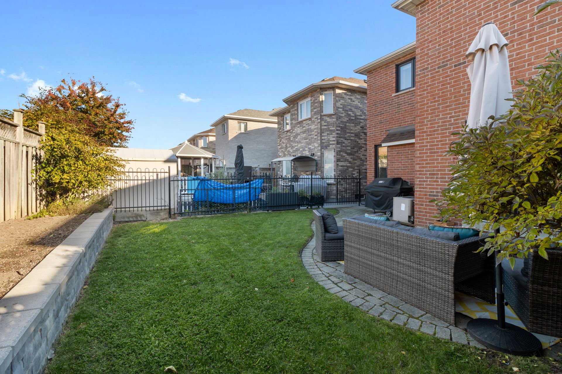 Family Home in Sought-After Maple Community: detached home nestled in one of Maple's most desirable, family-friendly neighbourhoods. Its impressive curb appeal, charming verandah & landscaped front & back yard, Step inside to discover four spacious bedrooms & large principal rooms w/gleaming flooring, neutral tones, & modern lighting. The open-concept family room features a cozy gas fireplace, family-size kitchen and breakfast area with a walkout to the large backyard offering a private stone patio-ideal for entertaining indoors & outdoors. Ceramic backsplash, double S/S sink W/gooseneck faucet , brand-new S/S kitchen appliances, and abundant cupboard space Enjoy peace of mind with new windows , silhouette blinds. Finished Rec room offers versatile space-perfect for a home office, gym, playroom, or cozy family retreat. Fully fenced backyard ideal for family gatherings or summer BBQs & features raised garden beds, extensive stonework patio leading to the stone walkway & curbed detailing at front., Located just minutes from the Maple GO Station, Maple Community Centre, Vaughan Mills Shopping Centre, wide range of cafes, boutiques, and restaurants, this home offers both convenience & lifestyle.