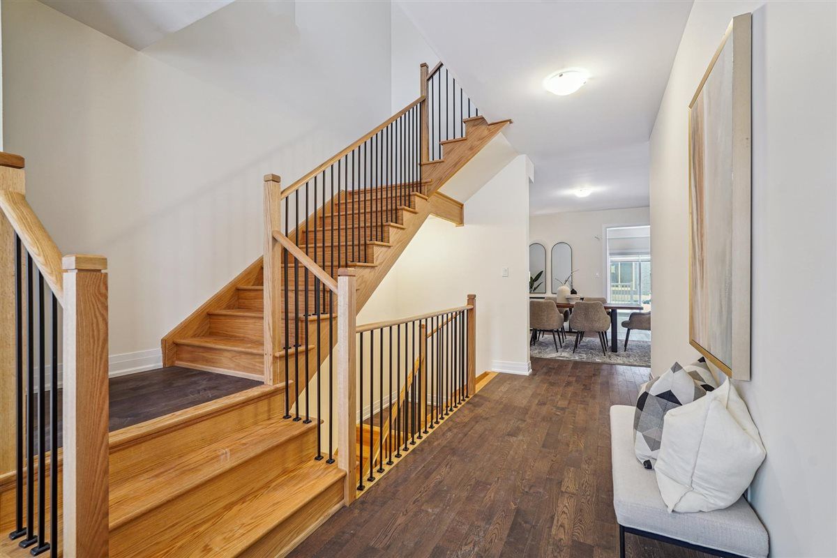 Discover King East Estates, a coveted new community perfectly nestled between King City and Oak Ridges, offering a rare blend of small-town charm, urban convenience, and nature at your doorstep. Live minutes from Lake Wilcox, scenic parks and trails, top rated schools, boutique shops, restaurants, and everyday essentials, with easy access to Go transit near by, major routes, many premier golf courses, and endless outdoor recreation and secluded walking trails. This one of a kind, brand new 2665 sq ft (above grade) detached home features, double door entry, 4 bedrooms and 4 bathrooms above grade with loft style den on second floor. One bedroom below grade plus a den, potlights, thoughtfully designed for modern family living and entertaining with two full bathrooms in the basement, and two large separate closets. Step inside to hardwood floors throughout with contrasting staircase and rod iron posts, a stylish peninsula kitchen with gas stove, brand new Whirlpool stainless steel appliances and welcoming dinette/breakfast area. flowing seamlessly into the family room with 9 coffered ceilings and a gas fireplace with marble inlay-the perfect cozy gathering space with extra large windows and all window covered included. The extra high ceiling in the double garage is perfect for extra storage and two large parking spaces for full size vehicles. Gas line for bbq off the back deck. Central vacuum rough in. Laundry room on the main level and basement, while the primary bedroom offers a true retreat with walk in closet and 5 piece ensuite with two quartz countertops. Smooth ceilings elevate the clean contemporary feel of the home on second level. The basement features a walk up separate entrance, ideal for extended family space, a future suite or added potential for savvy investor.