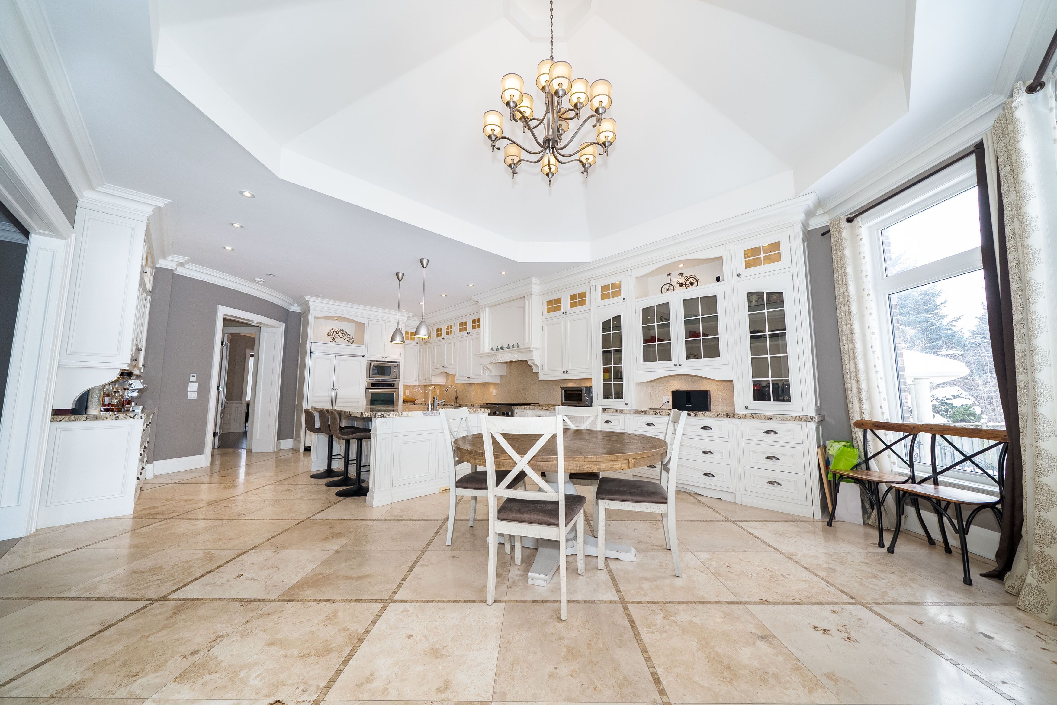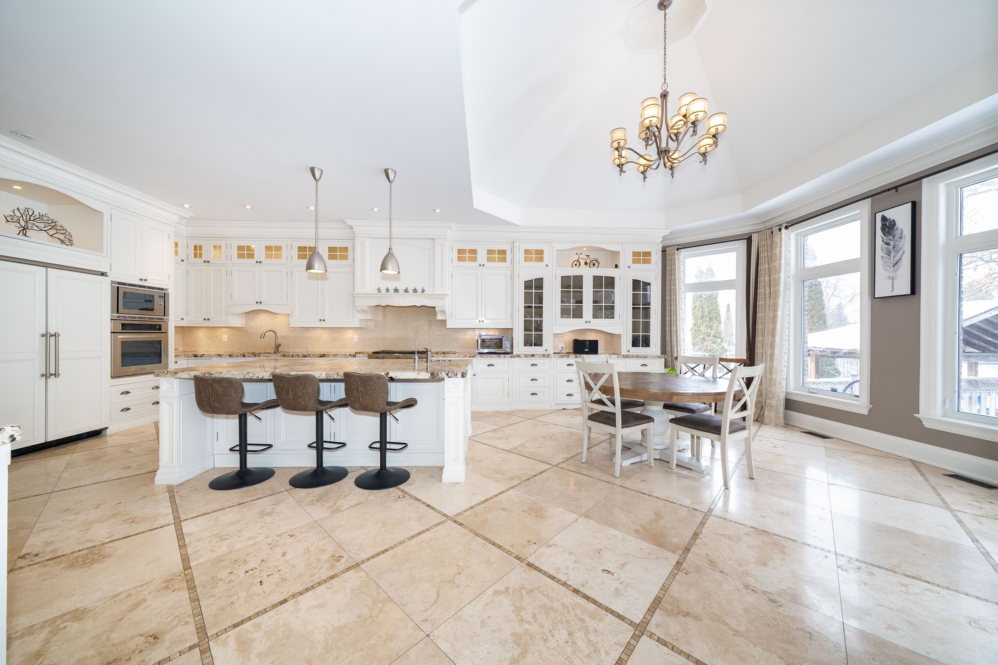 An exceptional custom-built luxury residence set on an expansive 45 x 240 ft premium lot in the heart of prestigious South Richvale, surrounded by distinguished multi-million-dollar estates. This bright, south-facing home presents an elegant natural stone exterior and refined architectural presence, complemented by soaring 10-foot ceilings on the main level and 9-foot ceilings above. Thoughtfully designed interiors showcase impeccable craftsmanship, featuring a bespoke gourmet kitchen with an oversized centre island, granite countertops, and integrated high-end appliances, seamlessly flowing to a walk-out breakfast area and private patio. Rich hardwood, limestone, and marble flooring anchor the home's sophisticated aesthetic, enhanced by extensive wainscoting, chair rail detailing, skylight, and three beautifully appointed fireplaces. A custom-designed office with coffered ceiling and built-in shelving offers an ideal executive workspace. The professionally finished walk-up basement is filled with natural light and includes above-grade windows, a generous L-shaped recreation area, additional bedroom, and full bathroom, perfect for extended family or entertaining. Additional highlights include a rare tandem three-car garage, interlock driveway and patio, heated floors, built-in furnishings, sprinkler and alarm systems, and abundant pot lighting throughout. Ideally positioned within walking distance to Yonge Street, top-ranked schools, public transit, and just minutes to Highway 407, this residence delivers refined luxury living in one of Richmond Hill's most coveted enclaves.