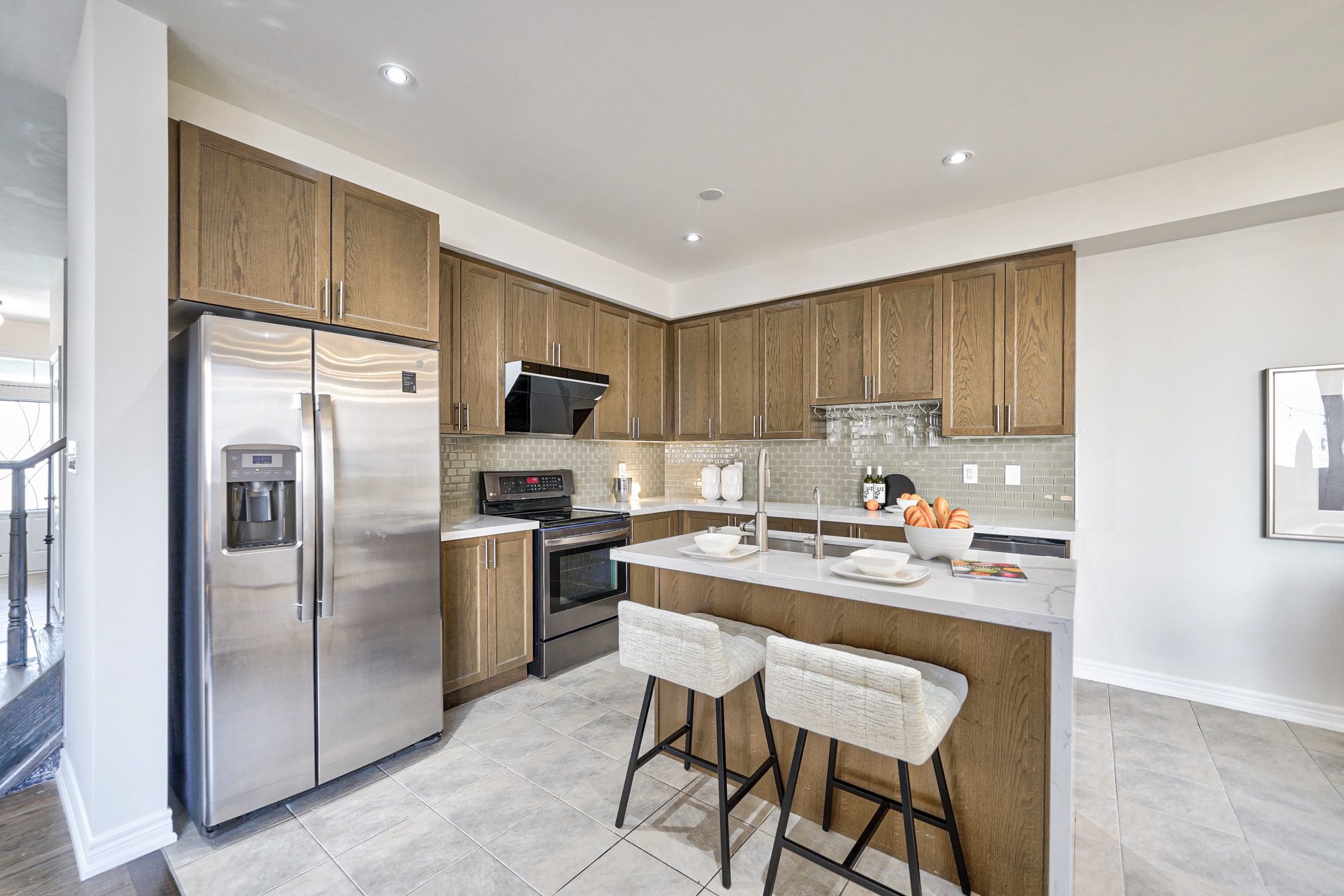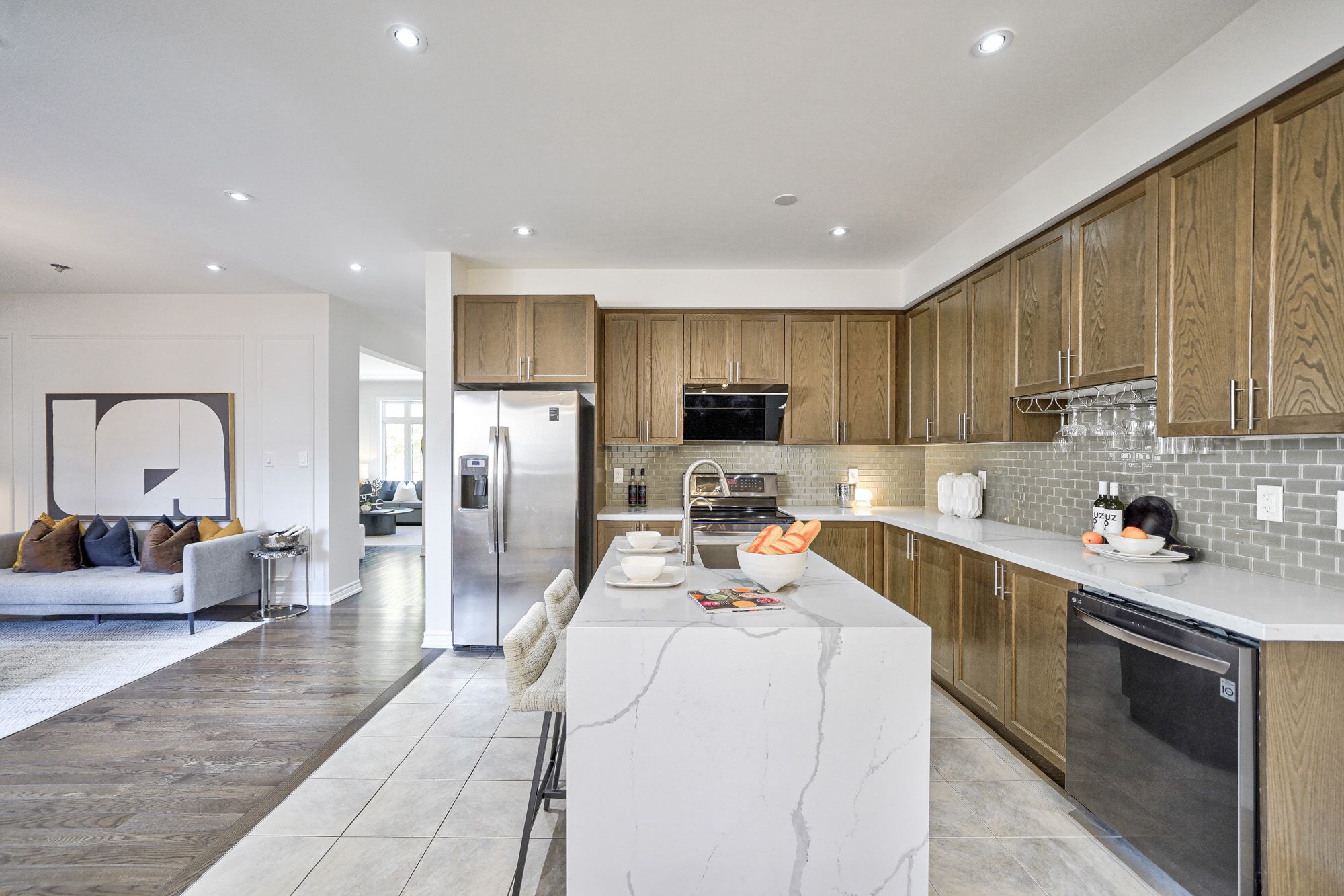 Discover this stunning modern 5 Bed home, located in the highly sought-after Cornell area of Markham. This property boasts luxurious upgrades and offers a unique blend of comfort, elegance. Main Home Features: Elegant Interiors: Enjoy 9 ft ceilings and pot lights on the main floor, complemented by hardwood floors throughout the property. Designer Touches: Beautiful wainscoting on the first floor adds a touch of sophistication. Gourmet Kitchen: Custom kitchen featuring quartz countertops with a waterfall central island, perfect for cooking and entertaining. Family-Friendly Layout: Family-sized eat-in breakfast area with direct access from the double-car garage. Convenient Main Floor Bedroom: The first-floor bedroom includes a 4-piece ensuite, ideal for an in-law suite or home office. Upgraded iron picket oak stairs lead to a spacious second floor. The master suite boasts a 5-piece ensuite and walk-in closet. All bathrooms feature premium quartz countertops. Professionally landscaped surroundings with a charming private backyard, perfect for relaxation and entertaining. Separate Entrance Offering Great Privacy. Close To Amenities, Shopping, Walking Distance To Schools, Parks, Hospitals, Rec Centre, Public Transit, Cornell Bus Terminal & Hwy 7 Visa Transit, And More. Easy Access To Hwys, GO Train, And Great Schools.