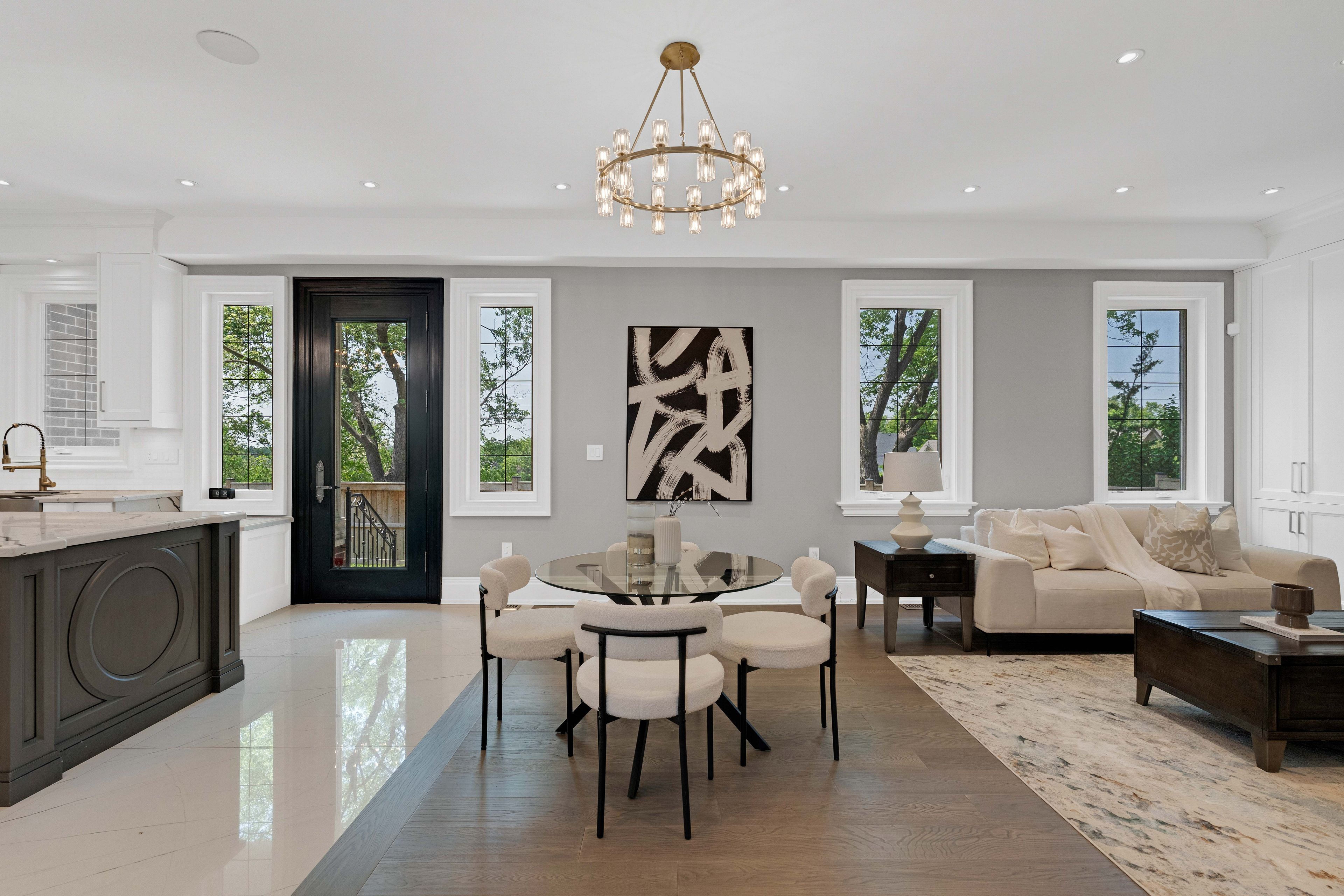 Welcome to this custom-built luxury residence (2021) located in the heart of prestigious Kleinburg Village. Offering approximately 6,000 sq. ft. of beautifully finished living space, this exceptional home combines contemporary elegance with functional family living.The main level features a grand open-concept layout with oversized windows, engineered hardwood flooring, and refined millwork throughout. The chef's kitchen is equipped with JennAir professional appliances, including a 6-burner gas cooktop, built-in wall oven, integrated fridge and freezer, and a large waterfall island - ideal for both everyday living and upscale entertaining. The open family room is highlighted by a sleek gas fireplace and custom feature wall, while the formal dining area provides an elegant setting for gatherings. A private main-floor office and stylish powder room complete the level.The second floor offers three spacious bedrooms, each with its own ensuite finished with custom tile and spa-inspired details. The primary retreat features a large walk-in closet with built-ins and a luxurious ensuite complete with a freestanding soaker tub, glass-enclosed shower, and double vanity. An open balcony office area overlooking the main level provides additional flexible workspace or reading space.The third-floor loft includes an additional bedroom and full bathroom - perfect for extended family, guests, or a private studio.The fully finished lower level features a second kitchen, expansive recreation area, additional bedroom, and full bathroom - offering ideal space for in-laws or multi-generational living.Located steps to Kleinburg Village amenities, top-rated schools, parks, restaurants, and scenic walking trails.