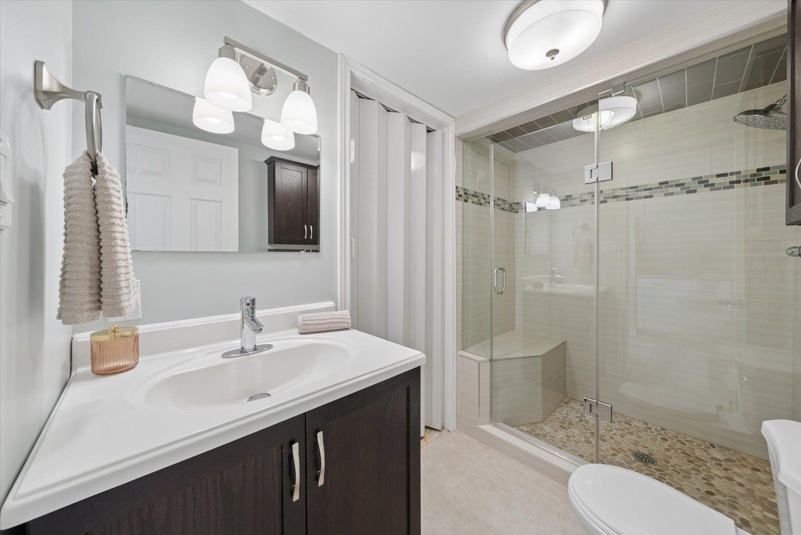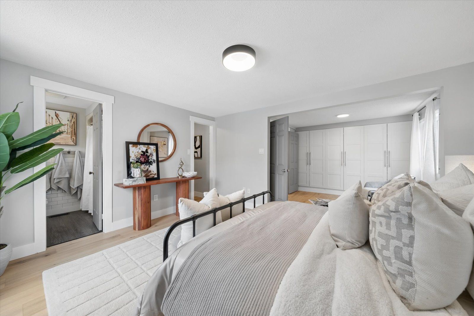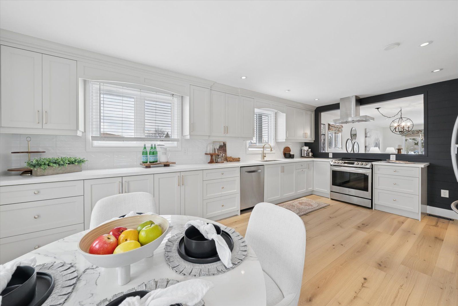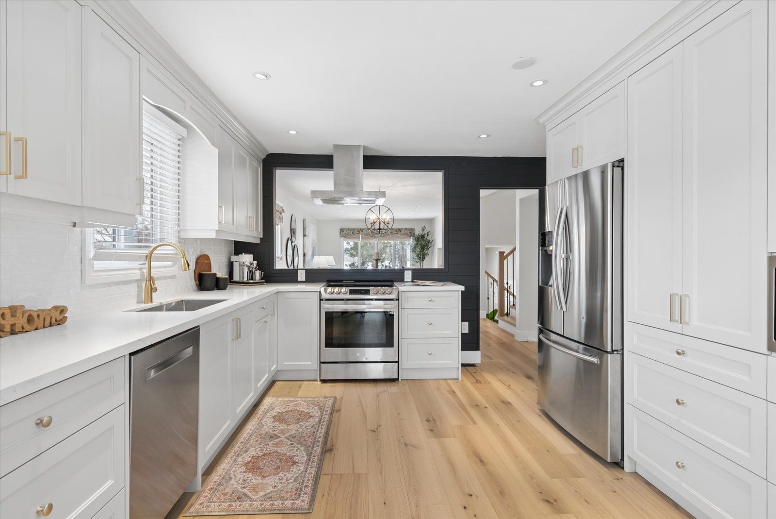 Beautifully updated sidesplit home offering spacious, functional living areas and thoughtful modern upgrades. The main level features a welcoming living room with a cozy fireplace and walk-out to the patio, along with convenient main floor laundry and a guest bathroom. The next level offers a bright, open-concept Family room and dining area with a charming pass-through window to the kitchen-perfect for hosting family and friends. The fully renovated kitchen (2026) has never been used and is complemented by newly installed hardwood floors (2026), new tile flooring in the front entrance, and updated light fixtures throughout the home (2026).Upstairs, the spacious primary bedroom includes a combined office area, walk-in closet, ensuite bathroom, and additional closets at the entrance for ample storage. Two additional bedrooms and a 4-piece bathroom complete the upper level, with each bedroom offering generously sized closets. The redesigned lower basement provides exceptional flexibility with a private in-law suite featuring two bedrooms, a kitchen, and a bathroom-ideal for guests or extended family. This level also includes a cozy library area, egress windows for added natural light and safety, and one bedroom with a walk-in closet and abundant storage.Step outside to enjoy the backyard, highlighted by a newly updated deck (2021) that creates the perfect space for relaxing afternoons or entertaining with family and friends.Additional features such as garage door openers and exterior lighting enhance both convenience and security around the home.Situated in a great and safe neighbourhood, this home is ideal for families with a park just across from the school and both public and Catholic schools within walking distance, offering everyday convenience in a welcoming community.