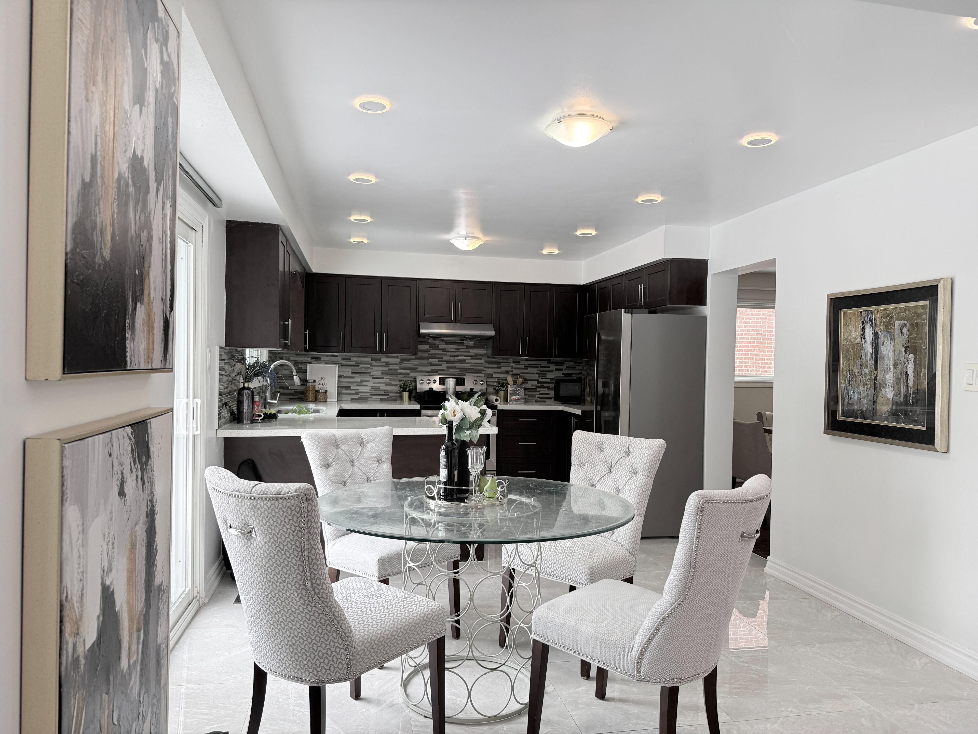 New Renovated 4-bedroom, 4-bathroom detached home 2024 New Roof, 2018 HRV and 2025 New Furnace in Milliken West . skylight. The kitchen with s/s Dishwasher(as it) and portlight (as it) and s/s appliances. Finished basement with Separate Entry 3 bedrooms and Washroom and kitchen.