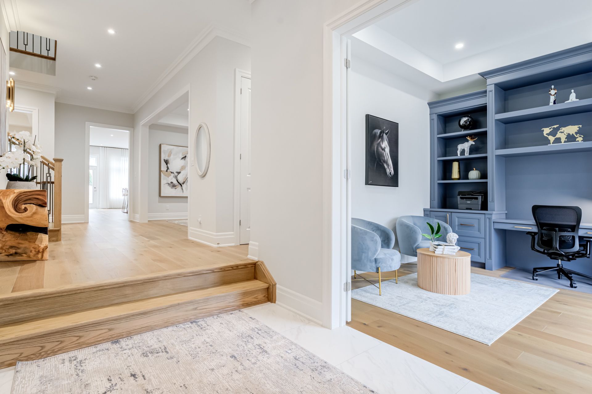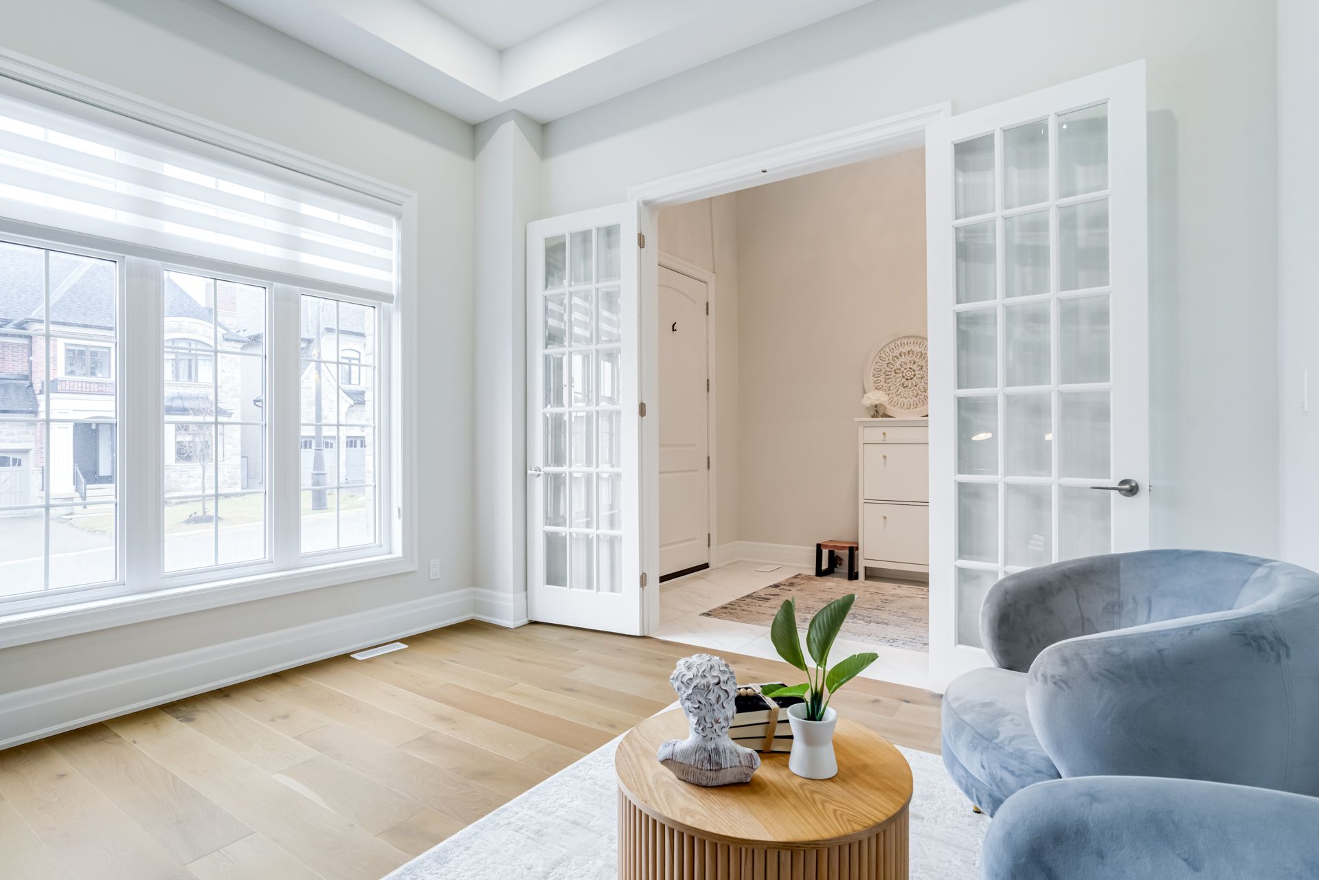 Set on a rare 50 ft lot on a quiet, family-friendly court in Vaughan's prestigious Patterson community, 9 Casavant Court is one of the newest (2022 built) and most refined luxury homes in the area-zoned for top-ranked schools & surrounded by exceptional amenities. This fully customized 5-bedroom, 6-bathroom residence with 10 ft ceilings on main, 9 ft ceilings on 2nd floor & 9 ft in basement, spans 4513 sf above grade, with an additional 1753 sf finished walk-up basement offering hydronic radiant floor heating. Features extensive custom upgrades throughout: open-to-above design; oversized windows; 10 ft ceilings on main highlighted by an 11 ft ceiling in the front office with custom built-ins-ideal for luxurious home office experience; 7-inch wide-plank hardwood flooring; smooth ceilings throughout; designer lighting; custom drapery; 8 ft doors & upgraded trim; crown moldings; upper-level laundry; functional mudroom; water filtration system; full surveillance system. The chef's kitchen impresses with 9 built-in Thermador appliances, a 5 ftx10 ft island featuring 1 stone as a counter, eat-in area, quartz countertops & backsplash, custom designer cabinetry with display lighting, fully integrated apli-s, flowing seamlessly into the family rm & formal dining rm creating a sophisticated space for entertaining.Family rm offers custom built-ins & double-sided gas fireplace. Formal living rm features wall scones & enlarged window.Upstairs 5 spacious bedrooms & 4 full bathrooms feature 9 ft ceilings, while the primary suite includes enlarged windows, walk-in closet with natural light & custom organizers, a 7-pc spa-inspired ensuite & private gas fireplace for a touch of luxury.The finished walk-up basement with heated floors provides versatile additional living space, while the pool-sized backyard offers a private oasis perfect for summer entertaining. Your opportunity to own a 2022 built, extensively upgraded home on a quiet court in one of Vaughan's most desirable enclaves!