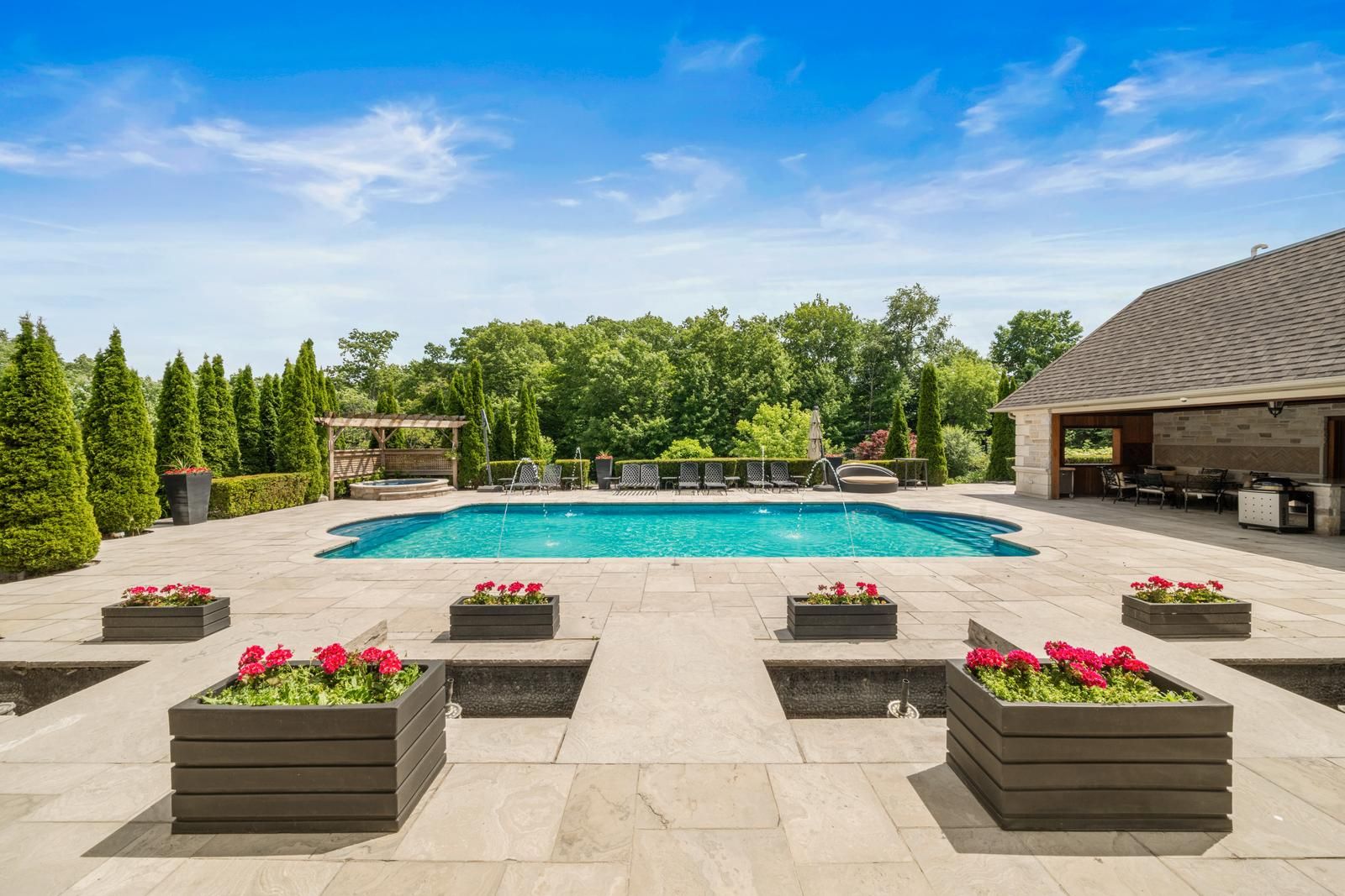 - Interior Features: Built-In Oven, Bar Fridge, Central Vacuum, Countertop Range, Auto Garage Door Remote, Guest Accommodations, In-Law Suite, Sauna