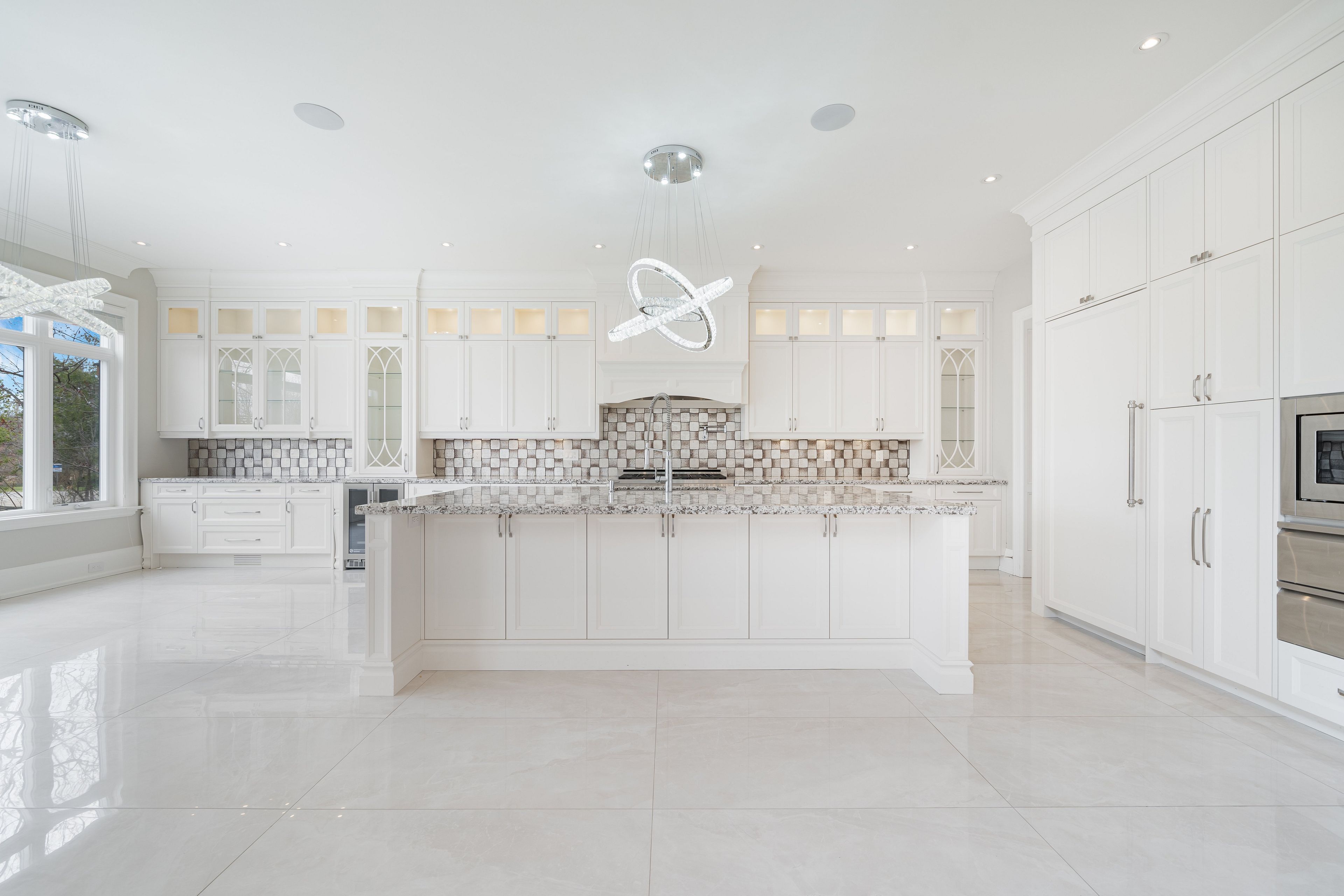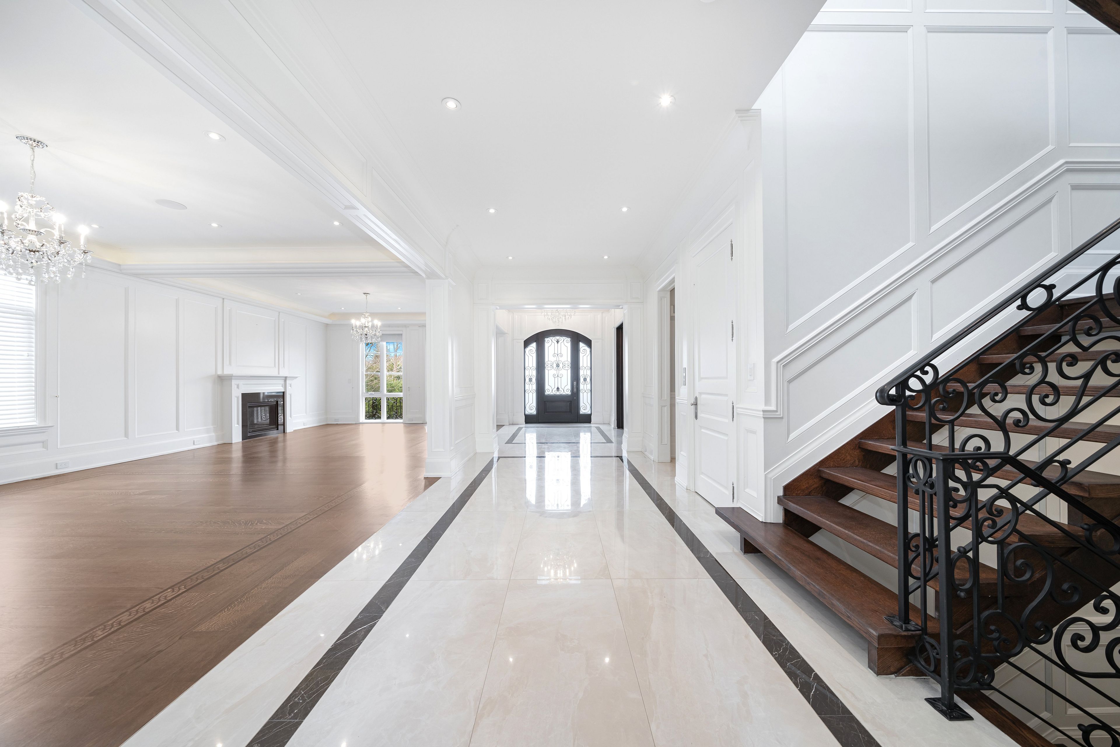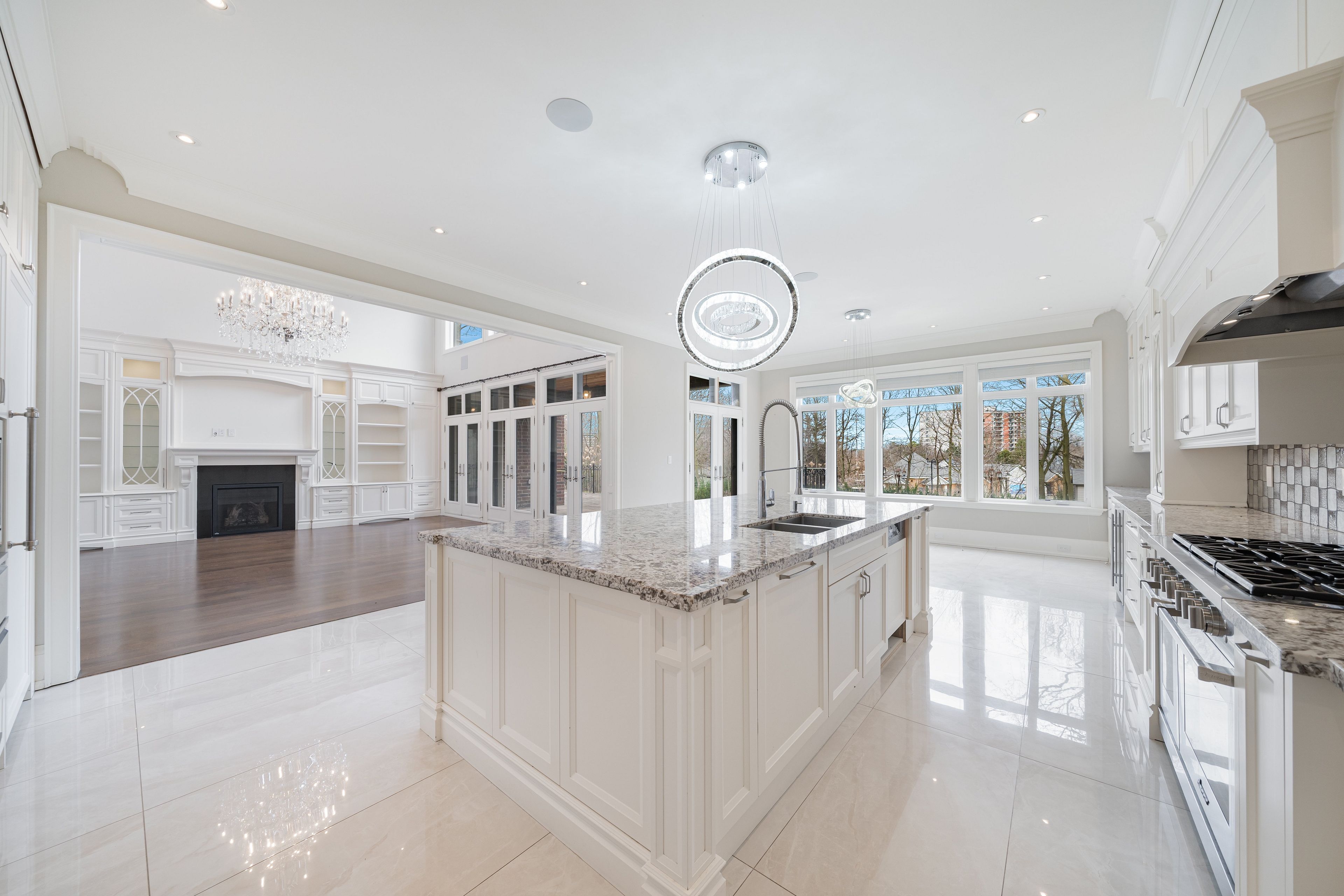 Welcome to Iconic 9 Thornbank Road, a residence of rare distinction set on one of Thornhills most Prestigeous streets. Situated on a stunning 100 x 270 ft manicured lot, this grand stone and brick estate exemplifies architectural excellence and timeless craftsmanship. Spanning approximately 11,000 sq. ft. of luxurious living space, this custom-built masterpiece has been thoughtfully designed for both grand-scale entertaining and refined family living. Step into the dramatic 22-ft waffled-ceiling Great Room, where natural light, rich millwork, and heated floors create an atmosphere of warmth and elegance. The chef-inspired gourmet kitchen features an expansive pantry, a sunlit breakfast area, and multiple walkouts to private terraces, ideal for seamless indoor-outdoor living. Each bedroom offers private ensuite bathrooms and designer finishes, while the walk-out lower level provides a full lifestyle experience, complete with a home theatre, fitness studio, and private elevator for effortless access throughout the home. This is more than a residence, it's a bold expression of prestige, presence, and perfection.