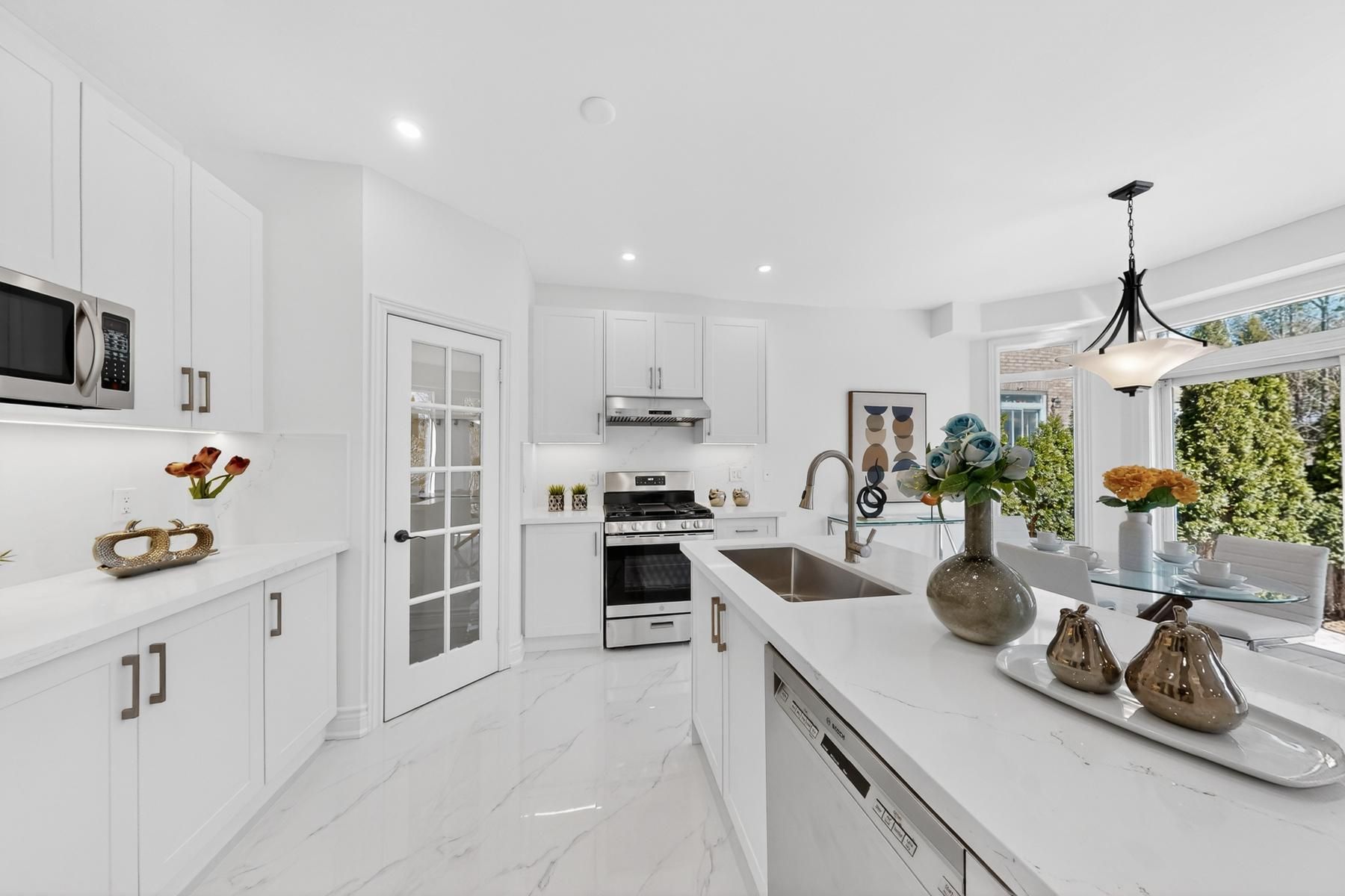 Welcome to your potential new sanctuary-a stunning 2007-built detached residence offering over 4,000 sq. ft. of professionally renovated, turn-key living space (including basement). This home perfectly balances sophisticated comfort with modern utility, featuring premium upgrades including A/C (2023), roof (2022), and furnace (2018). The interior radiates contemporary elegance with 1st floor 9 ft. ceilings, brand new high-quality engineered wood flooring throughout main floor. A fresh coat of paint throughout, complemented by upgraded lighting and the removal of all outdated popcorn ceilings. The heart of the home is a modernized kitchen featuring brand-new custom cabinetry, premium quartz countertops, equipped with brand-new stainless steel appliances, including a gas range and refrigerator, Other appliances are supported by a 2024 Samsung washer/dryer set and a reliable 2018 Bosch dishwasher. For ultimate efficiency and peace of mind, all windows have been professionally re-caulked to ensure superior insulation and a polished aesthetic. The thoughtfully designed layout features four spacious bedrooms, including a primary retreat and a guest suite, both with private ensuites, while the remaining two bedrooms share a convenient jack-and-jill bathroom. The expansive basement, complete with a walk-in shower, offers a versatile space for a home theater, gym, and children's playroom. Outside, enjoy a professionally landscaped oasis (2023) featuring a beautiful new flagstone patio (2023) perfect for entertaining. Situated in one of the area's most prestigious communities, this home is just a short stroll from the scenic Lake Wilcox and a premier community center, with rapid access to the GO Station and Highway 404 for an effortless commute. This is a rare opportunity to secure a high-end, move-in-ready property in an unbeatable location.