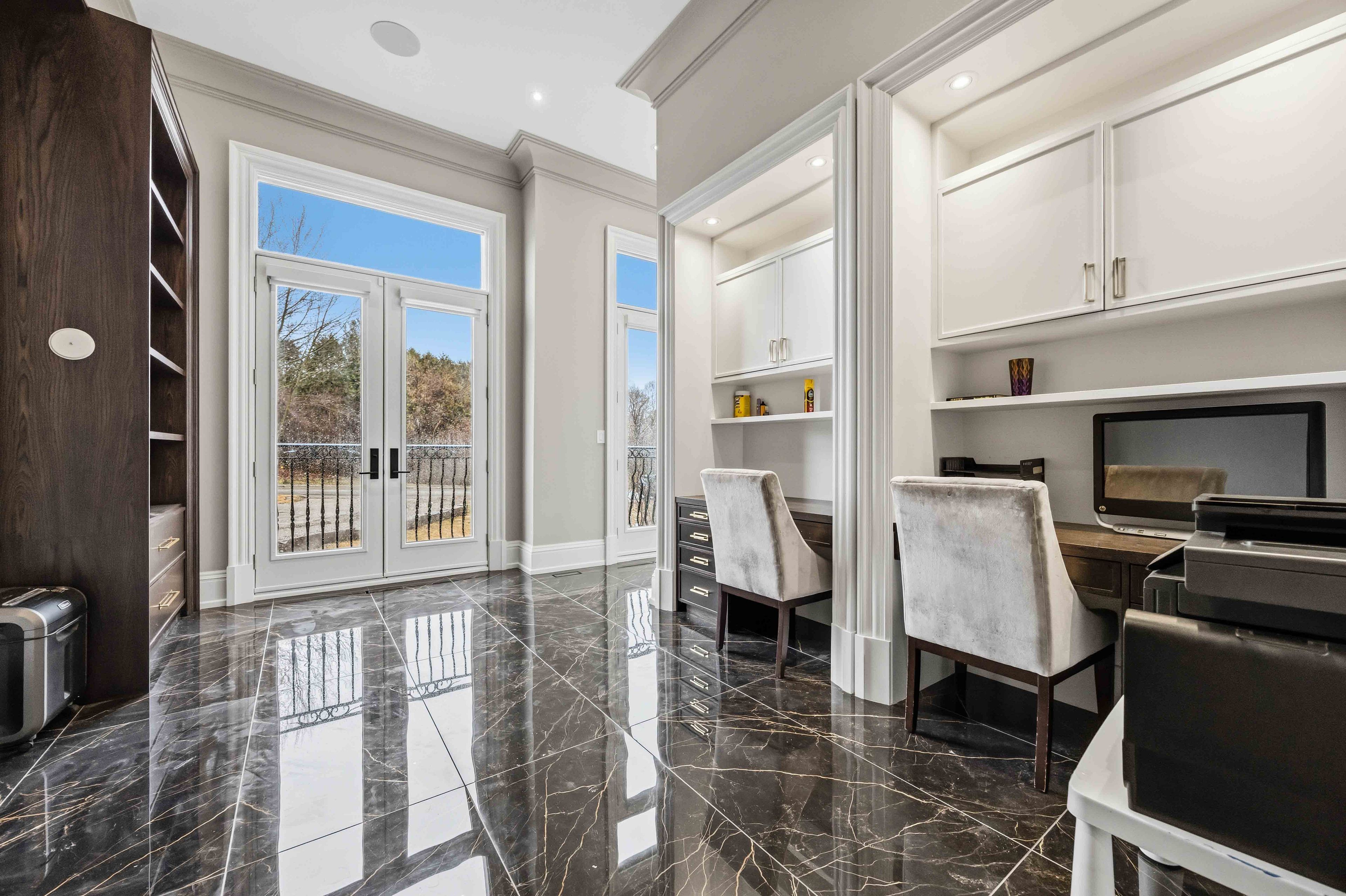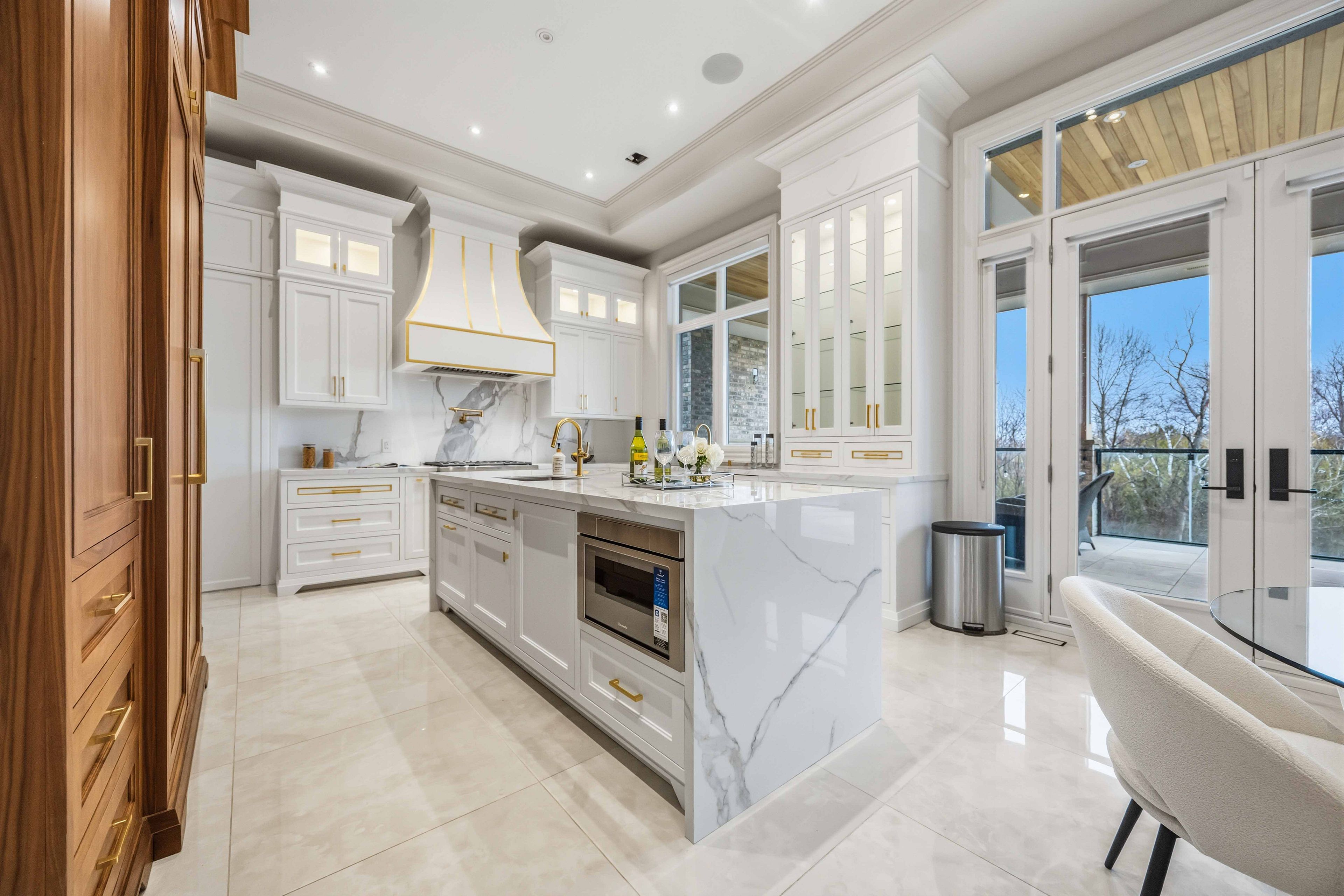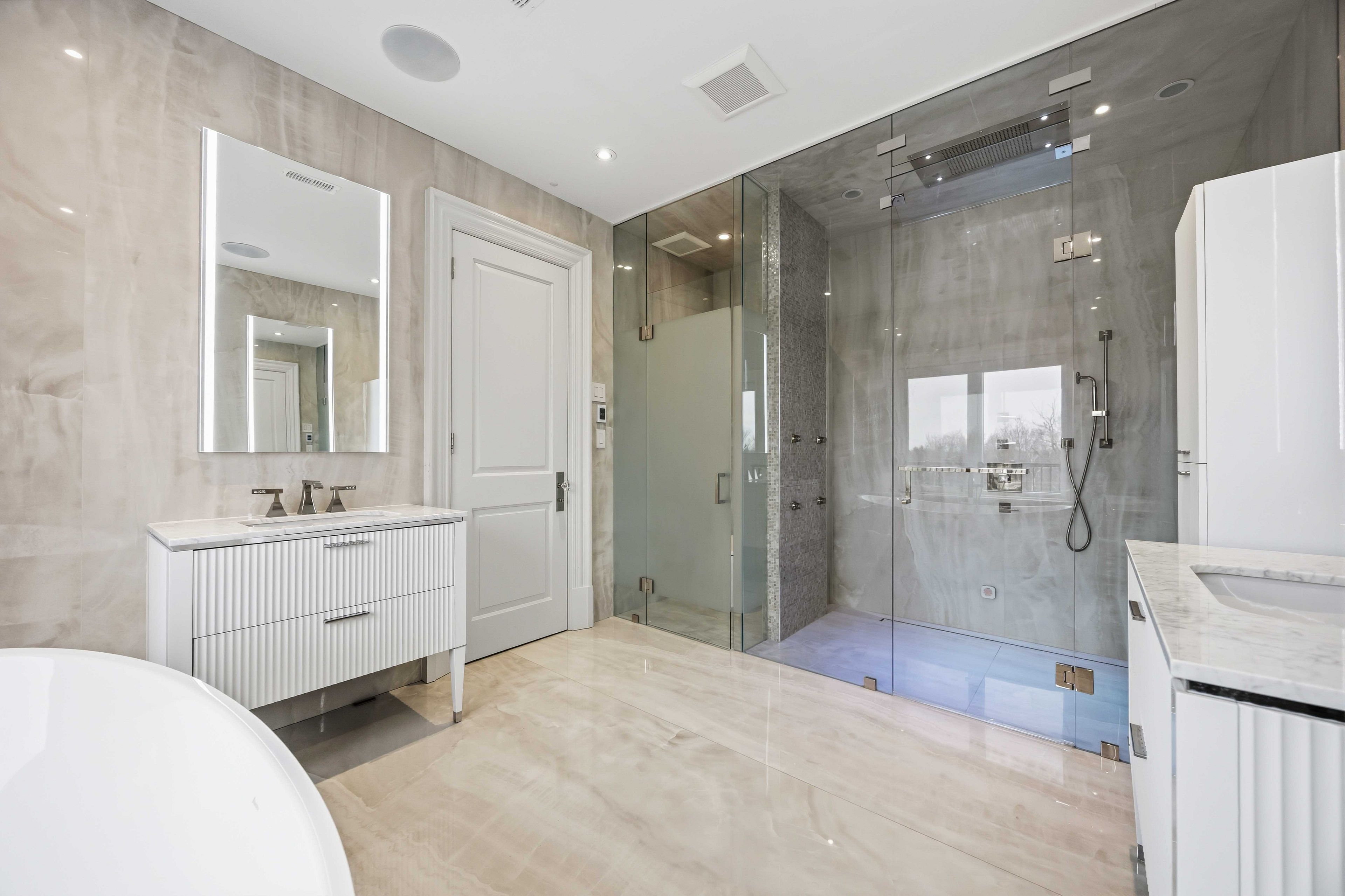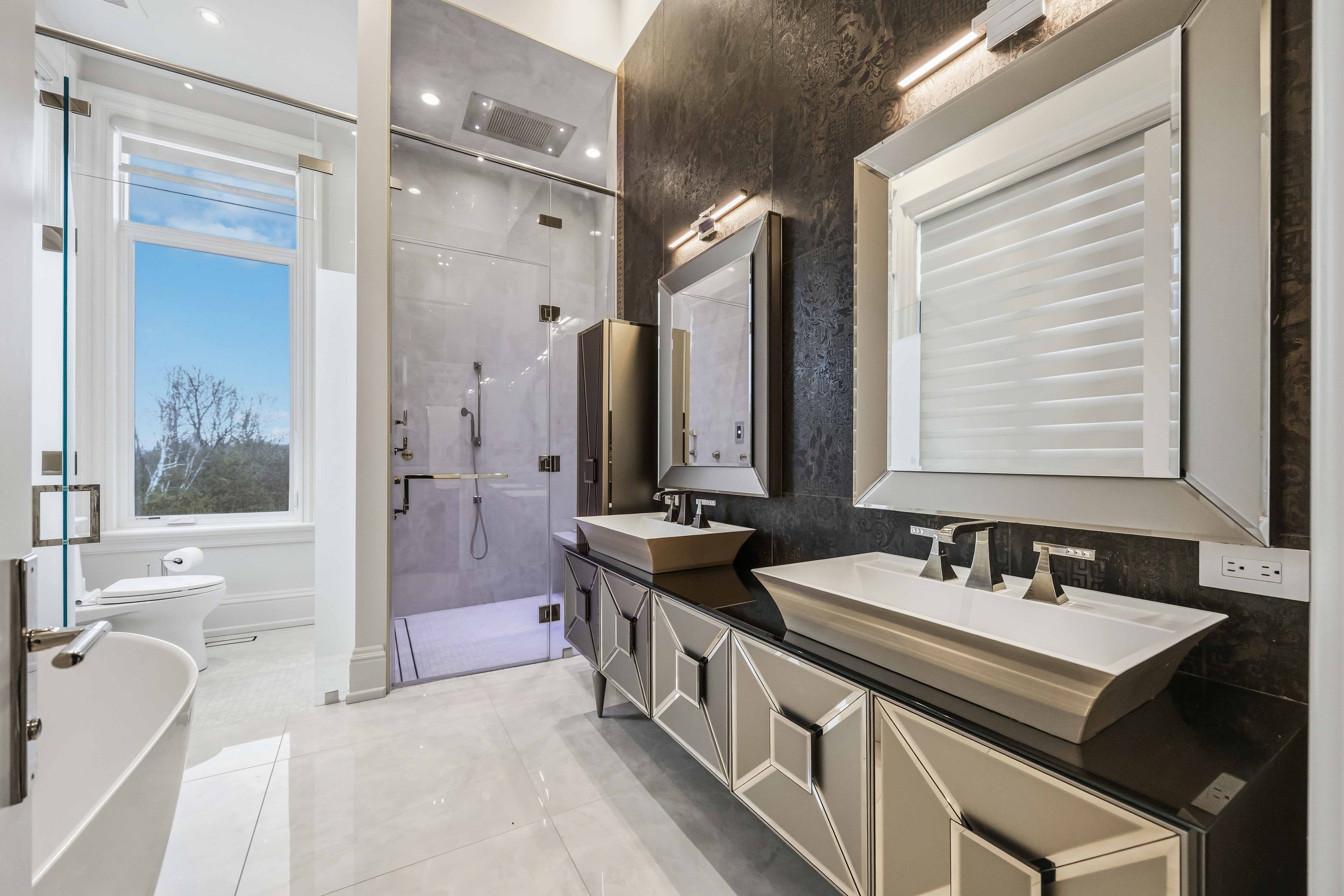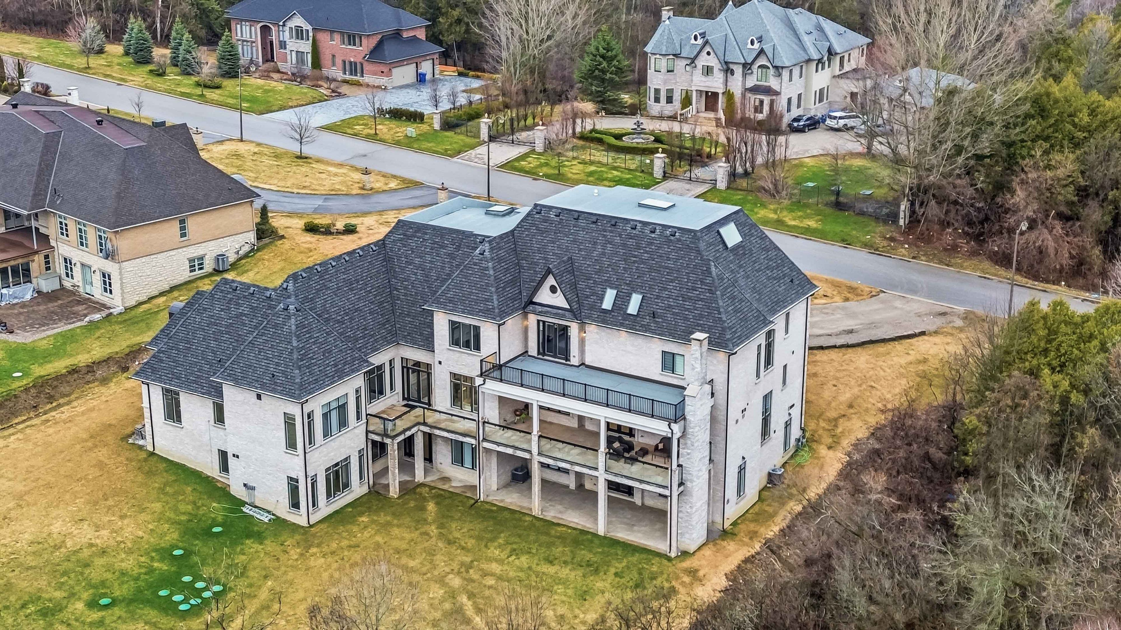 Some homes are built. This one is composed. Bethesda Forest Estates is one of York Region's most distinguished custom estate enclaves - private conservation ravine lots, minutes to Highway 404, forty minutes to downtown Toronto. 76 Cedar Ridge Road sits on two private acres within it: years in the making, complete as of this Spring. The build announces its standard before you step inside. Natural Indiana limestone facade. Belden brick. Copper Roof. Solid Mahogany doors. Sherle Wagner plumbing fittings in every washroom of both residences. The materials were chosen once and held throughout. It is not one home. It is two - each complete, each private, each extraordinary - built for the exceptional family that refuses to ask its members to choose between closeness and independence. The main estate unfolds across four levels. Ceilings climb form twelve to twenty feet. Versace porcelain tile underfoot. A formal sitting room centered on a marble gas fireplace. The kitchen is anchored by a Thermador six-burner range - brand new, never cooked on - with a waterfall island and custom gold-motif hood. And concealed behind seamless cabinetry: a fully equipped prep kitchen with its own stove, fridge, and dishwasher, waiting for the evenings when everyone is here. The lower level refuses to be called a basement: twelve-foot ceilings, radiant-heated tile, marble fireplace, full walkout to the cedar-lined heated loggia with wood-burning fireplace and ravine beyond. The primary suite soars to twenty feet - private balcony, spa ensuite, skylit walk-in. Five ensuite bedrooms. Three-car heated garage with car lift. The second residence earns its plural: two complete apartments - each with its own Pedini Italian Kitchen, fireplace, and spa ensuite. Connected by private elevator. Versace tile and Sherle Wagner fittings throughout. Private entrance. Two-car heated garage. Completely independent. Quietly connected. Immediate Possession.
