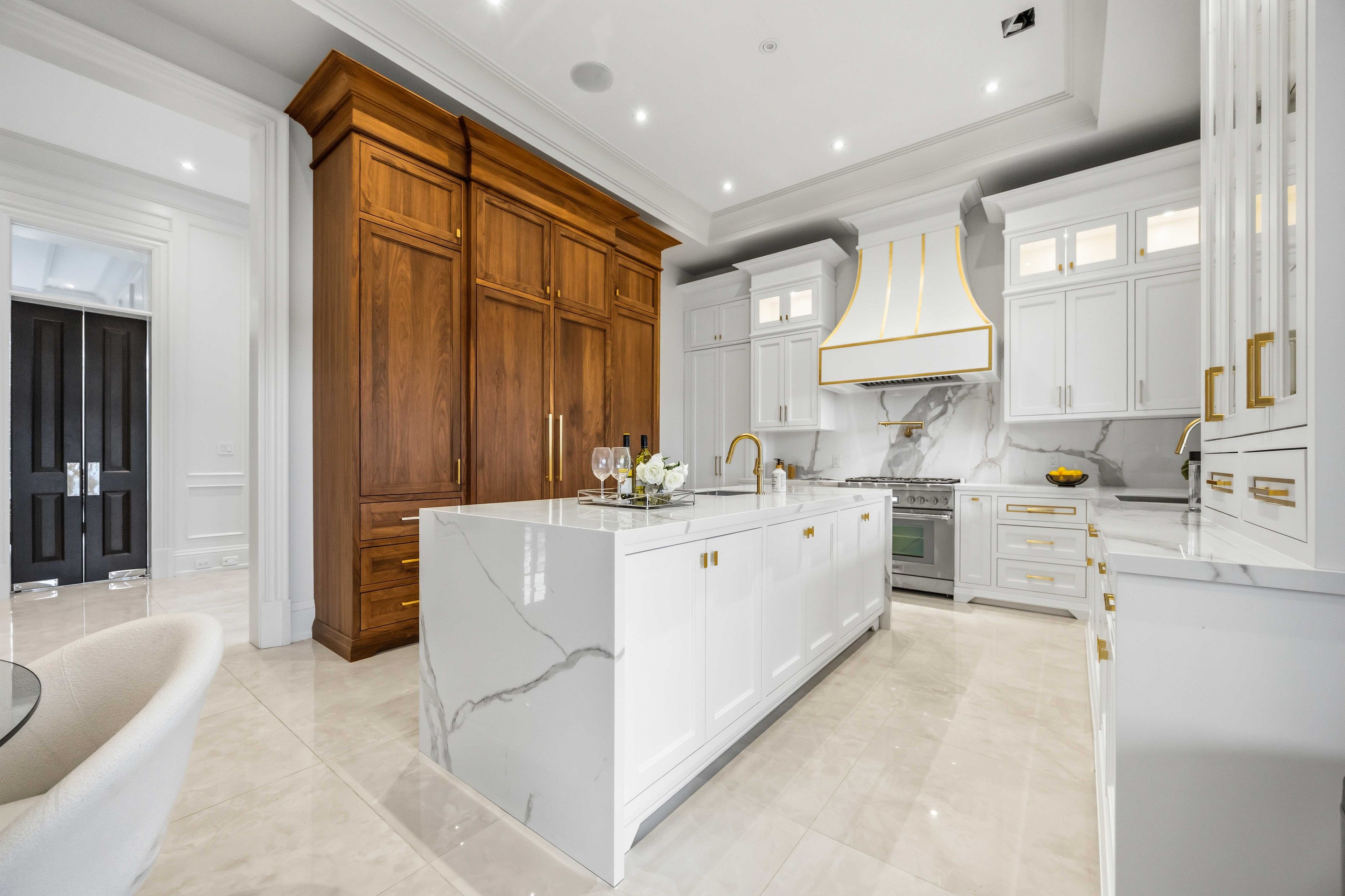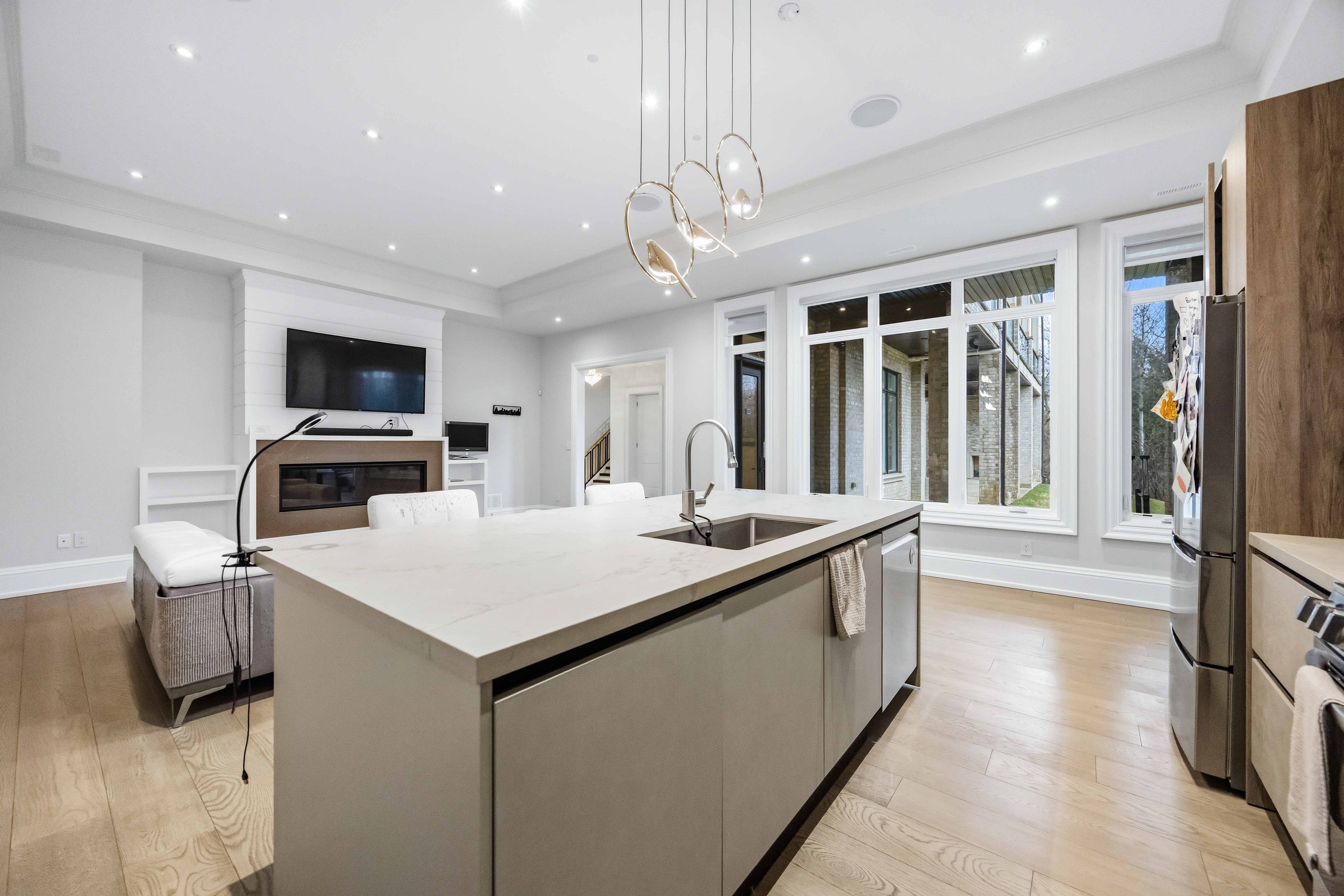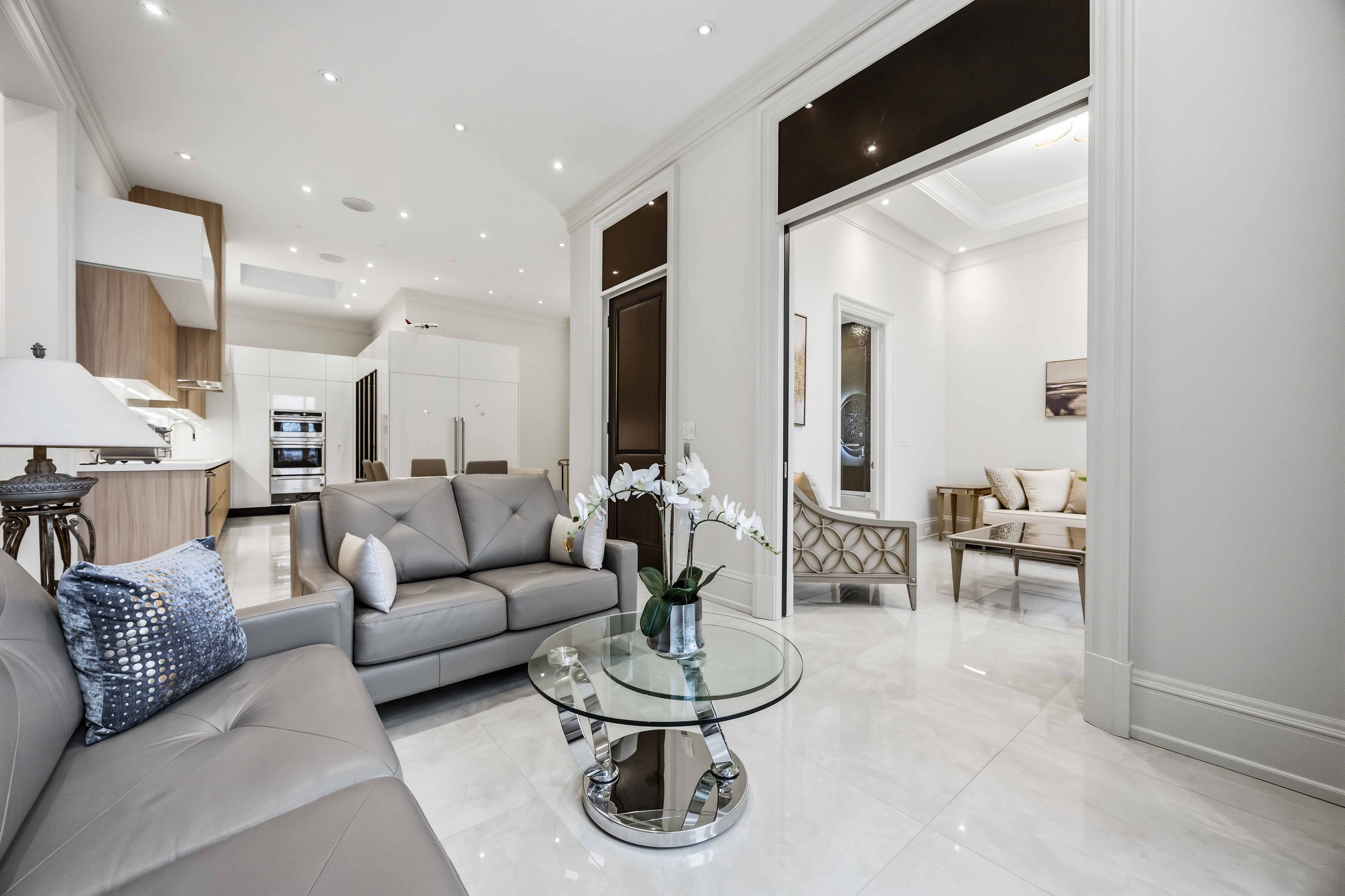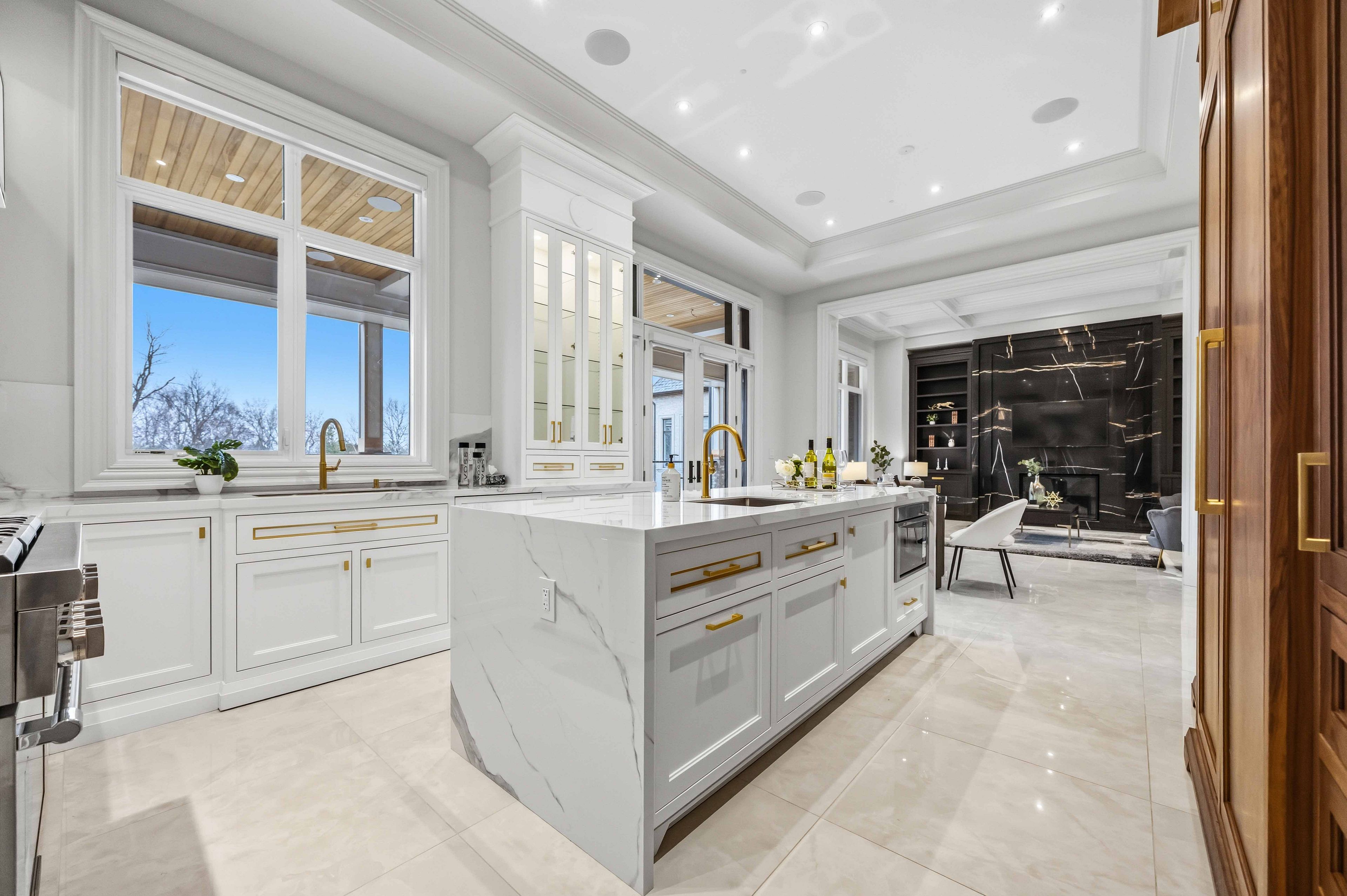 Some homes are built. This one is composed. Bethesda Forest Estates is one of York Region's most distinguished custom estate enclaves - private conservation ravine lots, minutes to Highway 404, forty minutes to downtown Toronto. 76 Cedar Ridge Road sits on two private acres within it: years in the making, complete as of this Spring. The build announces its standard before you step inside. Natural Indiana limestone facade. Belden brick. Copper Roof. Solid Mahogany doors. Sherle Wagner plumbing fittings in every washroom of both residences. The materials were chosen once and held throughout. It is not one home. It is two - each complete, each private, each extraordinary - built for the exceptional family that refuses to ask its members to choose between closeness and independence. The main estate unfolds across four levels. Ceilings climb form twelve to twenty feet. Versace porcelain tile underfoot. A formal sitting room centered on a marble gas fireplace. The kitchen is anchored by a Thermador six-burner range - brand new, never cooked on - with a waterfall island and custom gold-motif hood. And concealed behind seamless cabinetry: a fully equipped prep kitchen with its own stove, fridge, and dishwasher, waiting for the evenings when everyone is here. The lower level refuses to be called a basement: twelve-foot ceilings, radiant-heated tile, marble fireplace, full walkout to the cedar-lined heated loggia with wood-burning fireplace and ravine beyond. The primary suite soars to twenty feet - private balcony, spa ensuite, skylit walk-in. Five ensuite bedrooms. Three-car heated garage with car lift. The second residence earns its plural: two complete apartments - each with its own Pedini Italian Kitchen, fireplace, and spa ensuite. Connected by private elevator. Versace tile and Sherle Wagner fittings throughout. Private entrance. Two-car heated garage. Completely independent. Quietly connected. Immediate Possession.