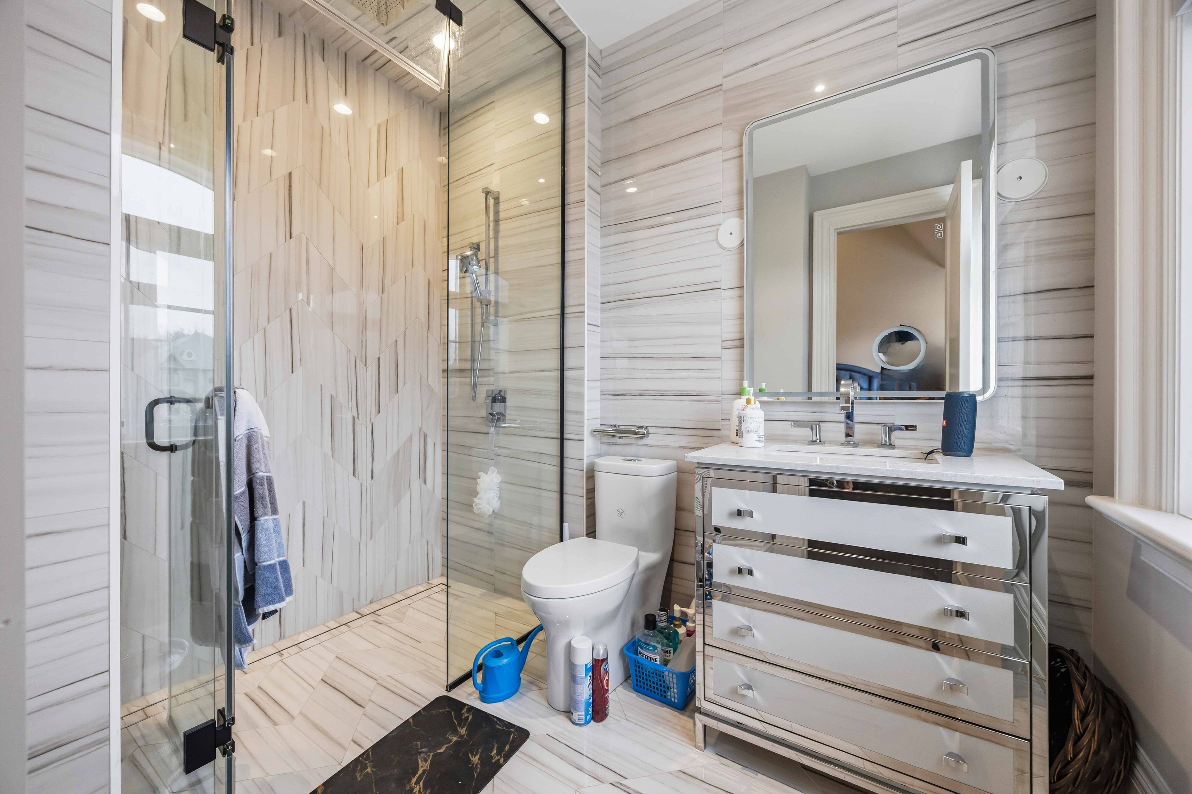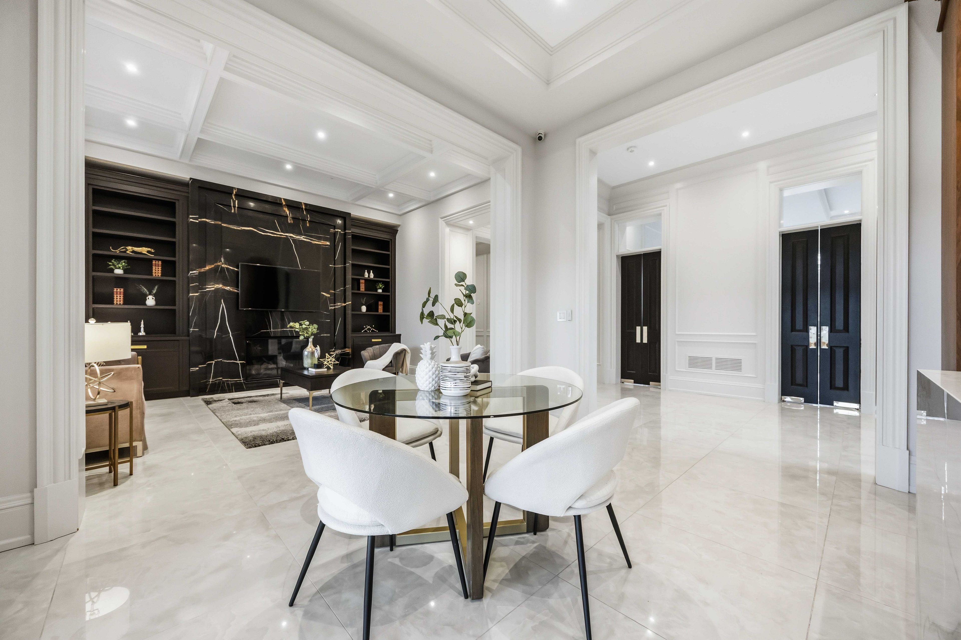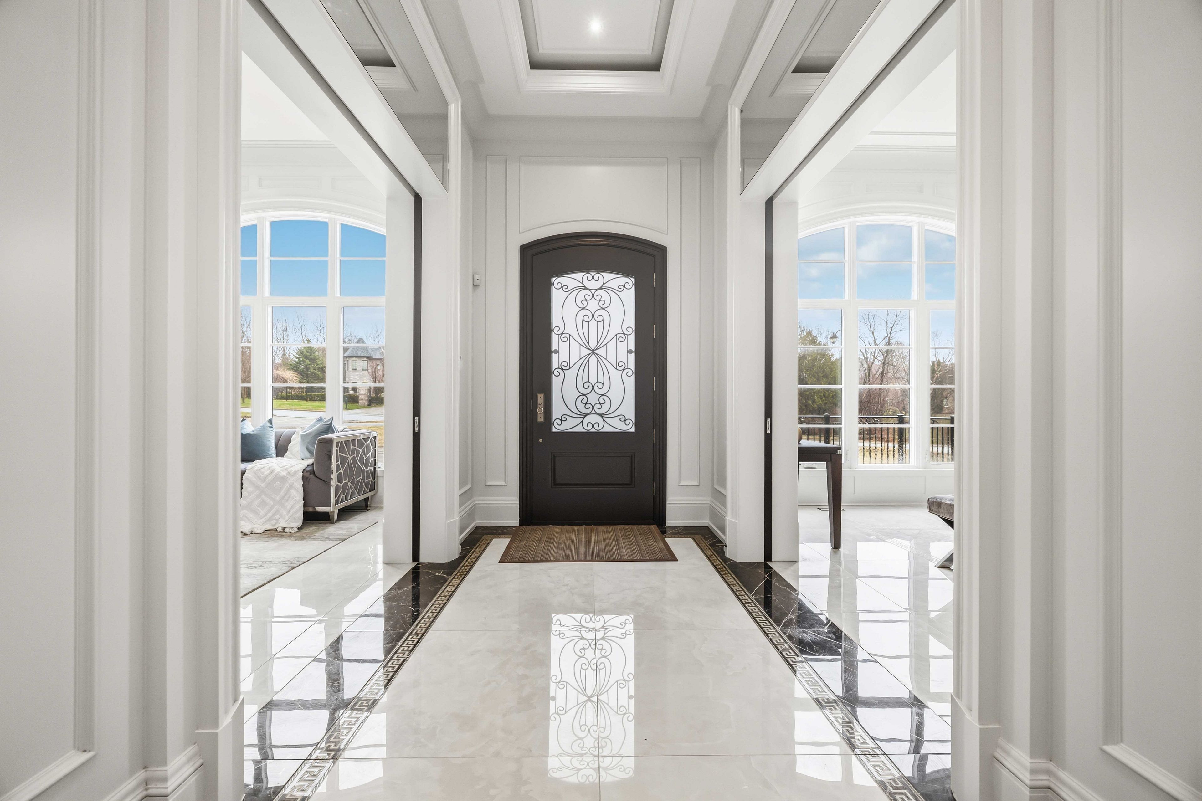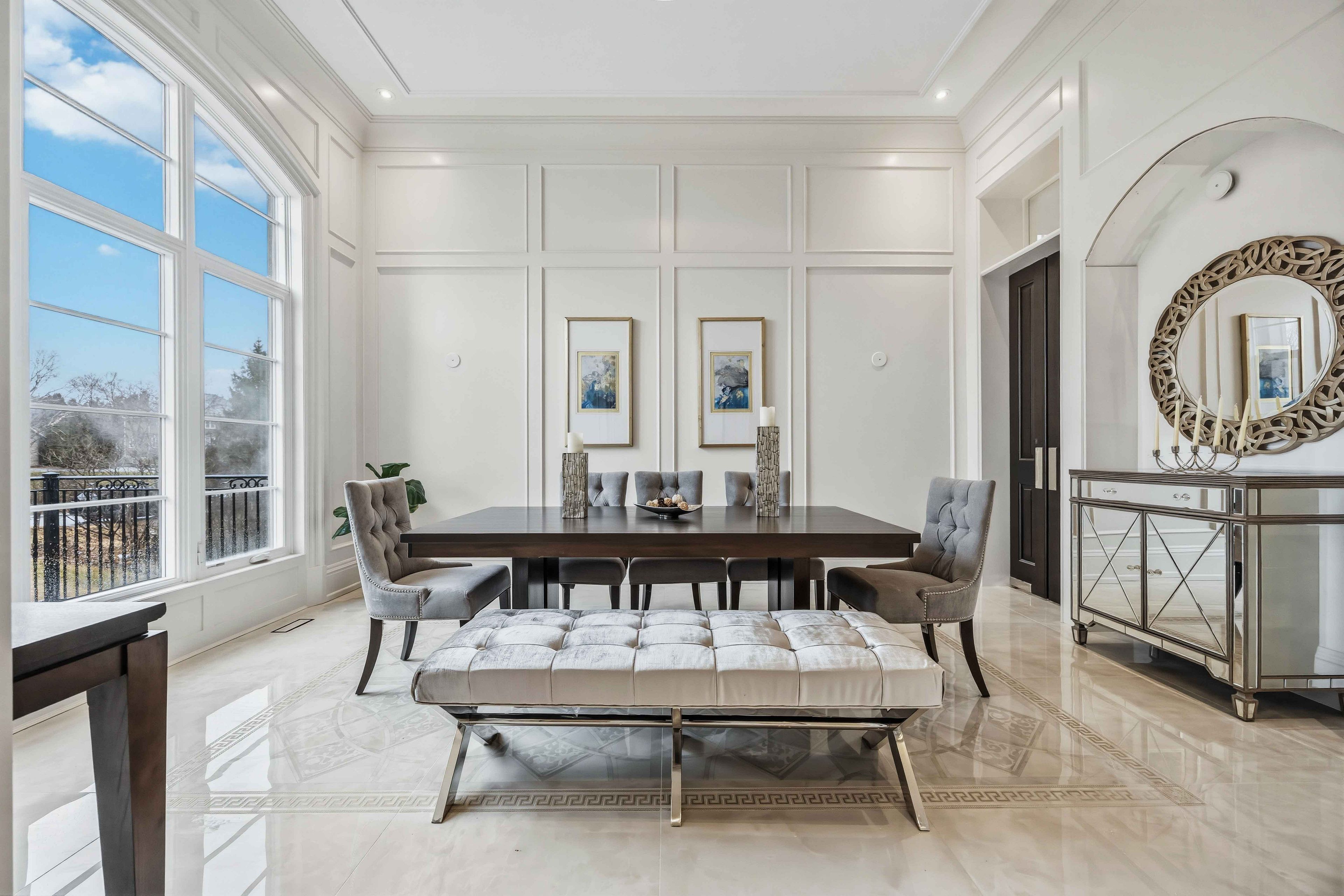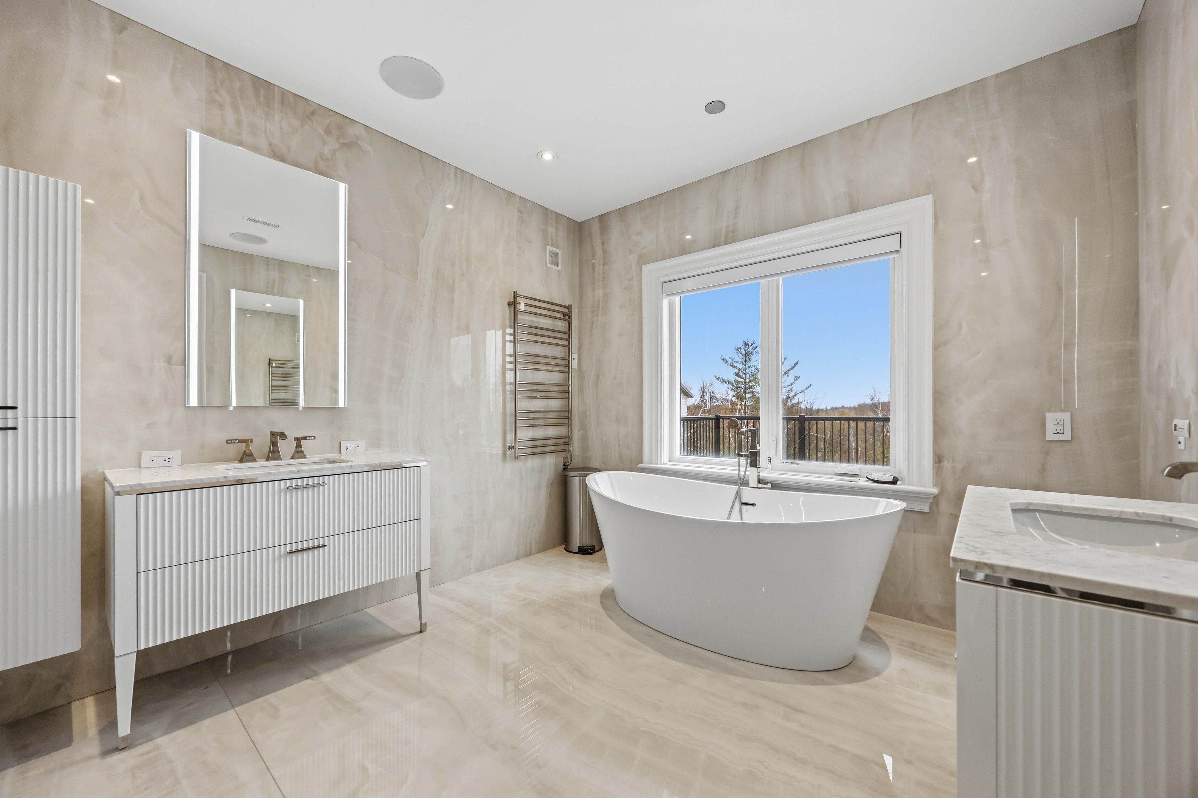 Some homes are built. This one is composed. Bethesda Forest Estates is one of York Region's most distinguished custom estate enclaves - private conservation ravine lots, minutes to Highway 404, forty minutes to downtown Toronto. 76 Cedar Ridge Road sits on two private acres within it: years in the making, complete as of this Spring. The build announces its standard before you step inside. Natural Indiana limestone facade. Belden brick. Copper Roof. Solid Mahogany doors. Sherle Wagner plumbing fittings in every washroom of both residences. The materials were chosen once and held throughout. It is not one home. It is two - each complete, each private, each extraordinary - built for the exceptional family that refuses to ask its members to choose between closeness and independence. The main estate unfolds across four levels. Ceilings climb form twelve to twenty feet. Versace porcelain tile underfoot. A formal sitting room centered on a marble gas fireplace. The kitchen is anchored by a Thermador six-burner range - brand new, never cooked on - with a waterfall island and custom gold-motif hood. And concealed behind seamless cabinetry: a fully equipped prep kitchen with its own stove, fridge, and dishwasher, waiting for the evenings when everyone is here. The lower level refuses to be called a basement: twelve-foot ceilings, radiant-heated tile, marble fireplace, full walkout to the cedar-lined heated loggia with wood-burning fireplace and ravine beyond. The primary suite soars to twenty feet - private balcony, spa ensuite, skylit walk-in. Five ensuite bedrooms. Three-car heated garage with car lift. The second residence earns its plural: two complete apartments - each with its own Pedini Italian Kitchen, fireplace, and spa ensuite. Connected by private elevator. Versace tile and Sherle Wagner fittings throughout. Private entrance. Two-car heated garage. Completely independent. Quietly connected. Immediate Possession.