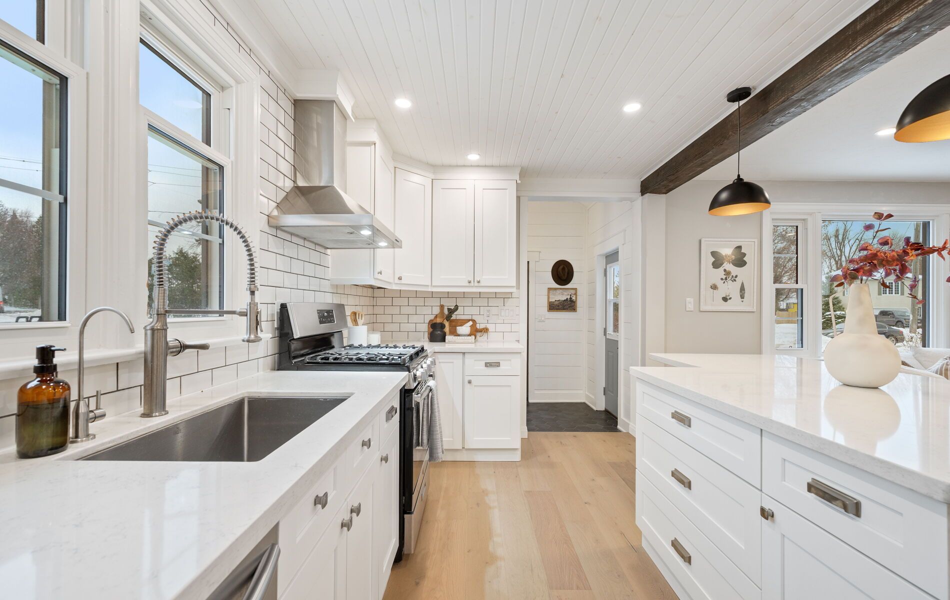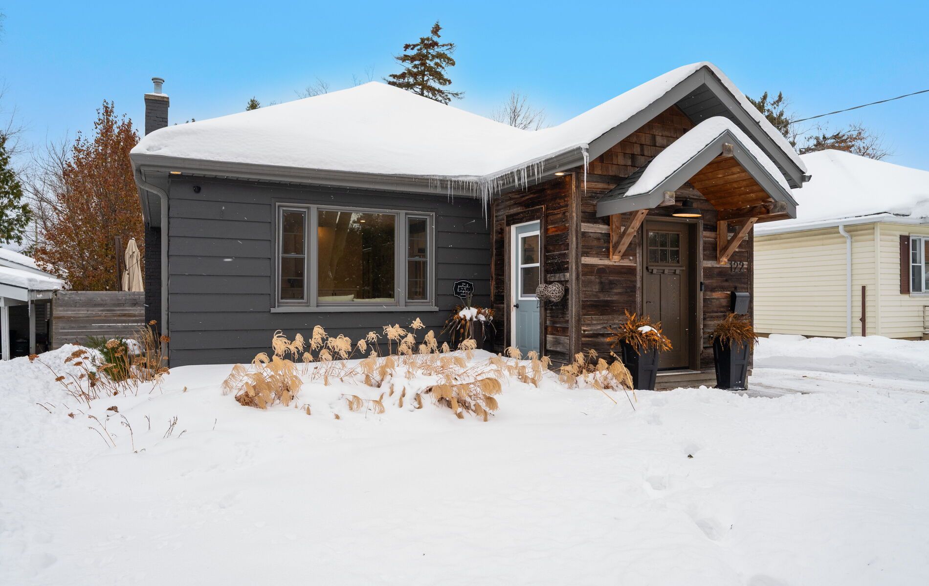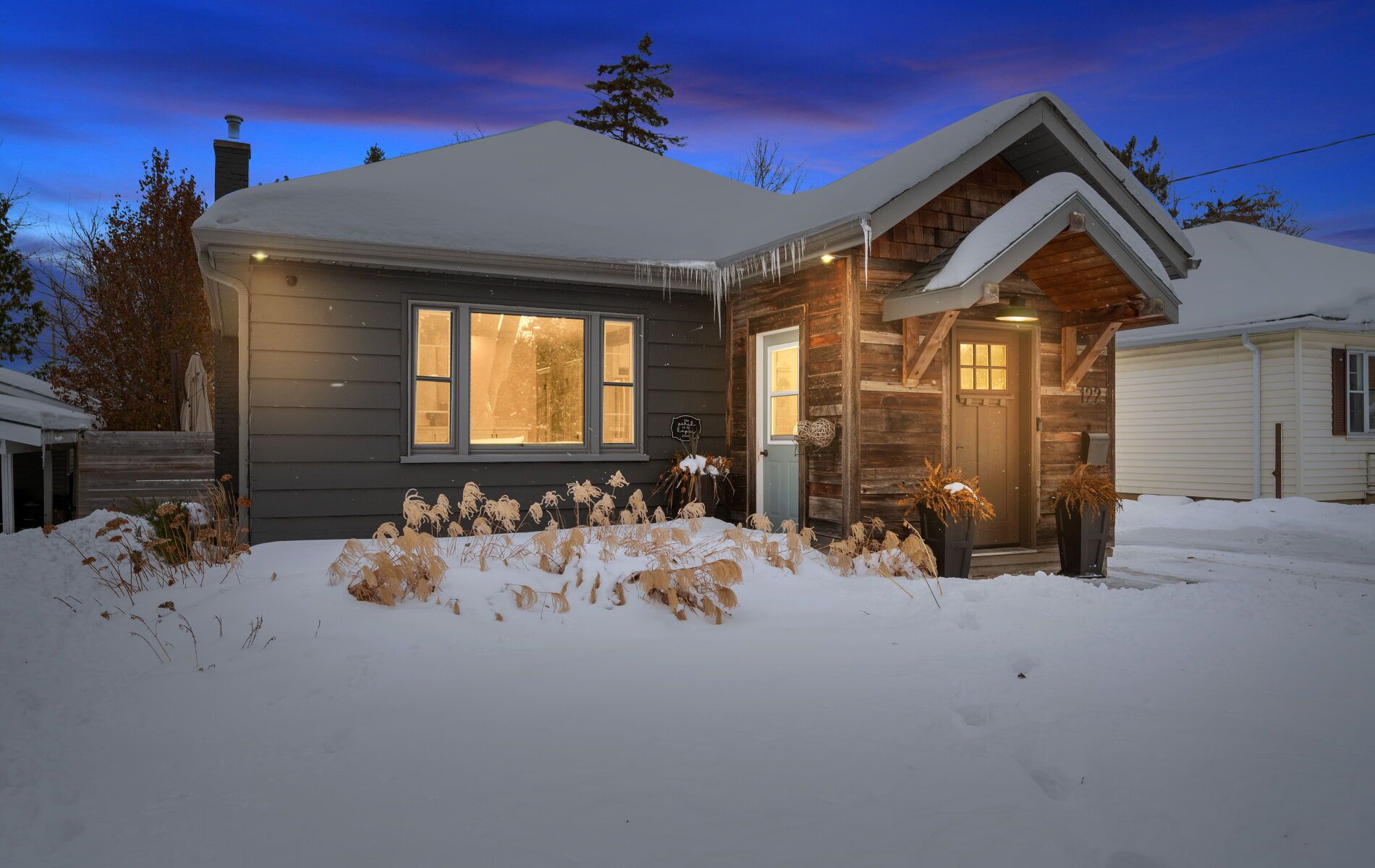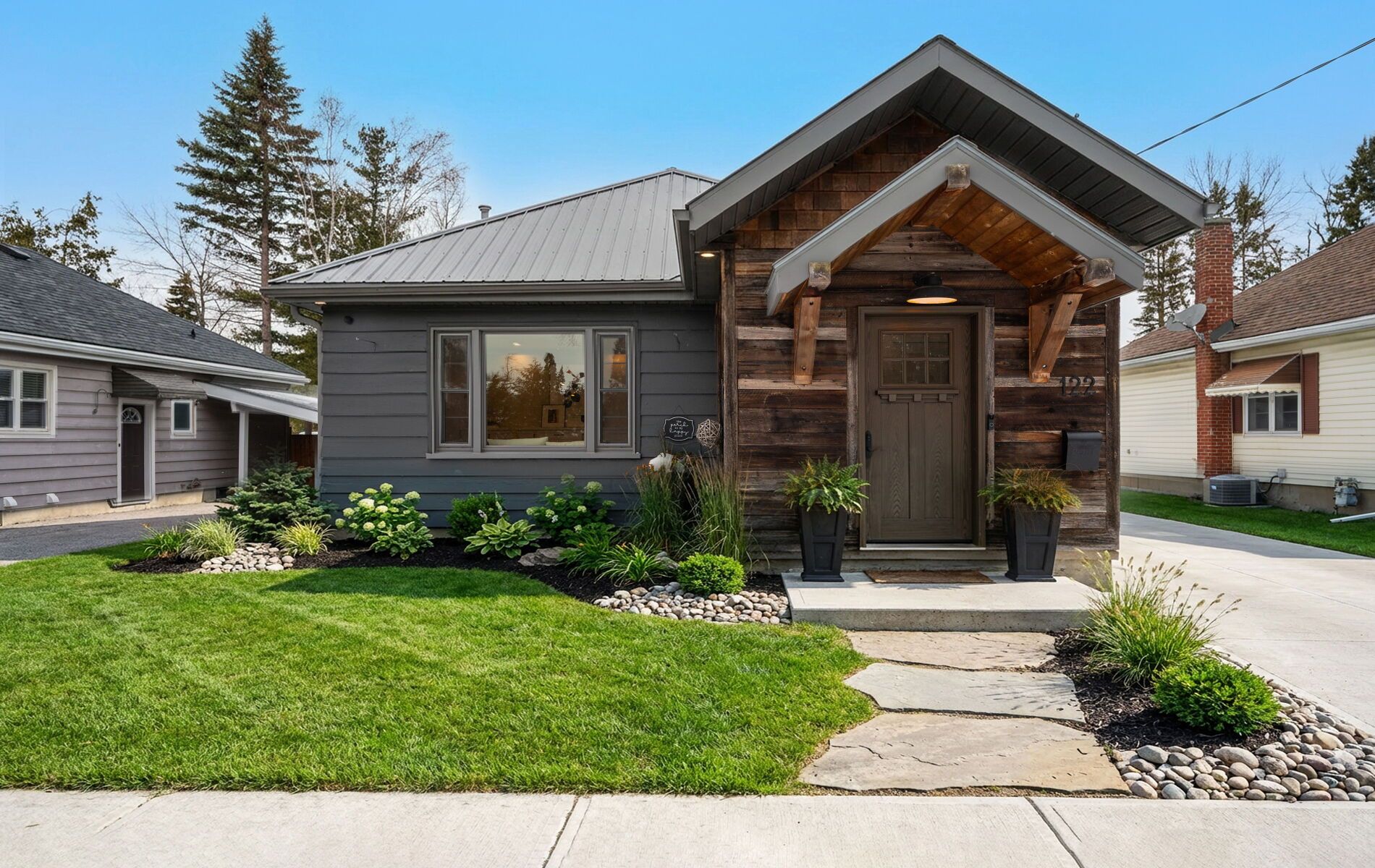Nestled in one of Barrie's most desirable North East pockets, this beautifully renovated bungalow offers a rare blend of modern comfort, timeless charm, and a location families fall in love with. Known for top-rated schools, mature trees, quiet streets, and friendly neighbours, this neighbourhood provides the perfect balance of community and convenience - with quick access to the hospital, Georgian College, downtown, waterfront restaurants, and nightlife. Set on a spacious, mature lot, the exterior features a detached garage, professional landscaping, and a large cedar deck built over a reinforced concrete pad ready for a future hot tub. The private, fenced backyard is a true retreat, highlighted by stunning pyramidal flowering pear trees that create a beautiful seasonal backdrop. Inside, wide-plank engineered hardwood floors carry through the open-concept main level. A chef's kitchen with an oversized island flows seamlessly into the living space, made possible by a striking 10x10 Fir beam. The bathrooms were professionally renovated down to the studs with new insulation, mold-resistant drywall, and Schlüter waterproofing. The primary bedroom serves as a quiet sanctuary with a custom walk-in closet and spa-inspired ensuite. A front foyer and custom mudroom add functionality, while the professionally finished basement extends the home with two additional bedrooms, a generous rec room, and a luxurious bathroom. Mechanical upgrades include a brand-new water heater, updated ductwork, 100-amp service with electrical improvements, and a dedicated 240V line for a future hot tub. Exterior improvements include newer shingles, all windows replaced within 10 years, updated soffits, fascia, troughs, and a gas line for a stove. Modern trims, baseboards, doors, and LED lighting with dimmers complete the warm and welcoming interior. This home offers a rare combination of thoughtful upgrades, a desirable neighbourhood, and an exceptional lot-ready for its next owners to enjoy.