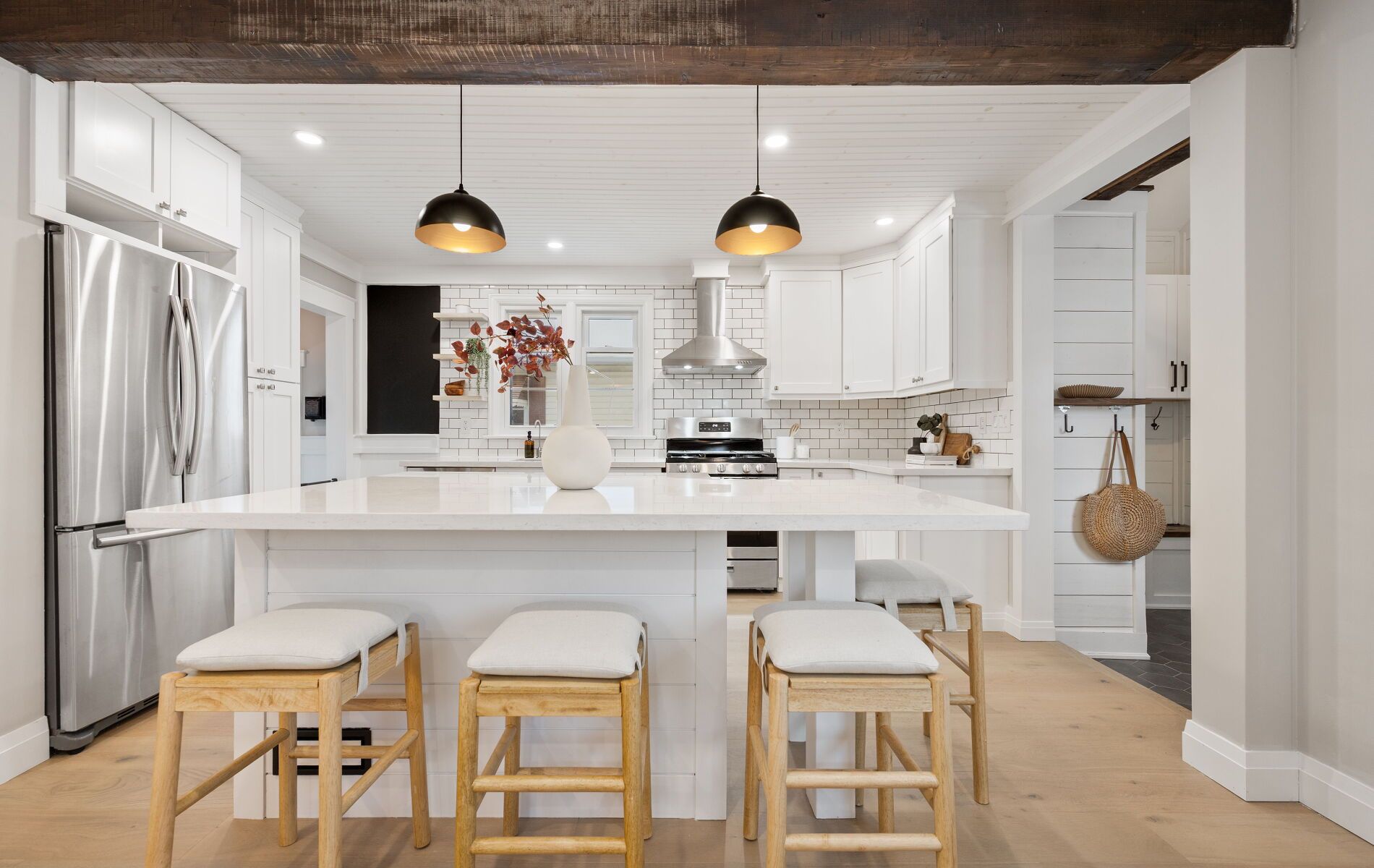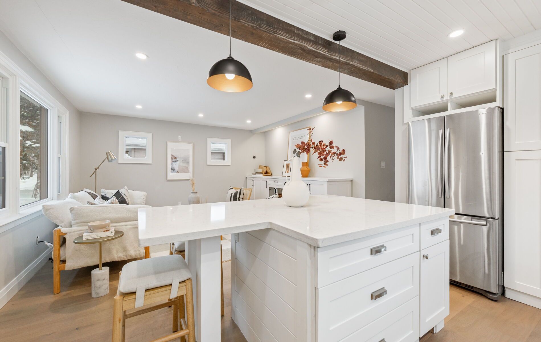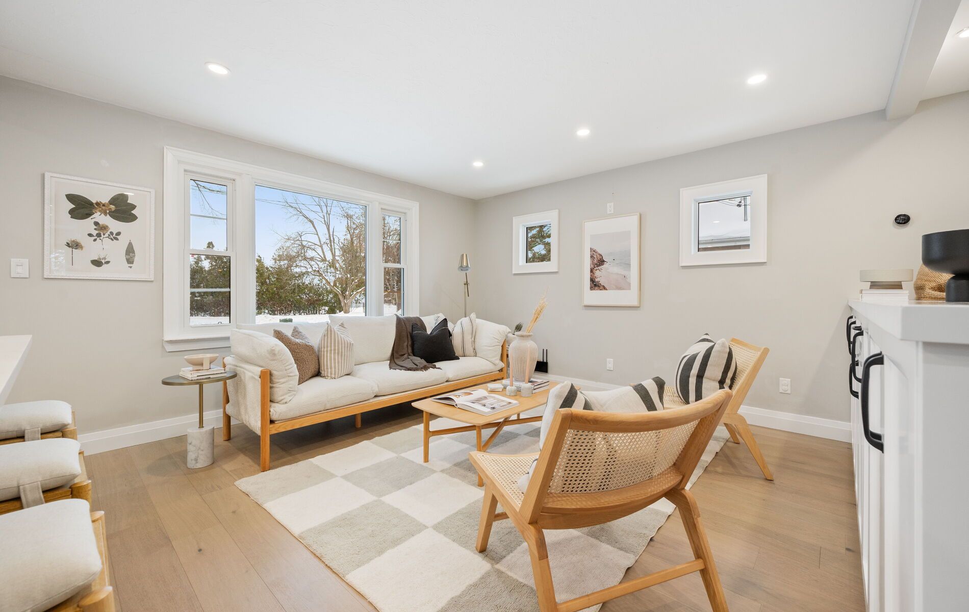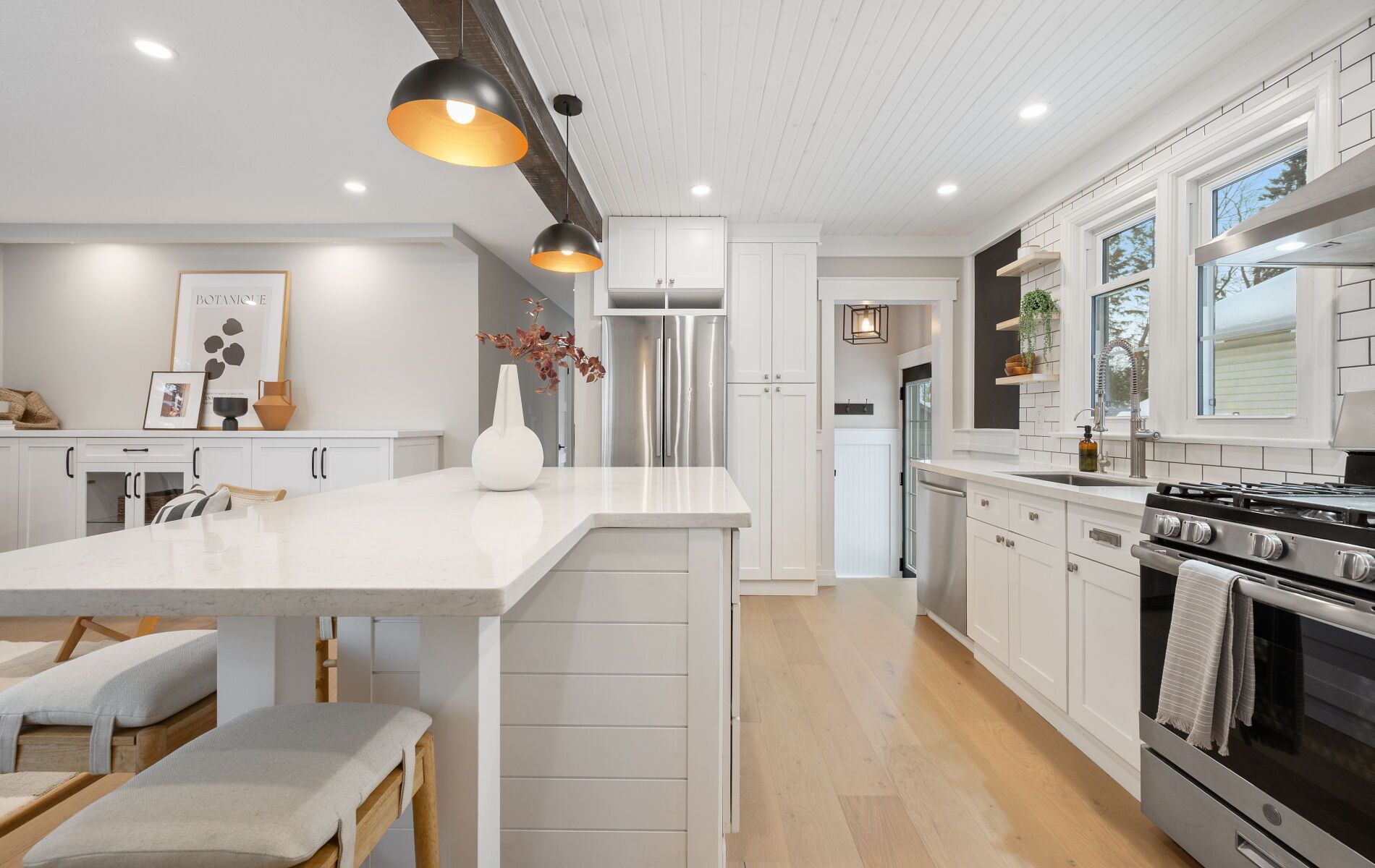 Nestled in one of Barrie's most desirable North East pockets, this beautifully renovated bungalow offers a rare blend of modern comfort, timeless charm, and a location families fall in love with. Known for top-rated schools, mature trees, quiet streets, and friendly neighbours, this neighbourhood provides the perfect balance of community and convenience - with quick access to the hospital, Georgian College, downtown, waterfront restaurants, and nightlife. Set on a spacious, mature lot, the exterior features a detached garage, professional landscaping, and a large cedar deck built over a reinforced concrete pad ready for a future hot tub. The private, fenced backyard is a true retreat, highlighted by stunning pyramidal flowering pear trees that create a beautiful seasonal backdrop. Inside, wide-plank engineered hardwood floors carry through the open-concept main level. A chef's kitchen with an oversized island flows seamlessly into the living space, made possible by a striking 10x10 Fir beam. The bathrooms were professionally renovated down to the studs with new insulation, mold-resistant drywall, and Schlüter waterproofing. The primary bedroom serves as a quiet sanctuary with a custom walk-in closet and spa-inspired ensuite. A front foyer and custom mudroom add functionality, while the professionally finished basement extends the home with two additional bedrooms, a generous rec room, and a luxurious bathroom. Mechanical upgrades include a brand-new water heater, updated ductwork, 100-amp service with electrical improvements, and a dedicated 240V line for a future hot tub. Exterior improvements include newer shingles, all windows replaced within 10 years, updated soffits, fascia, troughs, and a gas line for a stove. Modern trims, baseboards, doors, and LED lighting with dimmers complete the warm and welcoming interior. This home offers a rare combination of thoughtful upgrades, a desirable neighbourhood, and an exceptional lot-ready for its next owners to enjoy.