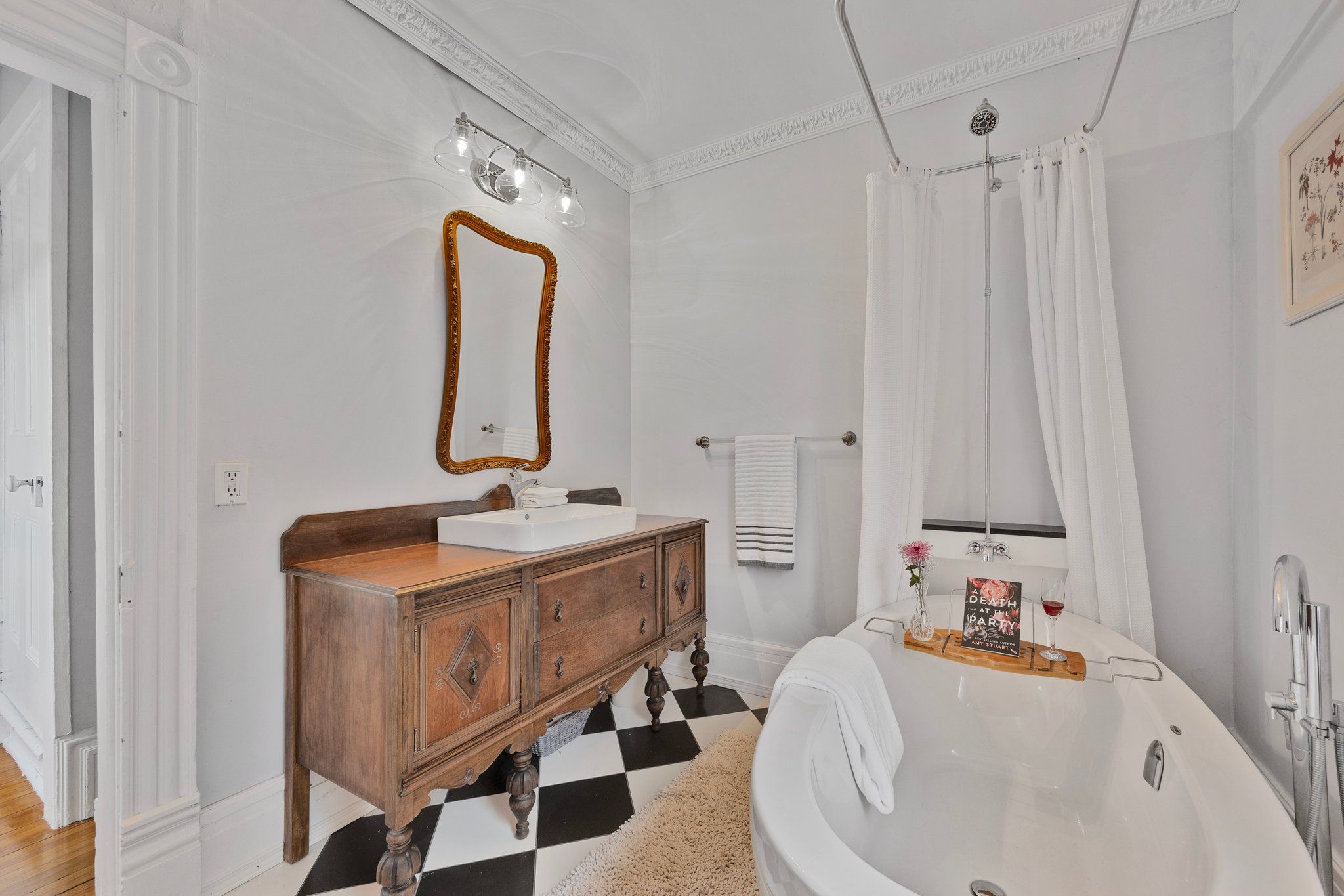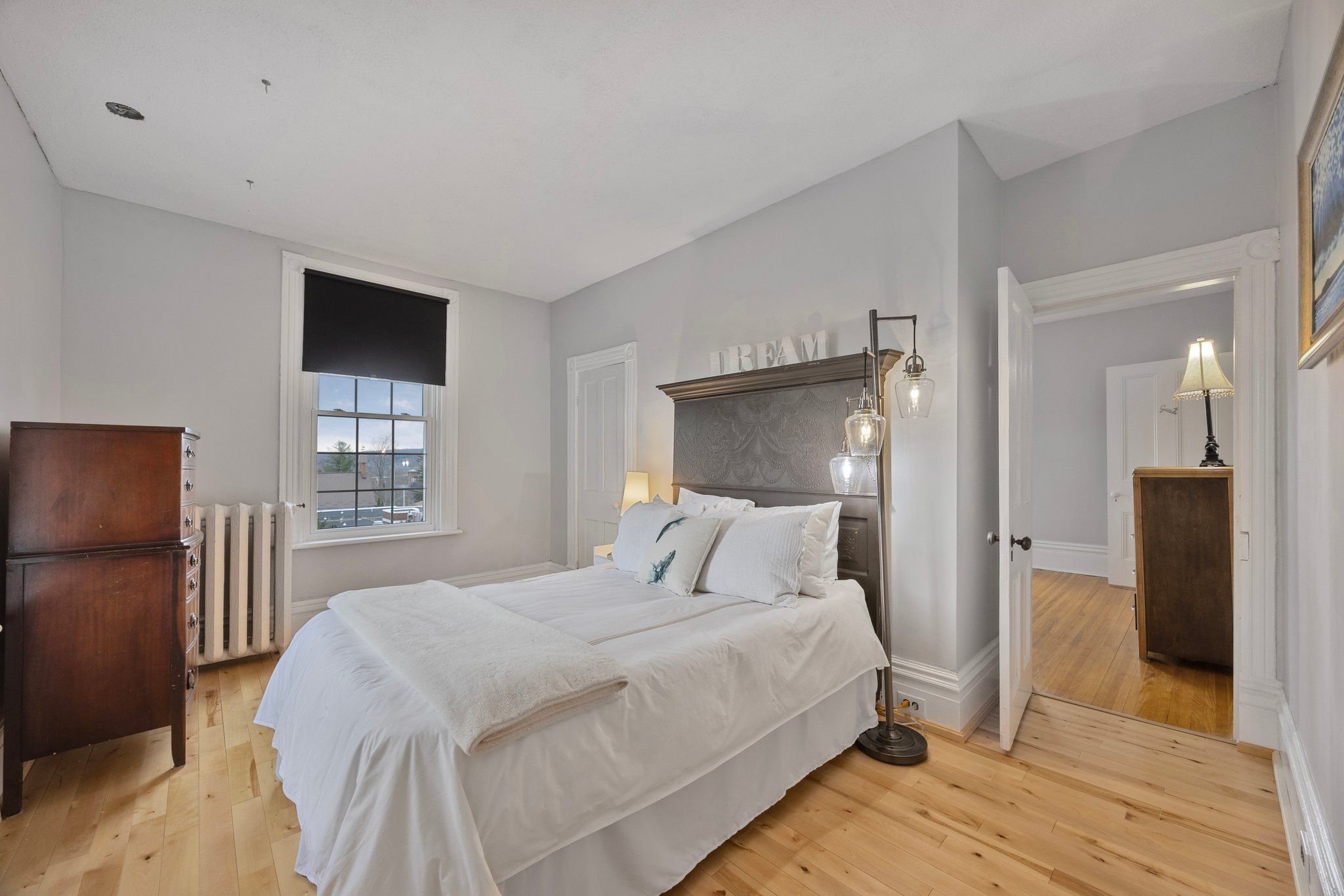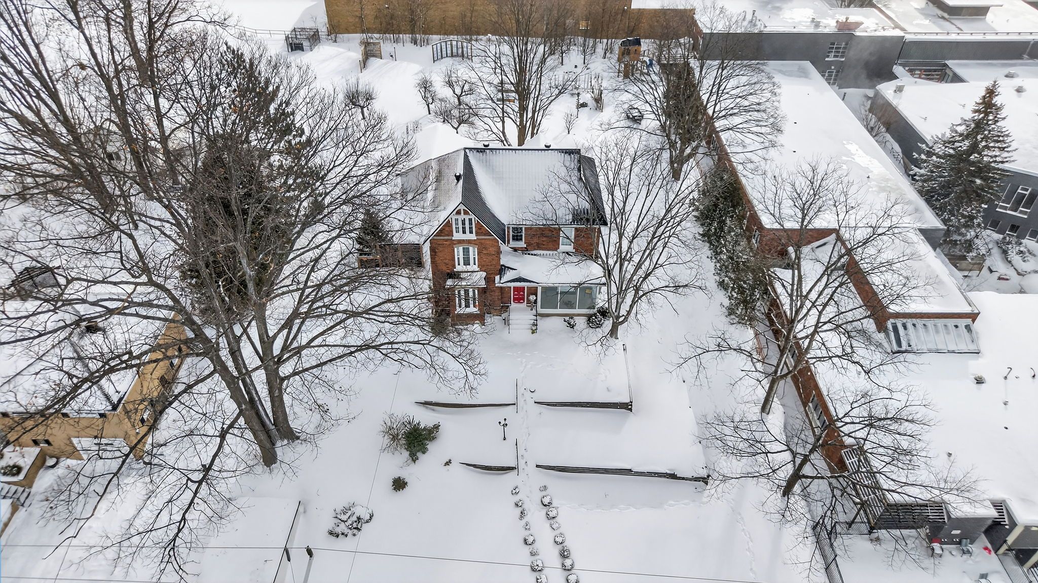 Perched on a hilltop in the heart of Penetanguishene, 26 Robert Street East is an exquisitely restored Edwardian century home offering timeless elegance, modern comfort, and exceptional privacy. Set on an impressive 118 ft x 224 ft lot, this rare property blends historic charm with thoughtful, high-quality updates.Inside, the home showcases over a century of craftsmanship with soaring ceilings, reclaimed hardwood floors, and exposed brick accents throughout. The updated kitchen features dramatic ceiling height, a walkout to a sun-filled deck, and seamless access to a walk-in pantry and laundry room-designed for both refined living and effortless entertaining. A formal dining room with a decorative fireplace and large windows creates an inviting atmosphere, while the cozy family room opens to a bright sunroom with elevated views across town. The upper level offers three generously sized bedrooms and two beautifully updated 3-piece bathrooms. A finished attic provides over 700 sq ft of flexible living space, ideal for a home office, studio, or private retreat. Outdoors, the expansive grounds offer room to garden, entertain, or simply unwind, complemented by two detached garages perfect for storage, workshop space, or creative pursuits. Distinctive restoration details, including a custom fence crafted from the home's original storm windows, reflect the care and vision behind every element. Significant updates include a new roof, all new windows, and fully modernized electrical and plumbing systems, ensuring modern peace of mind within a historic setting. Located just minutes from Georgian Bay, waterfront parks, trails, and downtown Penetanguishene, this exceptional residence offers a rare opportunity to own a beautifully restored piece of Ontario's architectural heritage.