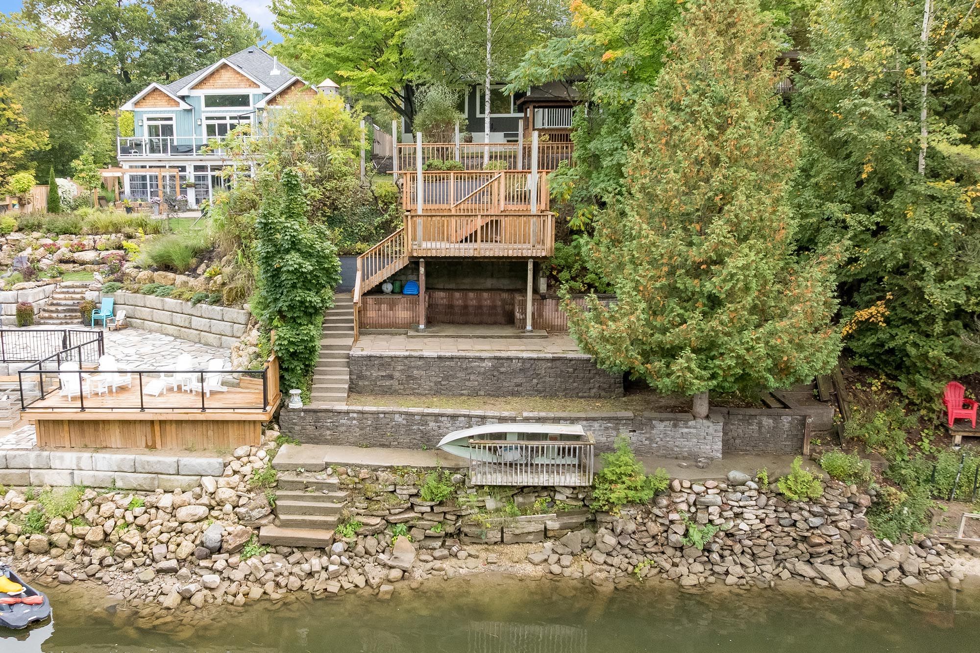 Top 5 Reasons You Will Love This Home: 1) Enjoy a generous 50'x230' lot with over 50' of waterfront, spacious backyard areas perfect for entertaining, relaxing, or heading down the stairs to kayak, boat, fish, or simply take in the river views 2) This detached 2-storey home with a finished basement features a welcoming covered front deck, main level laundry, a bright bedroom with walkout to the backyard, and a renovated4-piece bathroom with a soaker tub and separate shower for added comfort 3) The kitchen includes stainless-steel appliances, a pantry, and dining space, while the living room offers a cozy wood fireplace with a stone surround and oversized windows showcasing peaceful backyard and river views; upstairs, the primary bedroom has a walkout to a large balcony overlooking the water, plus a third bedroom and another 4-piece bathroom, great for guests or extended family 4) Expansive basement hosting a large family room, a recreation area with rough-in for a kitchen or wet bar, a fourth bedroom, another full bathroom, and an oversized cold room ideal for extra storage 5) Set on a quiet street ending in a cul-de-sac, this home offers peace and privacy close to schools, shops, golf, ski hills, and the sandy beaches of Georgian Bay, while still being a convenient commute to Barrie and the GTA. 1,743 above grade sq.ft. plus a finished basement. *Please note some images have been virtually staged to show the potential of the home.