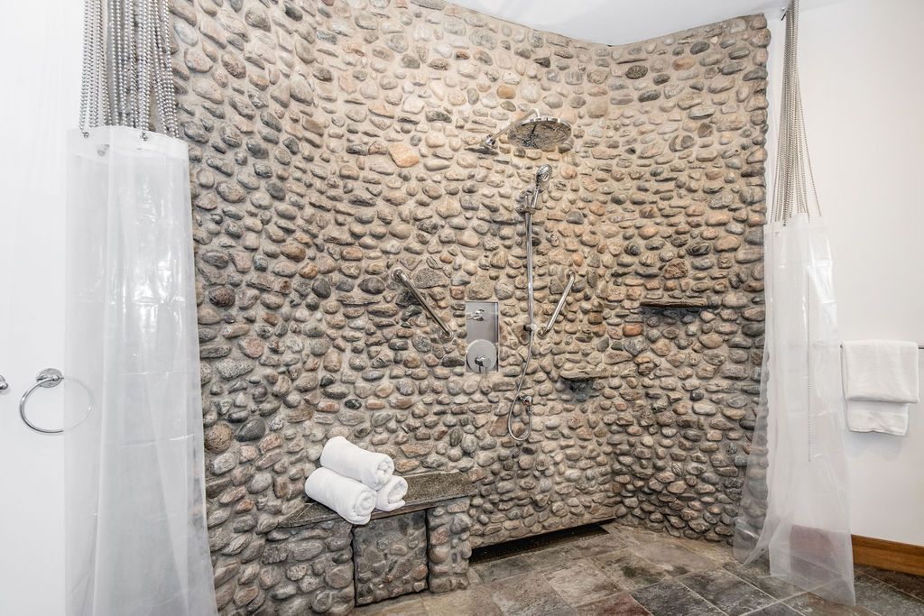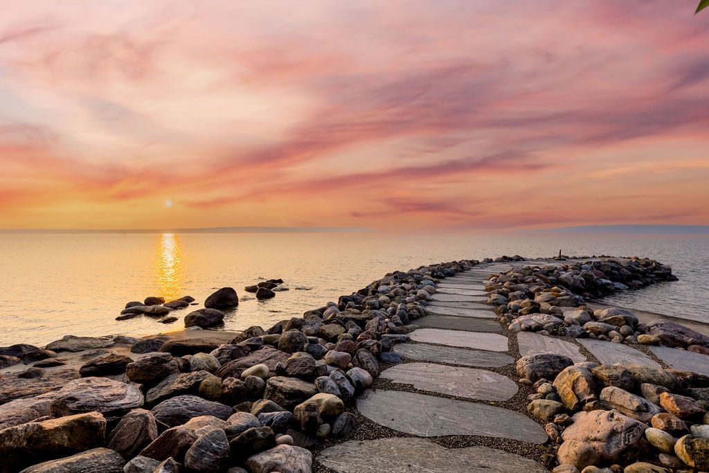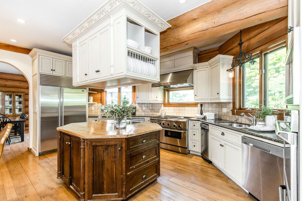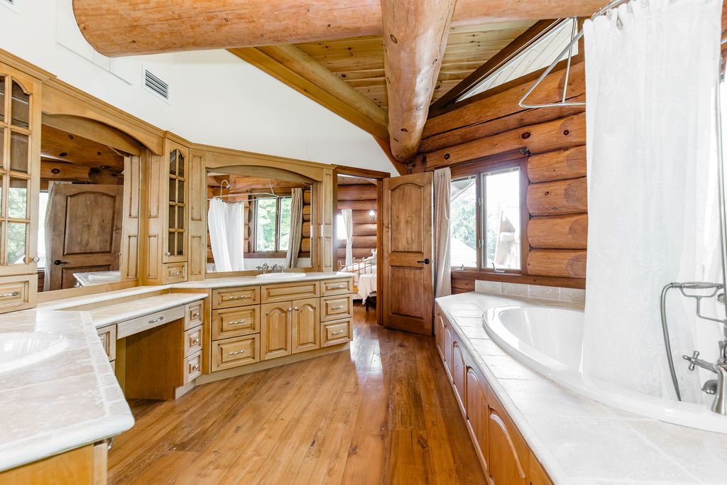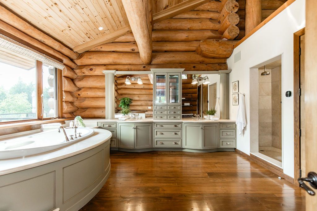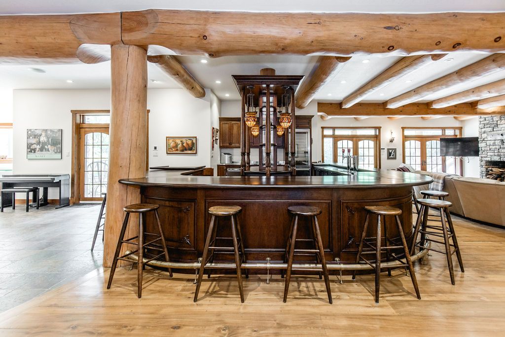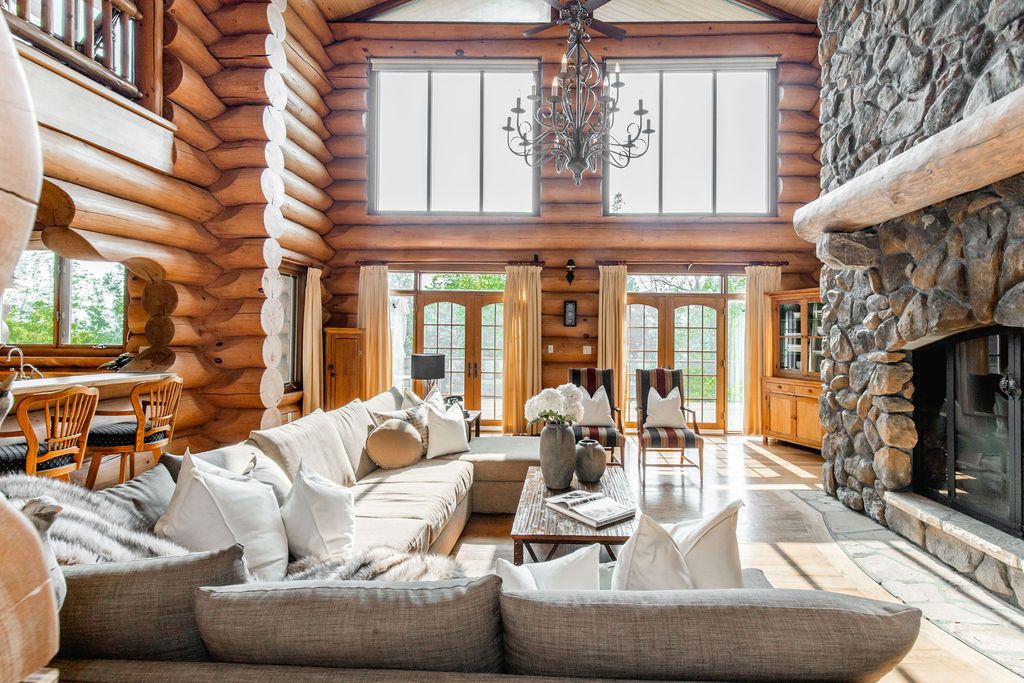 Welcome to one of Canada's most iconic luxury log homes, a rare Georgian Bay waterfront estate often described as the "Yellowstone of the North." Located at the very tip of Cedar Point on Georgian Bay, this one-of-a-kind waterfront mansion offers exceptional privacy, panoramic bay views & an irreplaceable point-of-land setting.Built in 2002 as a private resort-style retreat, this custom log estate sits on 4.37 acres with 412+ ft of shoreline, featuring both sandy & pebble beaches, a 90ft stone pier & an 80ft seasonal dock - ideal for boating, swimming & luxury waterfront living. With approximately 14,000 sq ft of living space, the home showcases master craftsmanship, soaring vaulted ceilings, exposed timber construction & uninterrupted water views from nearly every room.The main residence offers 8 bedrooms & 8 bathrooms, plus separate guest or staff quarters w/ 2 additional bedrooms & 2 bathrooms, making it ideal for multi-generational living, executive retreats or luxury hosting. A striking 20-ft grand foyer w/ hand-carved log doors & a rare carved centerpiece sets the tone for this architectural masterpiece.Designed for entertaining, the home features formal & casual living areas, a chef's kitchen with premium Dacor, Thermador & Sub-Zero appliances, butler's pantry, stone fireplaces, wet bar, private office & a spectacular main-floor primary suite with vaulted ceilings, spa-style ensuite & private waterfront deck. The walk-out lower level includes a newly constructed accessible bedroom w/ ensuite, games room, gym, home theatre & an unforgettable 20-seat English-style pub.Outdoors, enjoy landscaped grounds, gentle streams, cabana, private beach & an 8-person in-ground hot tub. Additional features include in-floor radiant heating, heated 4-car garage, cedar shingle roof, irrigation system, cobblestone driveway, Starlink high-speed internet & reliable cell service. A true Georgian Bay luxury estate, offering rare frontage, resort-level amenities & legacy-level value.