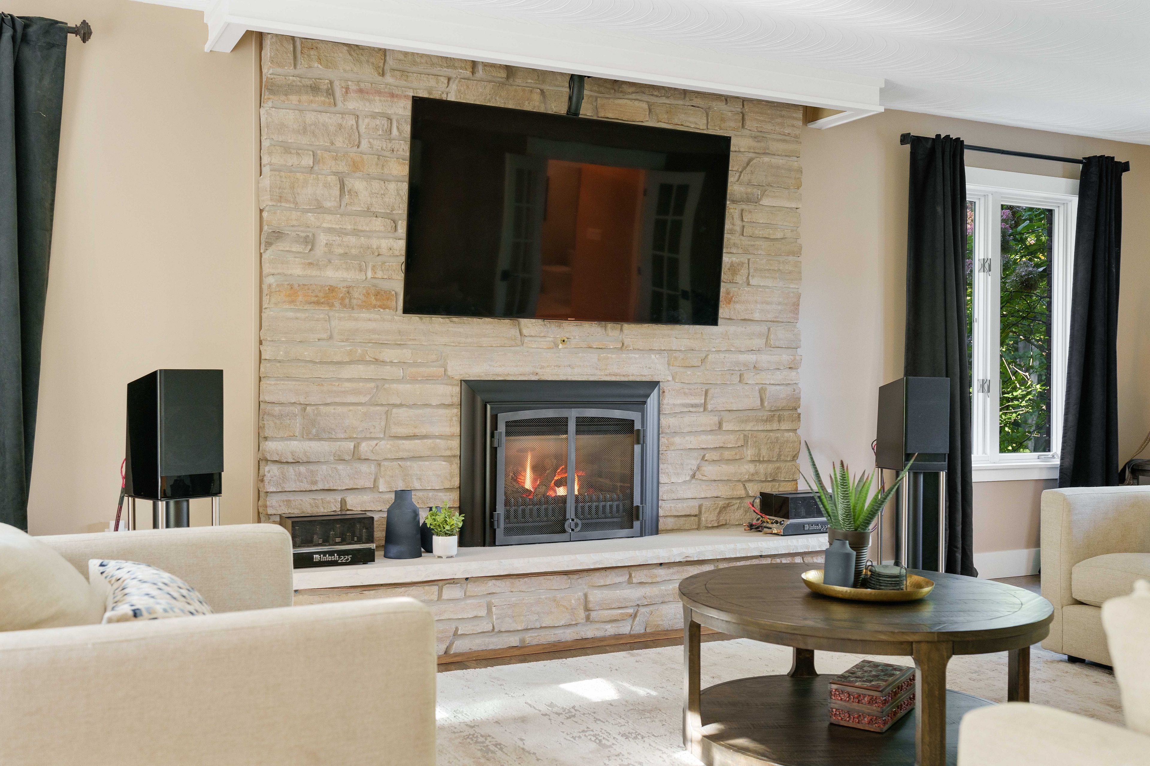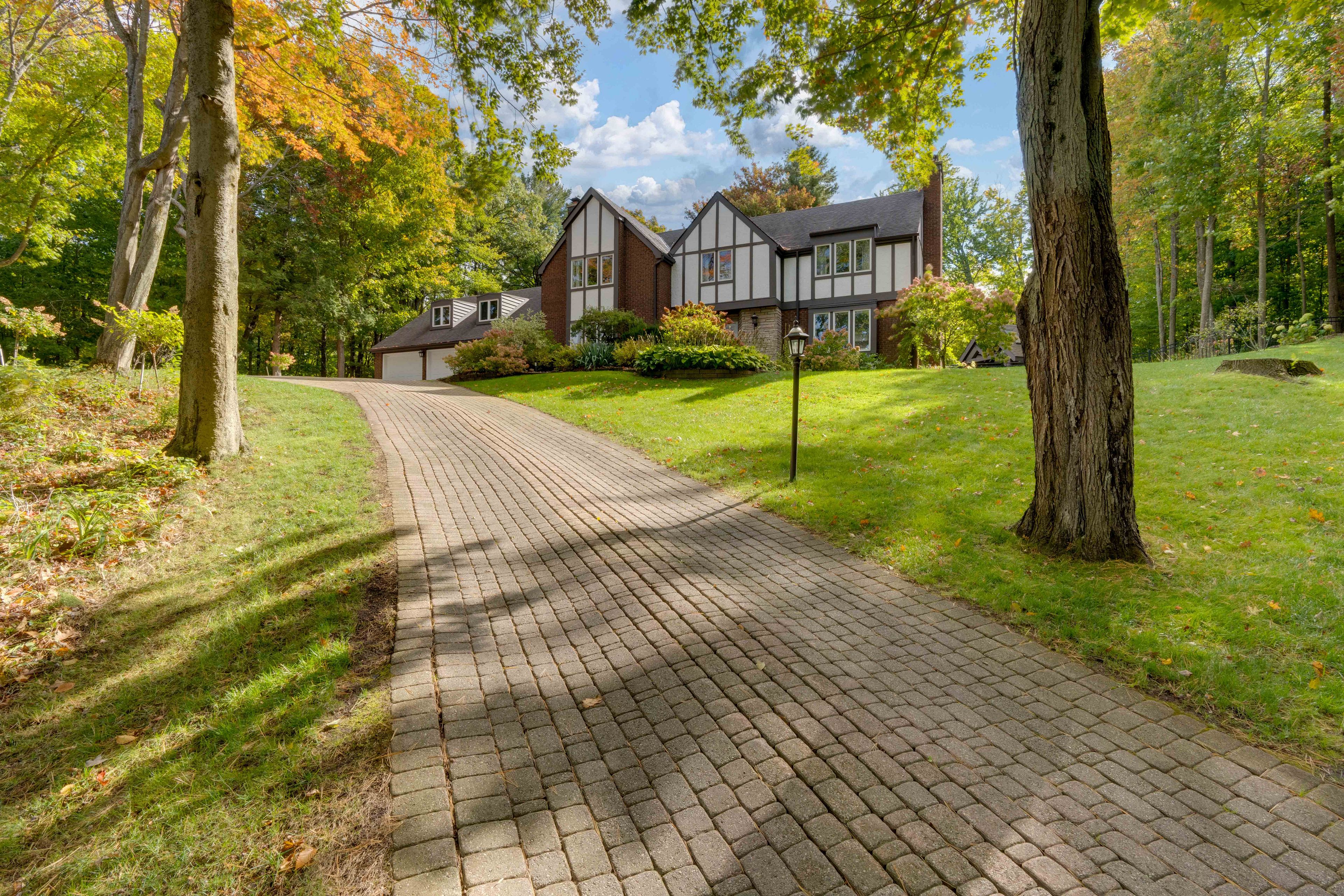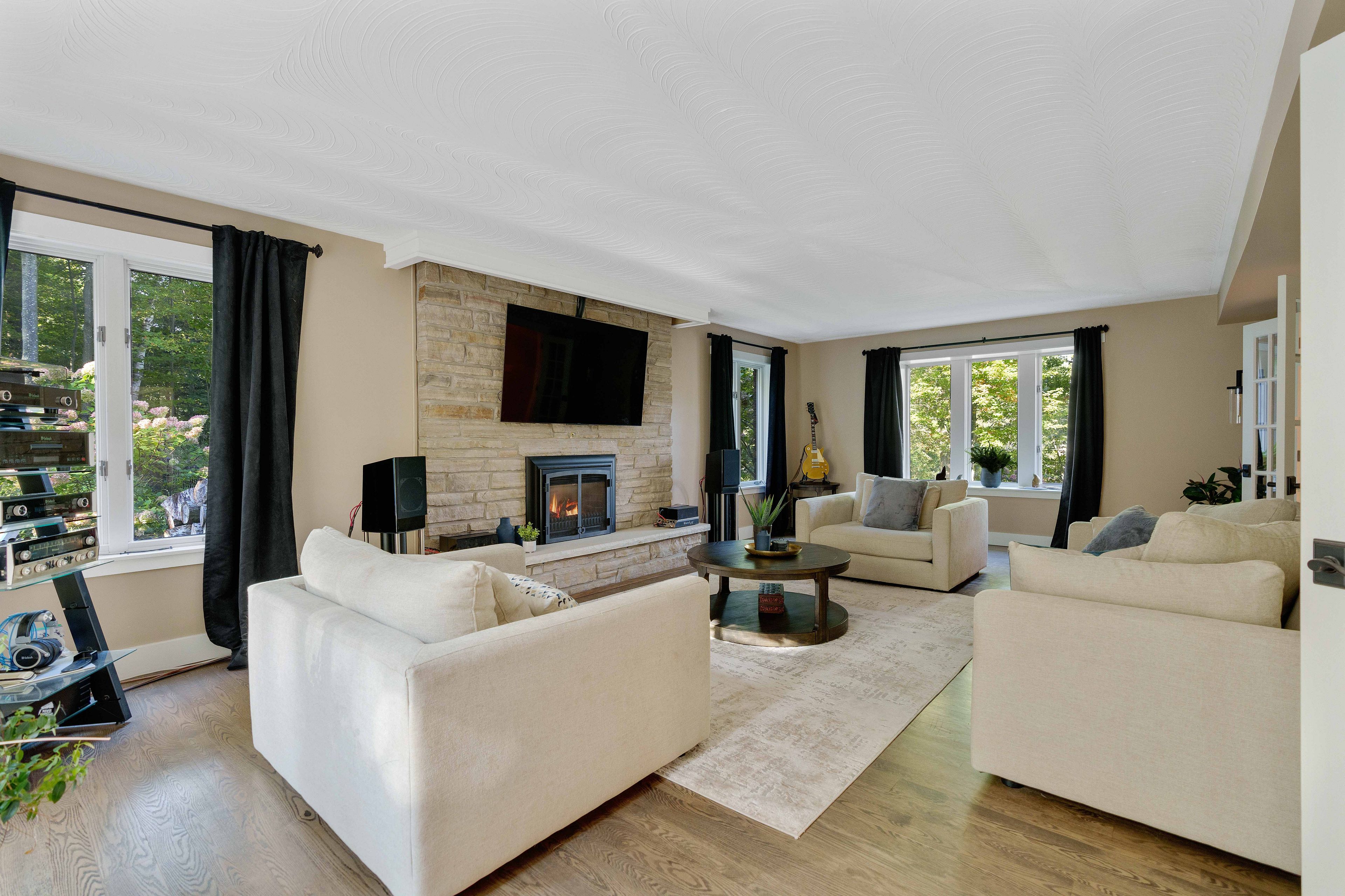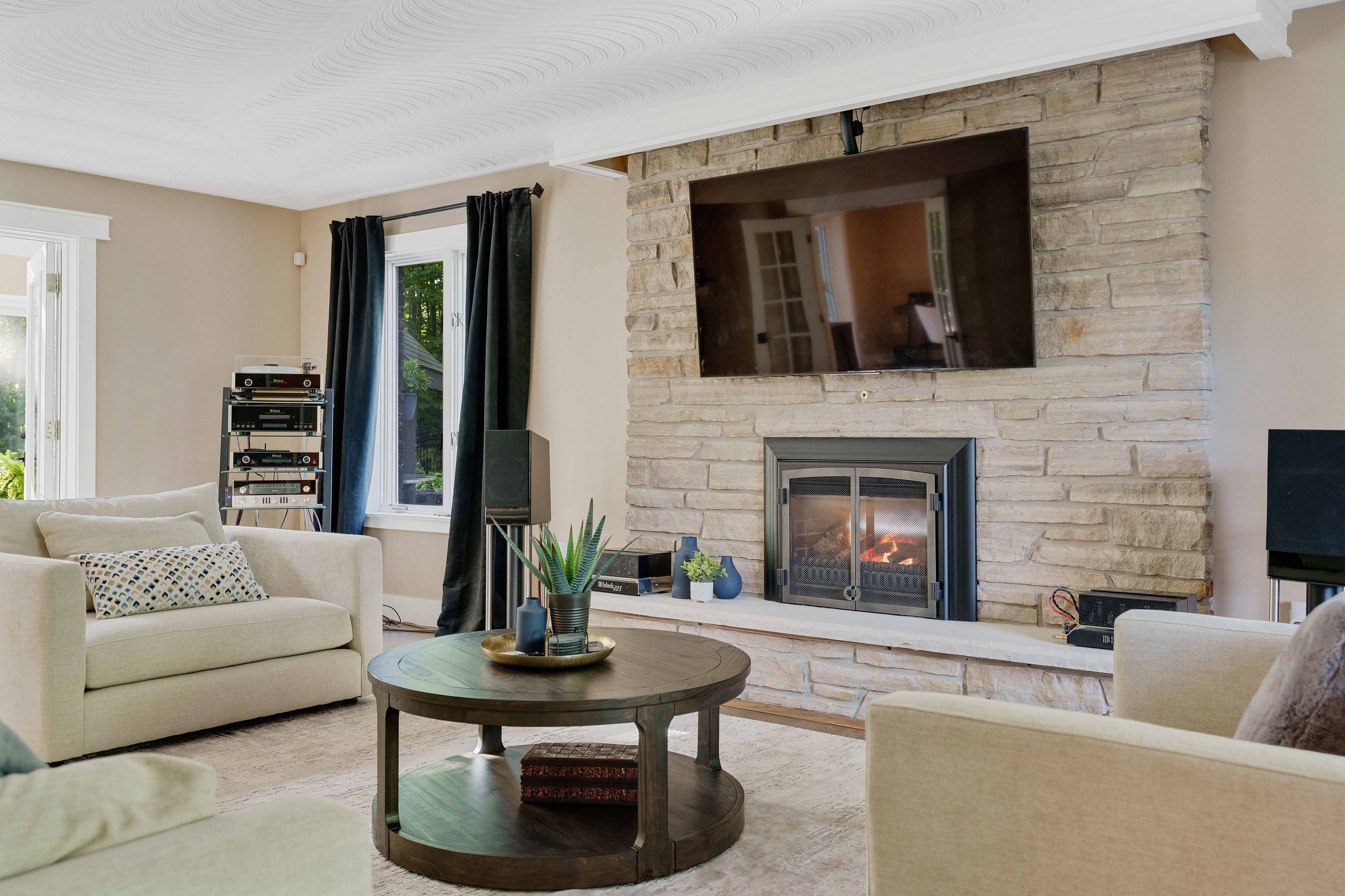 Discover timeless elegance in this stunning English Tudor estate, perched on a private 2.2 acre lot in prestigious Midhurst. Thoughtfully positioned atop a hill, this 5-bedroom, 5-bathroom residence offers over 5,000 sq ft of luxurious living space with sweeping views from every window and unmatched privacy at every turn.Step into the heart of the home - a brand new chef's kitchen that seamlessly blends high design with premium function. Featuring top-of-the-line JennAir built-ins, a striking AGA Mercury range, Cambria quartz counters, and an oversized island perfect for hosting, all flowing into a sunlit dining area and a walkout to the poolside patio.Entertain in every season with a spacious living room, complete with gas fireplace and walkouts to a heated glass sunroom, or retreat to the gracious formal dining room with wood-burning fireplace. The welcoming foyer features heated floors, a 2-piece bath, and walk-in coat closet.Upstairs, the primary suite offers a peaceful escape with heated floors, two large closets, and a spa-style ensuite. A unique bedroom-loft combo with separate entrance, gas stove, and full bath makes for an ideal in-law suite or guest retreat.Outside is where the lifestyle truly shines: in-ground saltwater pool, hot tub under a gazebo, outdoor shower, firepit, and even a cantilevered deck overlooking the ravine. The heated 3-car garage is a dream workshop or man cave, while a separate detached heated outbuilding offers additional flexibility.Ask for the full list of upgrades and features - this home offers far more than meets the eye.