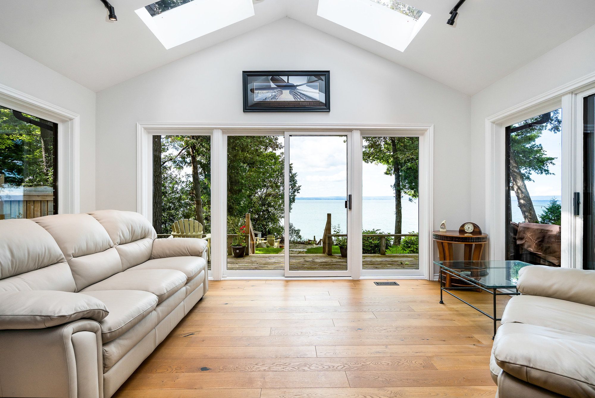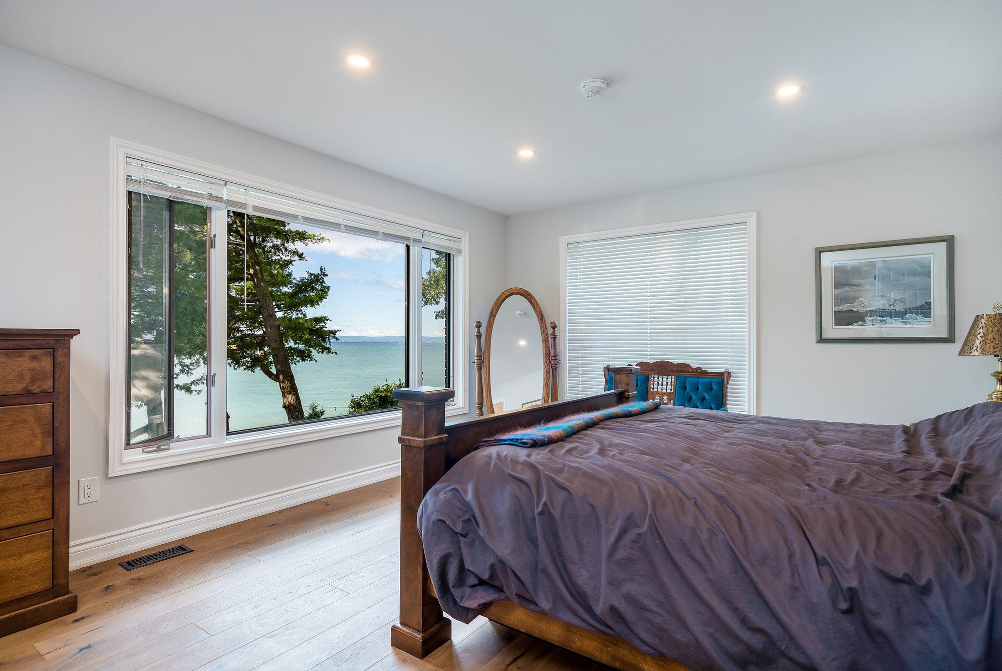 Perched majestically on the stunning shores of Georgian Bay this 37' Waterfront custom built all brick home with 4+ bedroom is calling your name. The charming rocky rustic landscape of this special lifestyle 80' x 214' property returns the beauty with muskoka-like crystal clear waters, panoramic views across the bay to Blue Mountain and breathtaking sunsets that will mesmerize you from the moment you visit. The cascading multiple decking with direct water access makes this home different than all others and takes you to a playful place of boating, swimming or outdoor entertaining with friends and family meanwhile as you transcend to inside the home it equally matches with its 3,400 sq ft of luxury modern living. The well-designed open concept main floor includes many quality features such as wide-plank oak flooring throughout, main floor bedroom, new upgraded bathroom, expansive panoramic windows from every angle and a stunning chefs kitchen with beautiful custom cabinetry, quartz counter tops, large eat up island for entertaining and an impressive Wolfe range with 4 burners and griddle. Enjoy the dining and living room space with gorgeous views of the blue waters of Georgian Bay along with the bright 4 season sunroom. The quality continues to the second floor with the large primary suite with large windows overlooking the bay with a stunning upgraded 4pc spa-like bath with heated floors and large walk in closet. Additional guest bedrooms and unique space for office/den or art studio. Fully finished lower level adds extra living space for so many options including workshop, gym area and family room. Additional highlights include oversized 2 car garage with inside entry, new garden shed and professionally landscaped grounds. Whether it be year-round living or a dream vacation home this property blends modern luxury with natural beauty and is still within close proximity to all amenities of both Wasaga Beach and Tiny Township.
