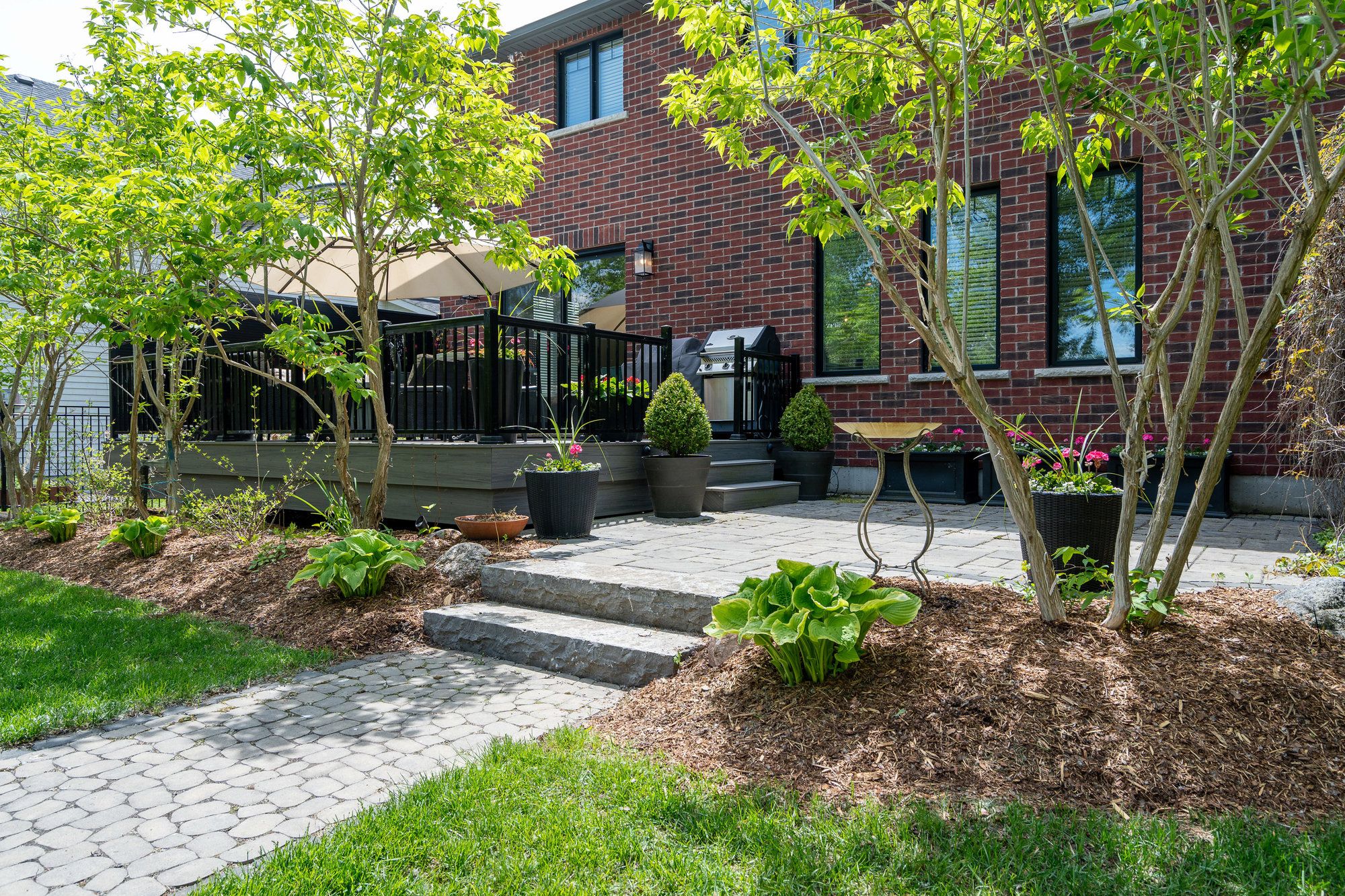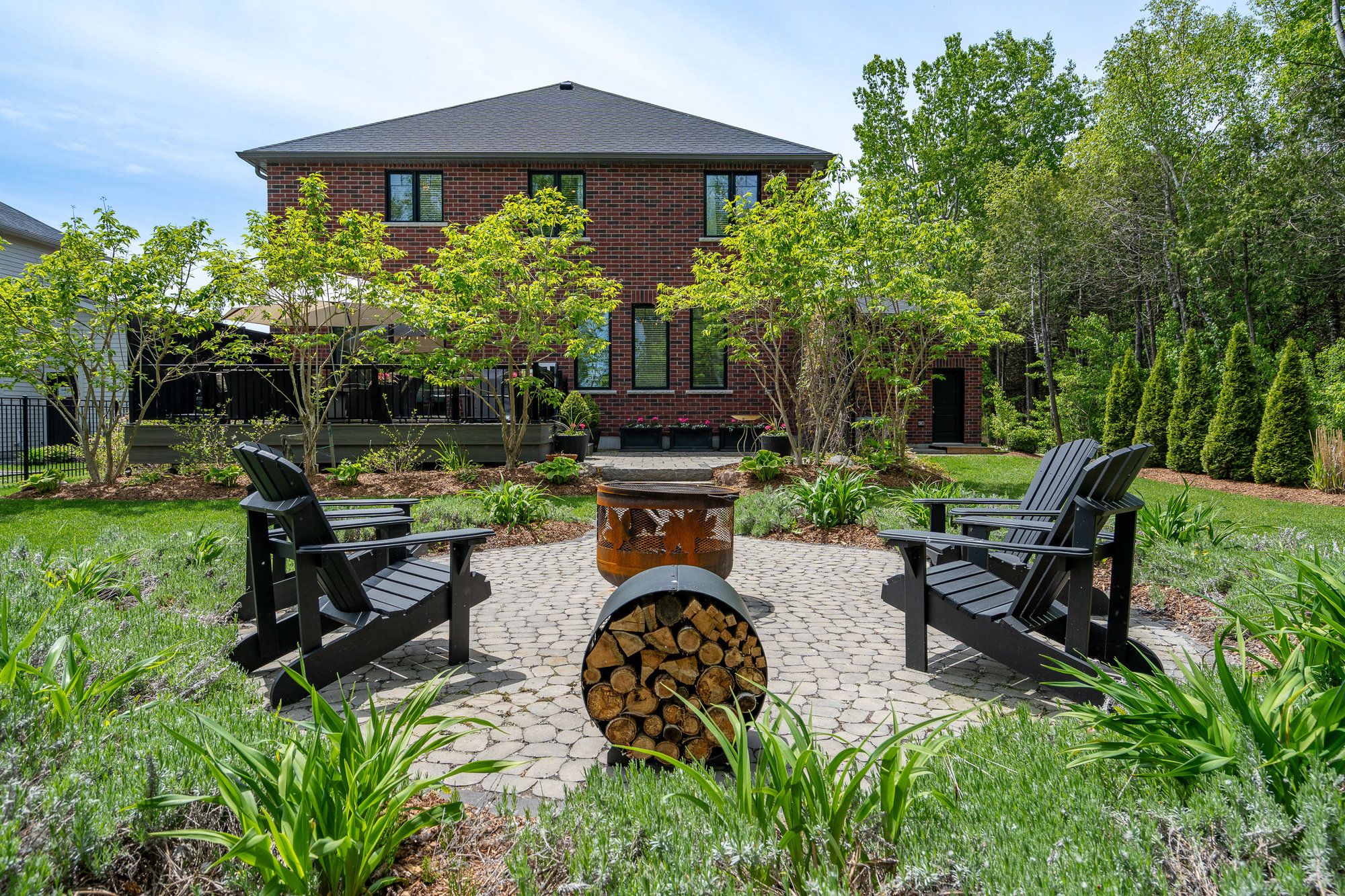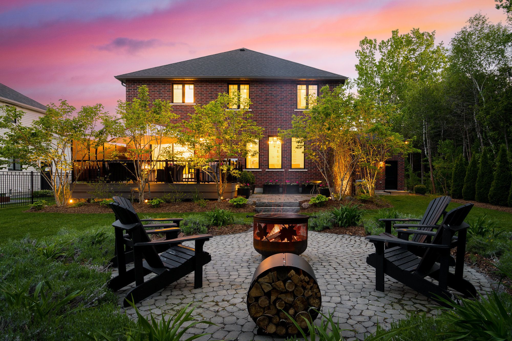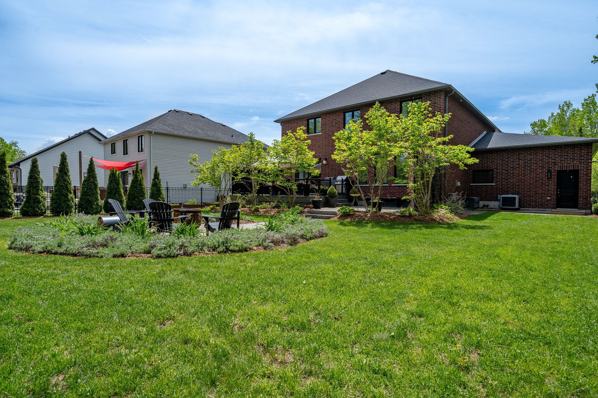 Welcome to your dream home, a breathtaking 4-bedroom, 4.5-bathroom, two-story masterpiece built in 2019, designed for unparalleled luxury and comfort. Nestled in a serene setting, this residence boasts stunning curb appeal with professionally landscaped grounds and evergreen trees ensuring backyard privacy. The expansive composite deck and charming outdoor wood-burning fire bowl, surrounded by lush landscaping, create an idyllic space for relaxation and entertaining. Step inside to a light-filled, open-concept main level featuring gleaming hardwood floors and a cozy natural gas fireplace in the living room, perfect for gathering with loved ones. The chef-inspired kitchen is a culinary haven, equipped with high-end appliances, sleek Cambria quartz countertops, a scullery with additional storage and sink, and premium light fixtures that elevate the ambiance. Convenience abounds with a beautifully finished main-level laundry room boasting wall-to-wall built-ins and a central vacuum system for effortless cleaning. Upstairs, hardwood floors flow through the hallway and into the primary bedroom, a true sanctuary with an oversized walk-in closet and a luxurious 5-piece ensuite bathroom, complete with a soaker tub and glass-surround walk-in shower. All four bedrooms are generously sized, with a large shared bathroom featuring a double-sink vanity and tub-shower combo, while the second bedroom enjoys its own ensuite with a spacious vanity and shower-tub combo. The fully finished basement, with durable luxury vinyl plank flooring, is an entertainers delight, offering a kitchenette, a full bathroom, a versatile living space, and a home gym area. This home also includes a 3.5 car garage with natural gas heating for year-round comfort.With every detail meticulously crafted, from the central vacuum system to the sophisticated design, this property blends modern elegance with unmatched functionality. Don't miss your chance to own this extraordinary home .