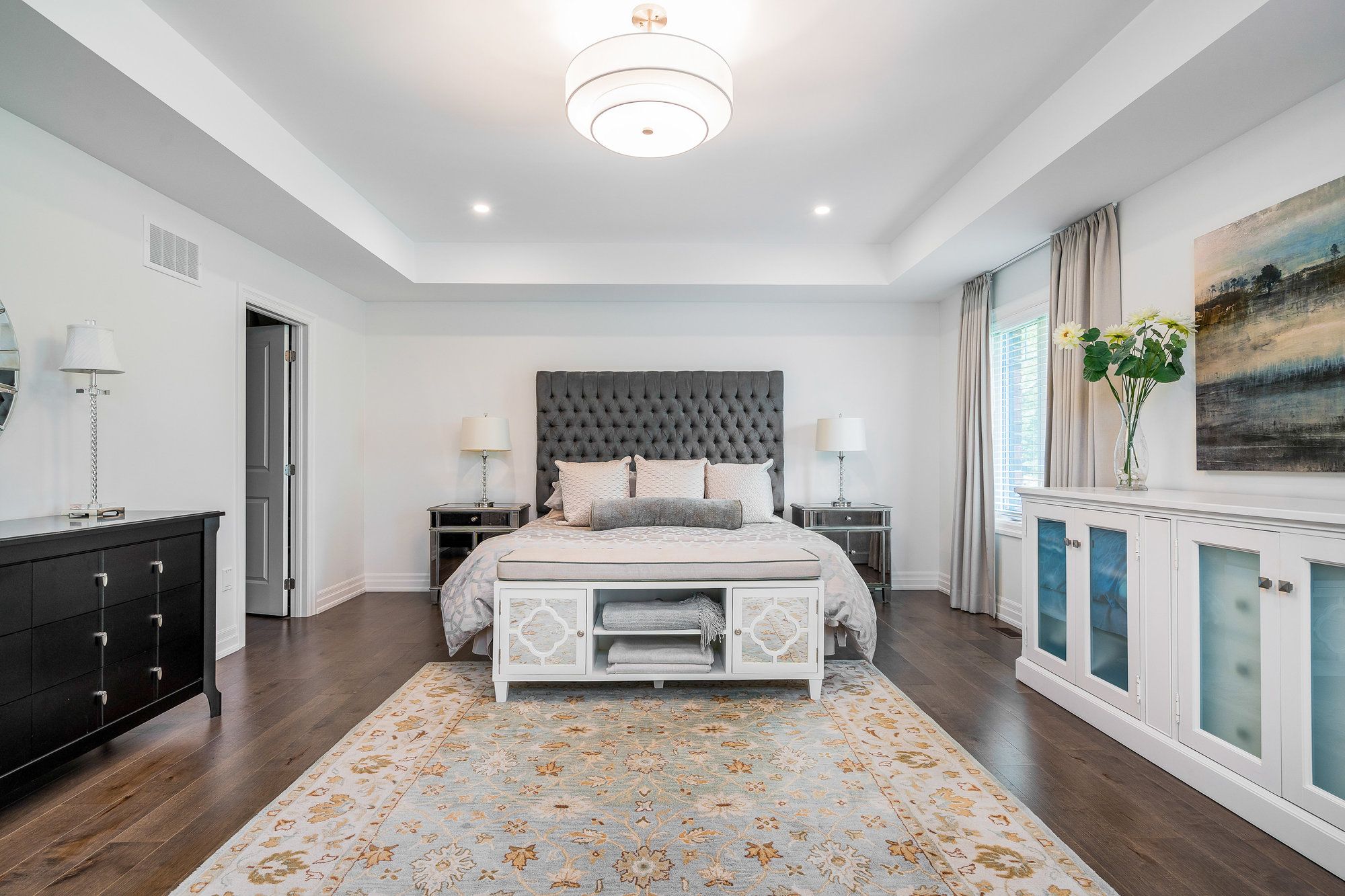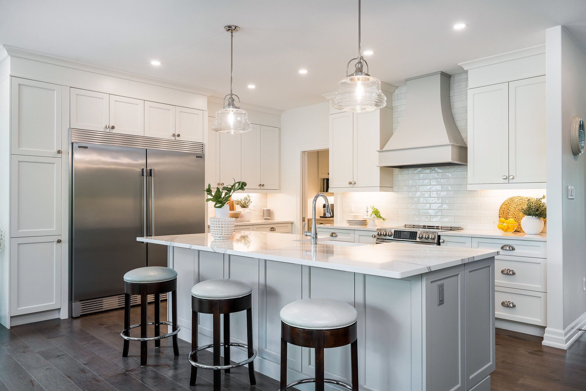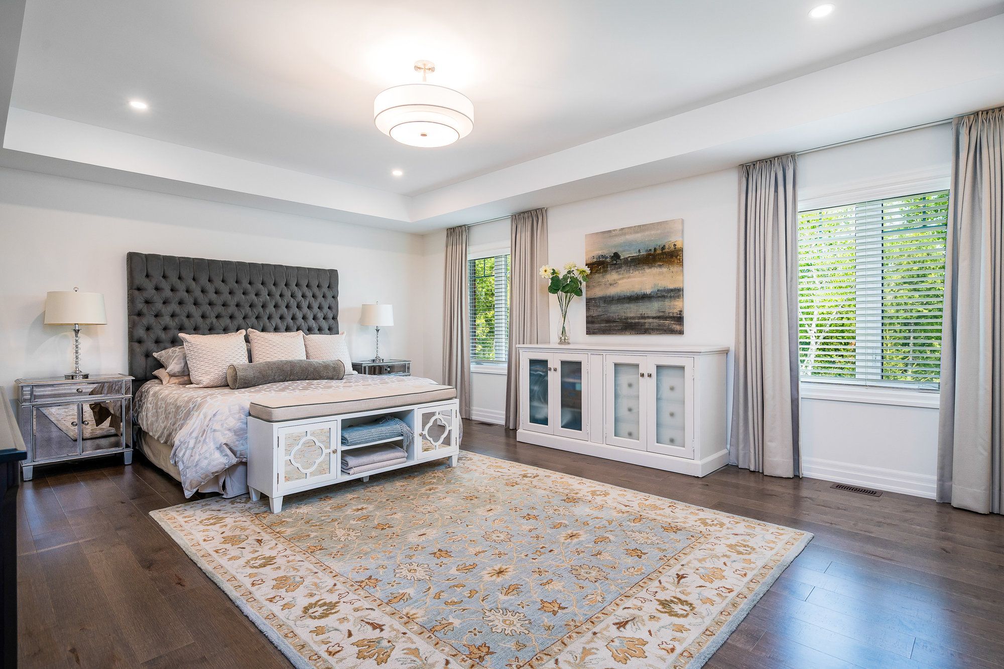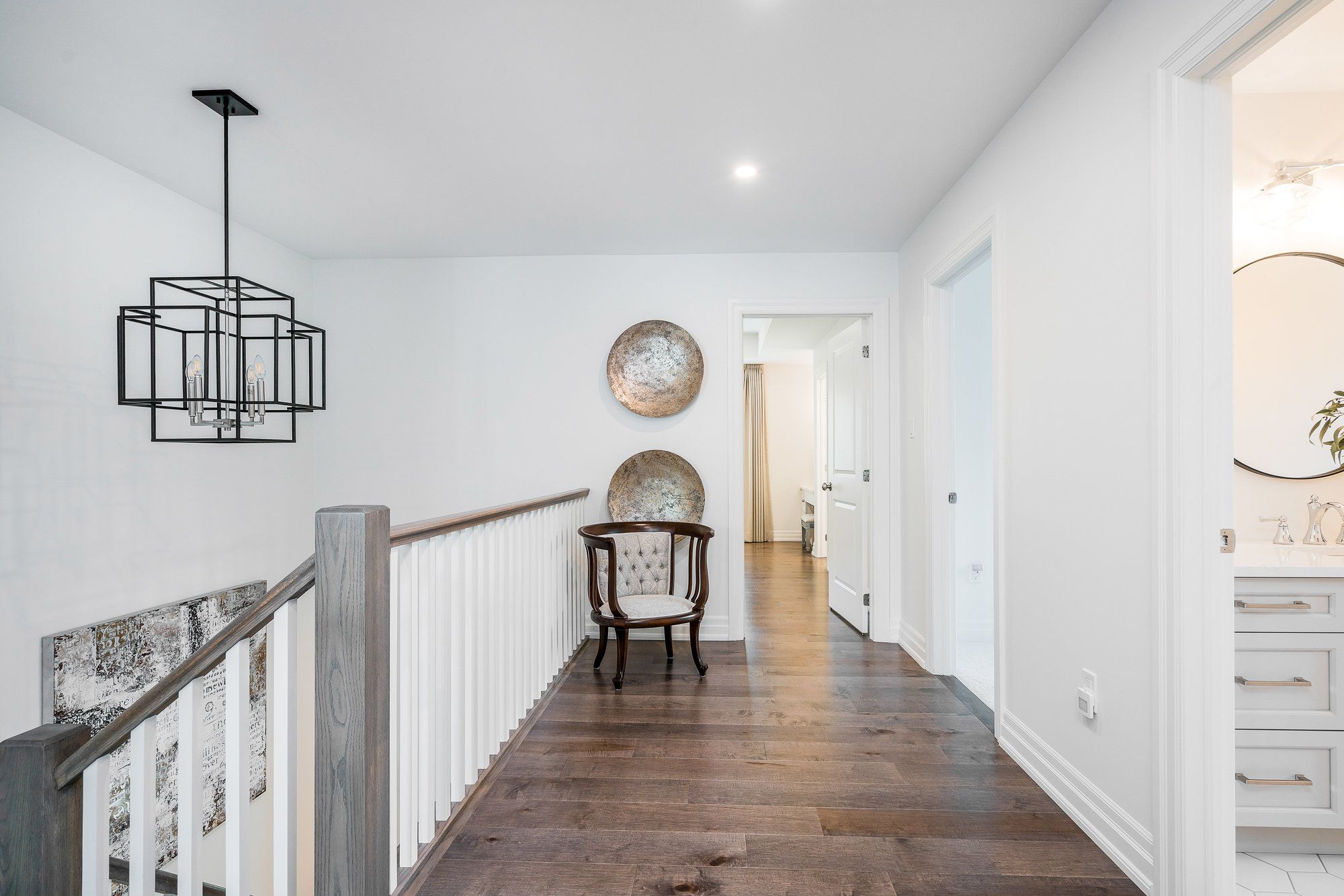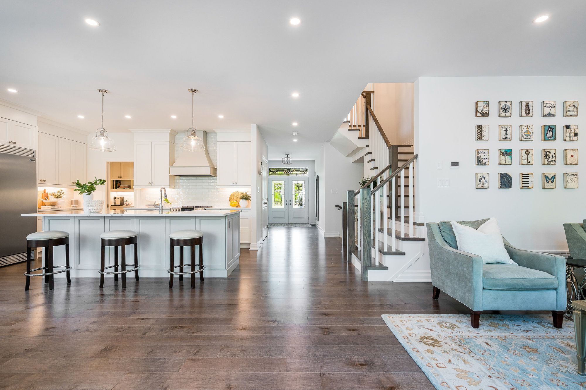 Welcome to your dream home, a breathtaking 4-bedroom, 4.5-bathroom, two-story masterpiece built in 2019, designed for unparalleled luxury and comfort. Nestled in a serene setting, this residence boasts stunning curb appeal with professionally landscaped grounds and evergreen trees ensuring backyard privacy. The expansive composite deck and charming outdoor wood-burning fire bowl, surrounded by lush landscaping, create an idyllic space for relaxation and entertaining. Step inside to a light-filled, open-concept main level featuring gleaming hardwood floors and a cozy natural gas fireplace in the living room, perfect for gathering with loved ones. The chef-inspired kitchen is a culinary haven, equipped with high-end appliances, sleek Cambria quartz countertops, a scullery with additional storage and sink, and premium light fixtures that elevate the ambiance. Convenience abounds with a beautifully finished main-level laundry room boasting wall-to-wall built-ins and a central vacuum system for effortless cleaning. Upstairs, hardwood floors flow through the hallway and into the primary bedroom, a true sanctuary with an oversized walk-in closet and a luxurious 5-piece ensuite bathroom, complete with a soaker tub and glass-surround walk-in shower. All four bedrooms are generously sized, with a large shared bathroom featuring a double-sink vanity and tub-shower combo, while the second bedroom enjoys its own ensuite with a spacious vanity and shower-tub combo. The fully finished basement, with durable luxury vinyl plank flooring, is an entertainers delight, offering a kitchenette, a full bathroom, a versatile living space, and a home gym area. This home also includes a 3.5 car garage with natural gas heating for year-round comfort.With every detail meticulously crafted, from the central vacuum system to the sophisticated design, this property blends modern elegance with unmatched functionality. Don't miss your chance to own this extraordinary home .
