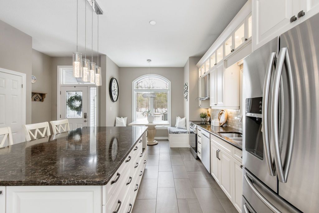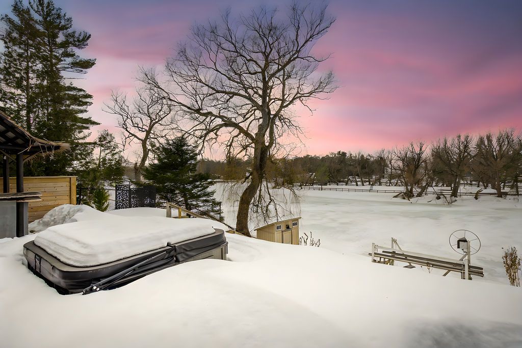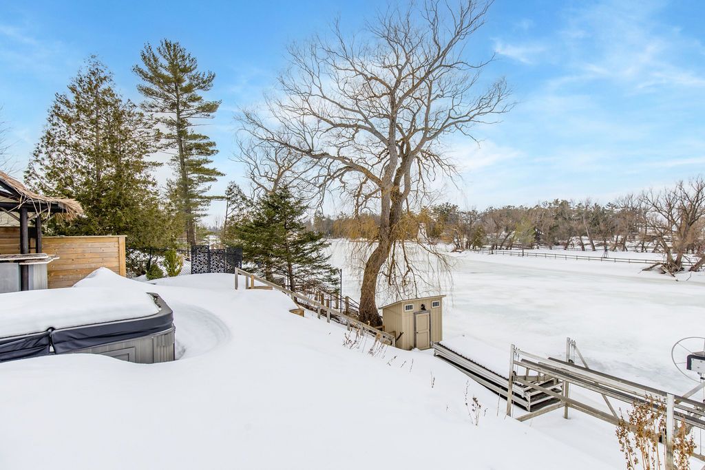 Beautiful riverfront home on the Nottawasaga River offering peaceful views of the water and surrounding trees in a tranquil setting. This well-maintained home offers the opportunity to enjoy waterfront living in a updated, spacious setting just minutes from the mouth of the river and Georgian Bay. The bright kitchen features granite countertops, a large island, and a breakfast nook, offering plenty of space for everyday living and entertaining. The adjoining living room is warm and inviting with a gas fireplace, skylight, and large glass doors showcasing the river views. The main floor offers a spacious primary bedroom with walkout to the deck, walk-in closet, and a private 4-piece ensuite with heated floors. A second bedroom, full bathroom with heated floors, and convenient main floor laundry complete the level. The finished basement provides additional living space with a large recreation room, an additional bedroom, full bathroom, gym area, and plenty of storage. A heated two-car garage with inside entry and a man door provides excellent space for vehicles, storage, or a workshop. New furnace, air conditioner and air cleaner (2024). Outside is where this property truly shines with 55 feet of private riverfront, multiple docks, a dockside deck, and a boat shed. The spacious upper deck with hot tub is perfect for entertaining, while the lower deck provides easy access to the water. The location offers quick access to the open waters of Georgian Bay. A fantastic opportunity to enjoy boating, fishing, kayaking, and paddleboarding right from your own backyard in one of Wasaga Beach's most desirable riverfront locations.