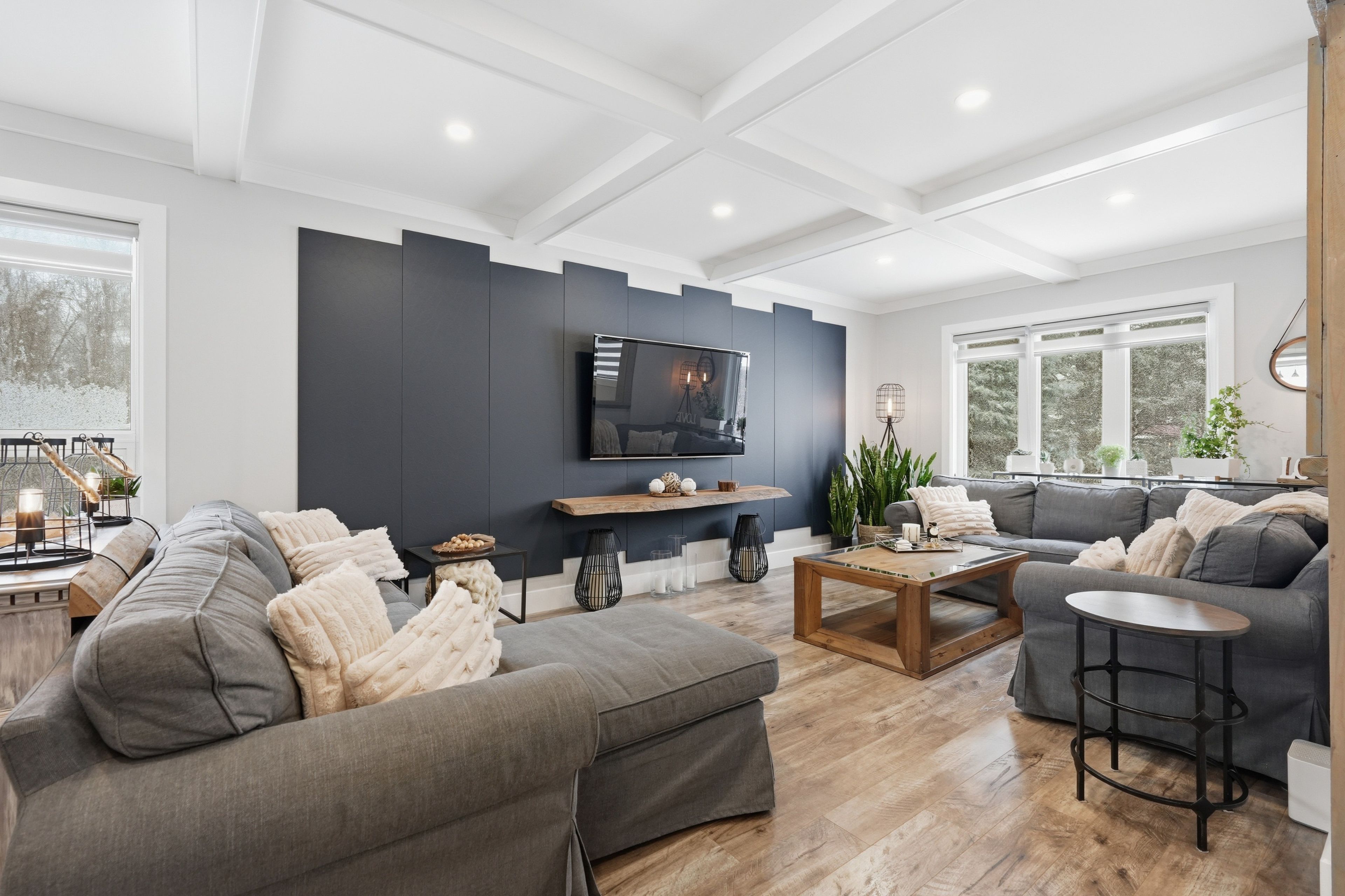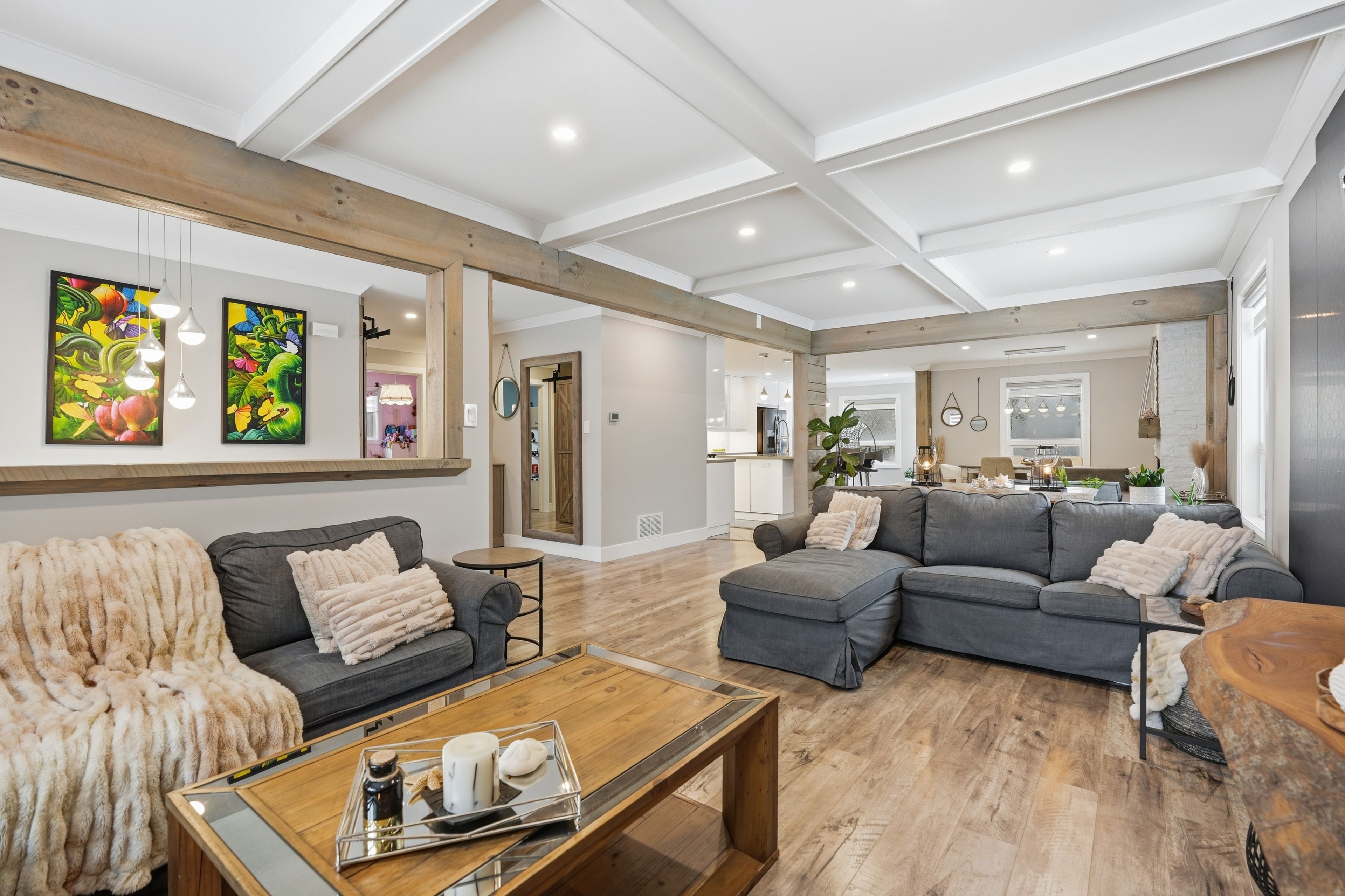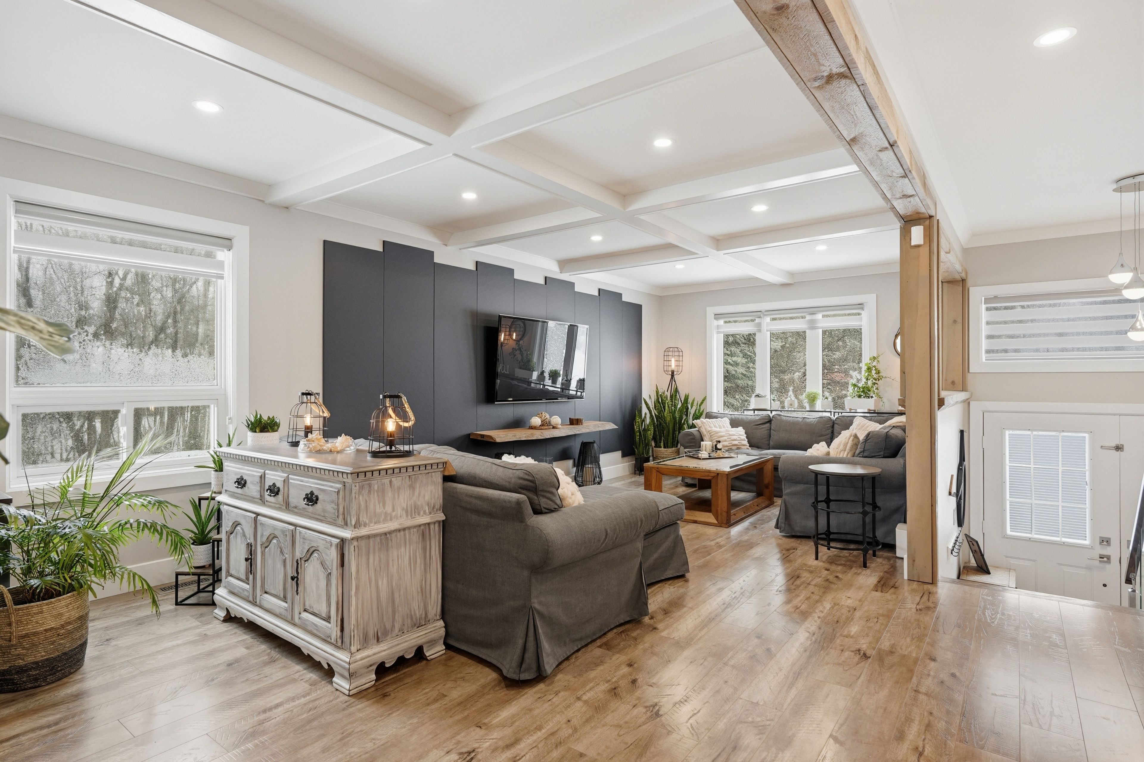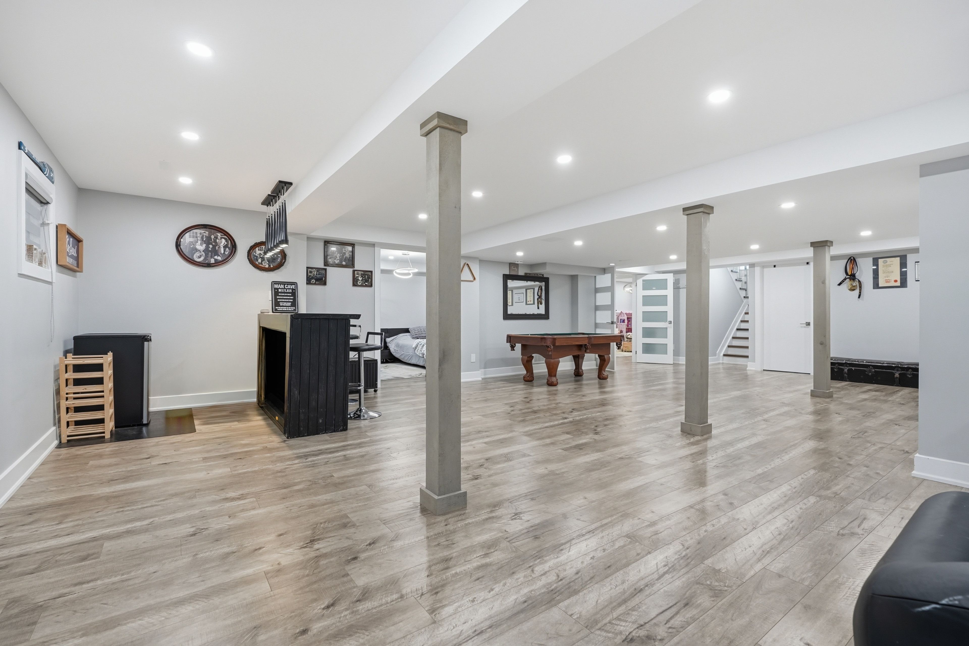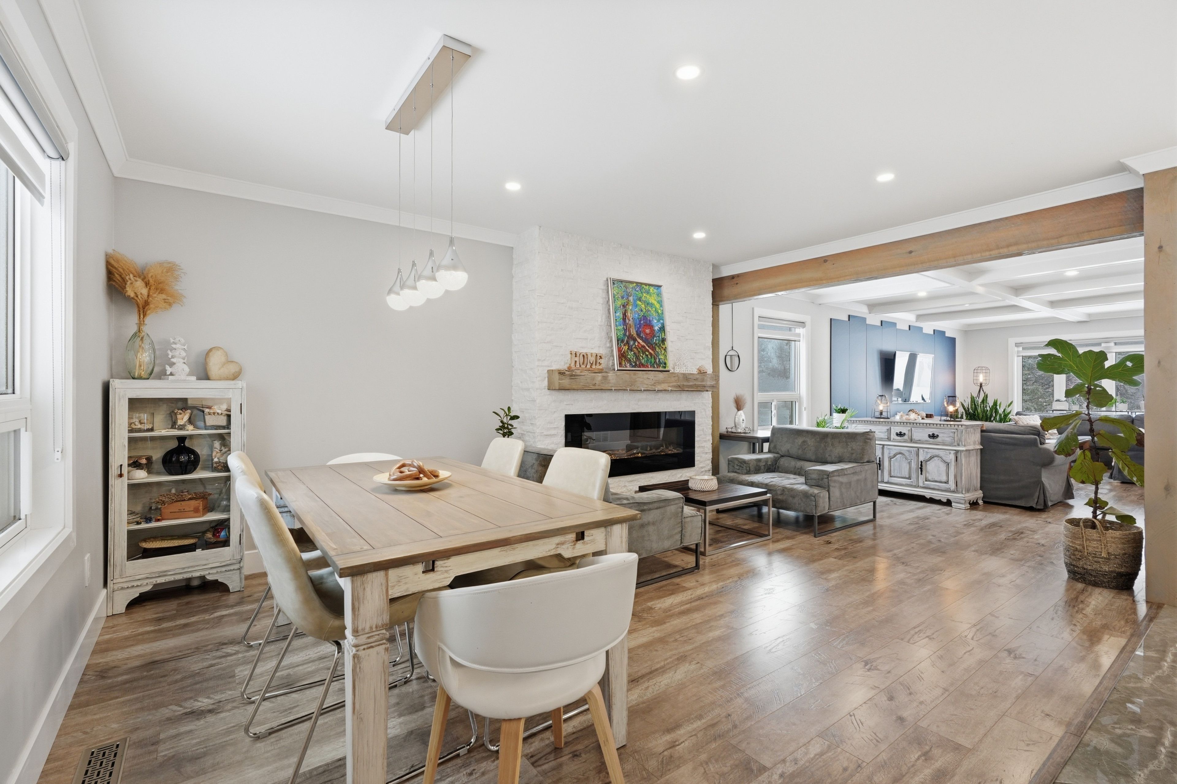 Nestled in one of Wasaga Beach's most sought-after neighbourhoods, this beautifully updated bungalow offers the perfect blend of nature, community, and refined comfort. Just moments from Beach 1 and surrounded by mature trees, scenic trails, and welcoming neighbours, this home delivers a serene lifestyle without compromising everyday convenience. Set proudly on a premium corner lot backing onto a quiet cul-de-sac, the home enjoys a rare sense of privacy while remaining steps to trails, parks, schools, and everything Wasaga Beach has to offer. This property presents an exceptional balance of nature and modern living. Inside, the home has been completely reimagined with a clean and timeless finishes. A stunning, fully renovated kitchen anchors the main level, showcasing upgraded appliances, sleek finishes, and a seamless flow into the open-concept living and dining area. Enhanced by stylish pot lights and new flooring throughout, the space feels bright, cohesive, and effortlessly inviting. Thoughtful upgrades continue with beautifully renovated spa like bathrooms, impressive coffered ceiling, incredible feature fireplace wall, designer lighting, tall baseboards, a newer roof, and a newly built deck, offering true turn-key peace of mind. Offering 5 bedrooms and 3 bathrooms, over 3200 sq ft. of well-appointed living space, designed for both comfort and functionality. The fully finished lower level extends the home's versatility, featuring a spacious rec room, games area, full bathroom, and two bedrooms. Outdoors, the property is equally impressive, complete with an in ground sprinkler system for low-maintenance landscaping. A wide driveway and double-car garage provide ample parking and storage, catering to both everyday living and entertaining needs. Combining thoughtful upgrades, a prime location, and exceptional versatility, this home stands as a rare opportunity in Wasaga Beach offering a lifestyle defined by comfort, convenience, and connection to nature.