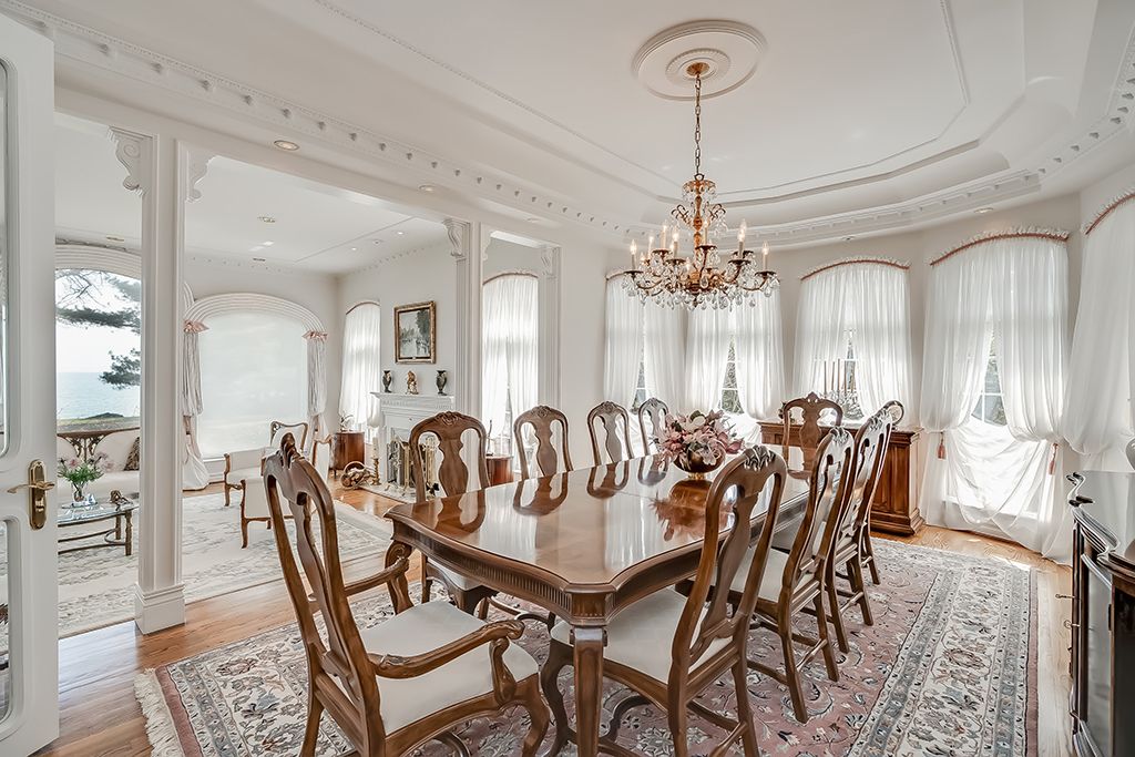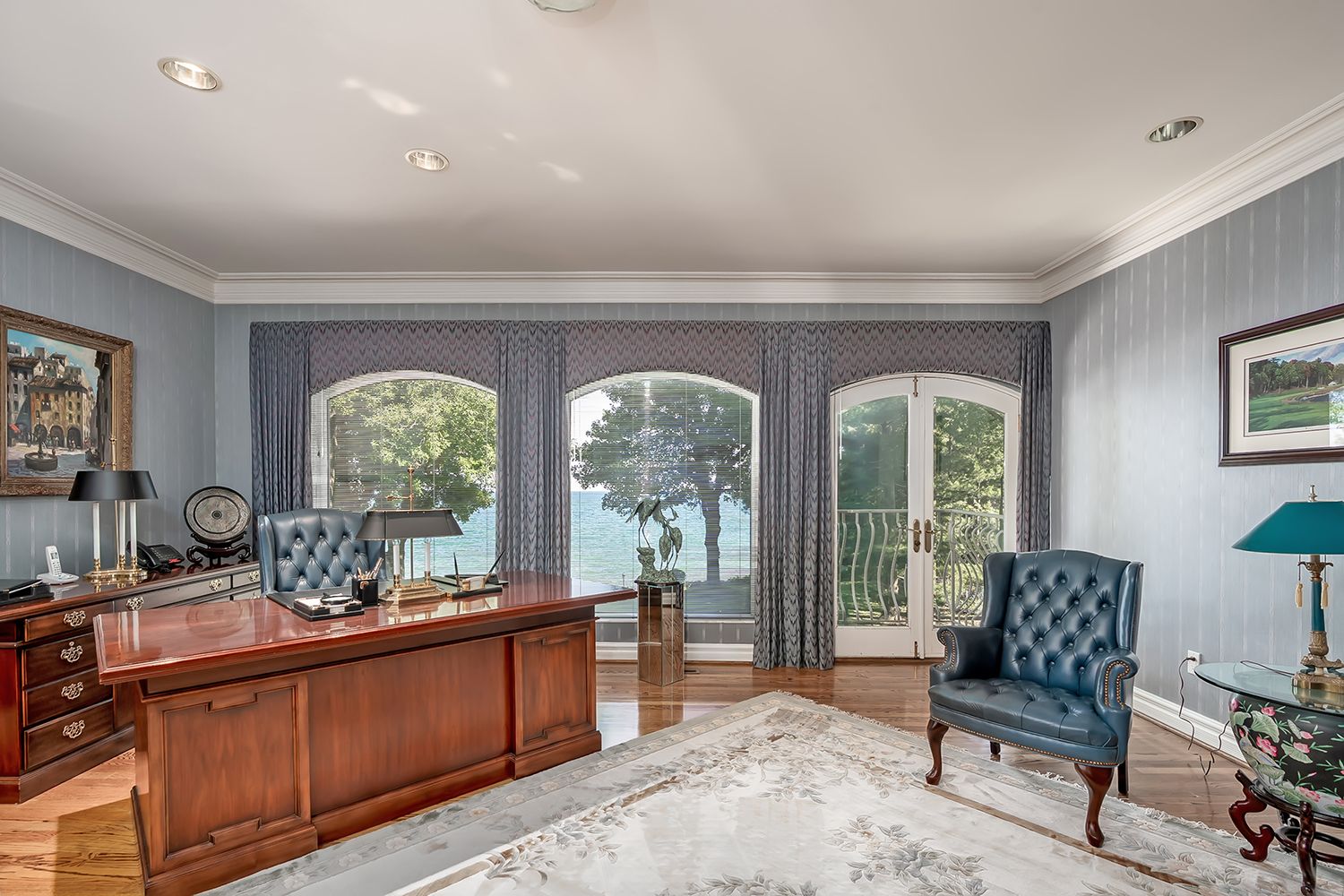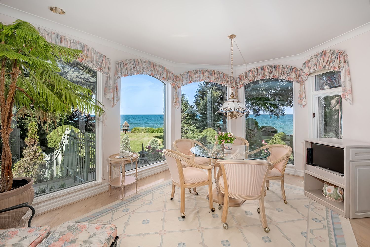 Welcome to an exceptional waterfront residence on one of South East Oakville's most private and prestigious streets. Set on a quiet cul-de-sac with full riparian rights, this landmark estate offers nearly 9,300 square feet of finished living space and stunning lake views from almost every room. A long, gated drive leads to manicured grounds, mature trees and a sun-filled backyard with pool, multiple terraces and direct access to the lake. Designed for both everyday living and elegant entertaining, the main level features a grand foyer, formal living and dining rooms, a lake-facing great room with fireplace and a bright kitchen and breakfast area that open to the terrace. The upper level is highlighted by a private primary suite with balcony, sitting area, walk-in closet and spa-like ensuite overlooking the water. Three additional bedrooms on this level offer ensuite or semi-ensuite access and either lake or garden views. A main floor bedroom provides ideal guest or in-law accommodation. The fully finished lower level includes a spacious recreation room, games area, wine cellar, sauna, full bathroom and a walk-out to the backyard and pool. A lower-level guest suite with ensuite offers additional privacy for extended family or visitors. This rare property combines lakefront living with proximity to the best of Oakville. Walking distance to top-rated public and private schools, close to downtown shops, restaurants, marinas, parks and highways. A unique opportunity to own on the water in Eastlake-where privacy, scale and views come together in one of Oakville's finest settings.