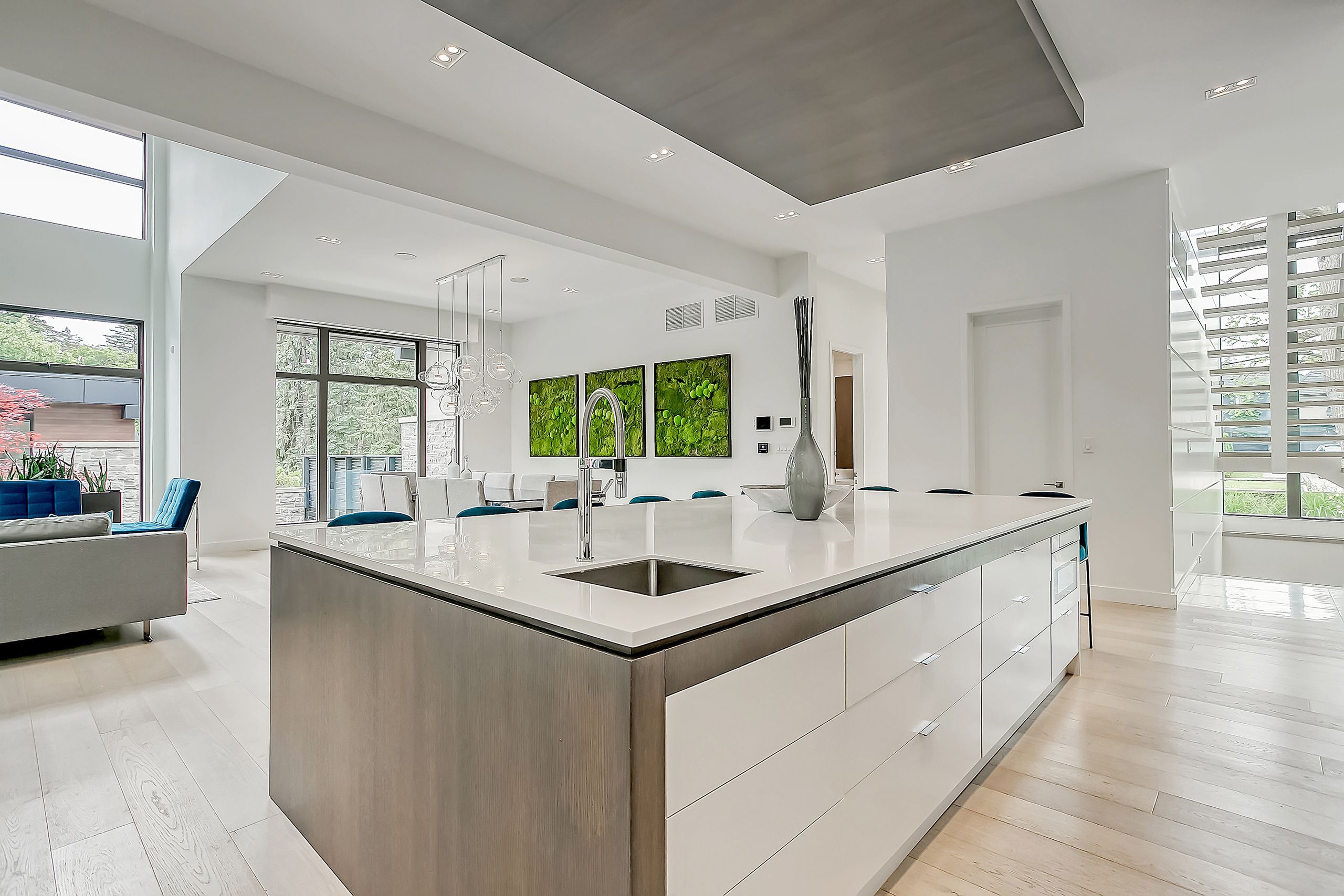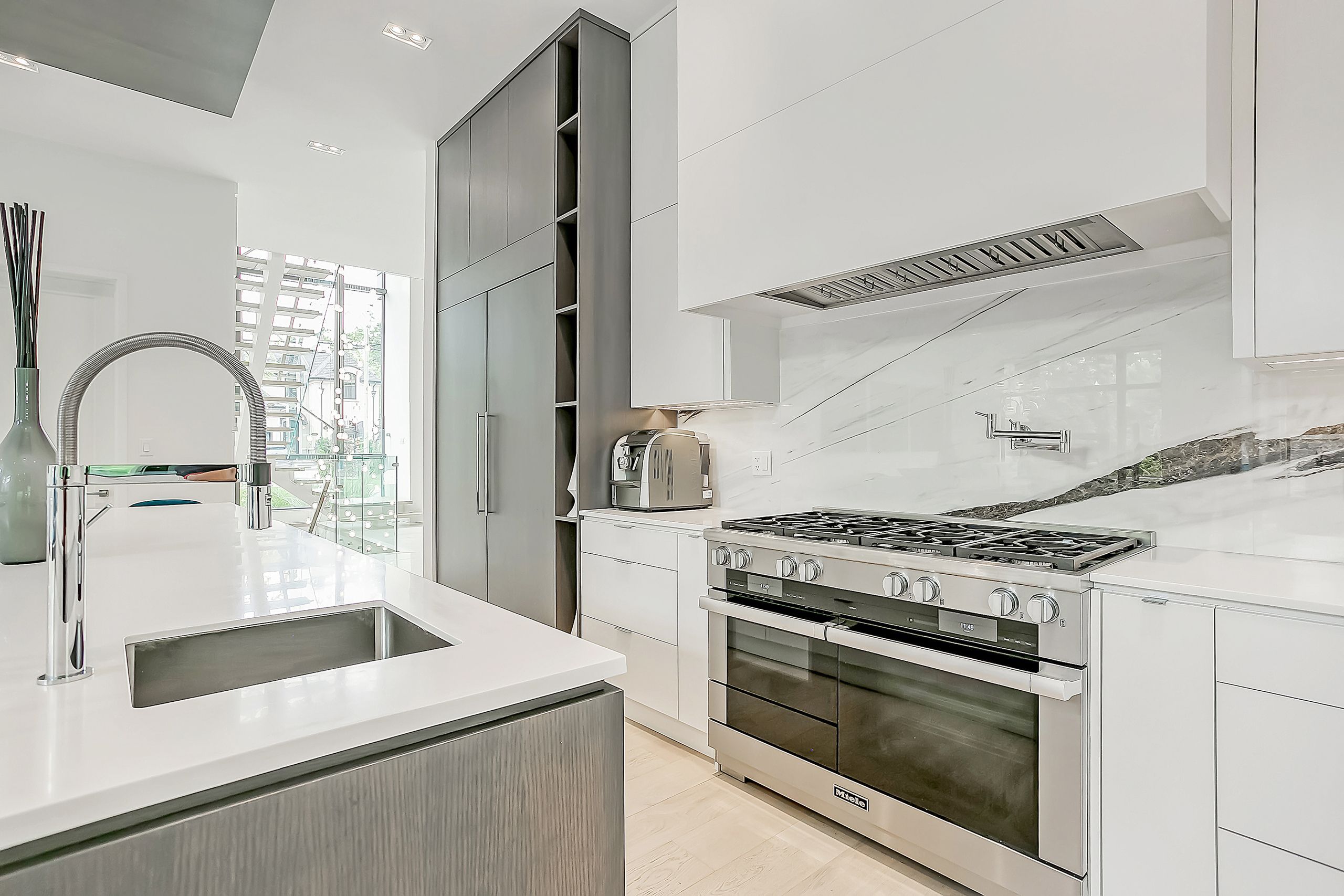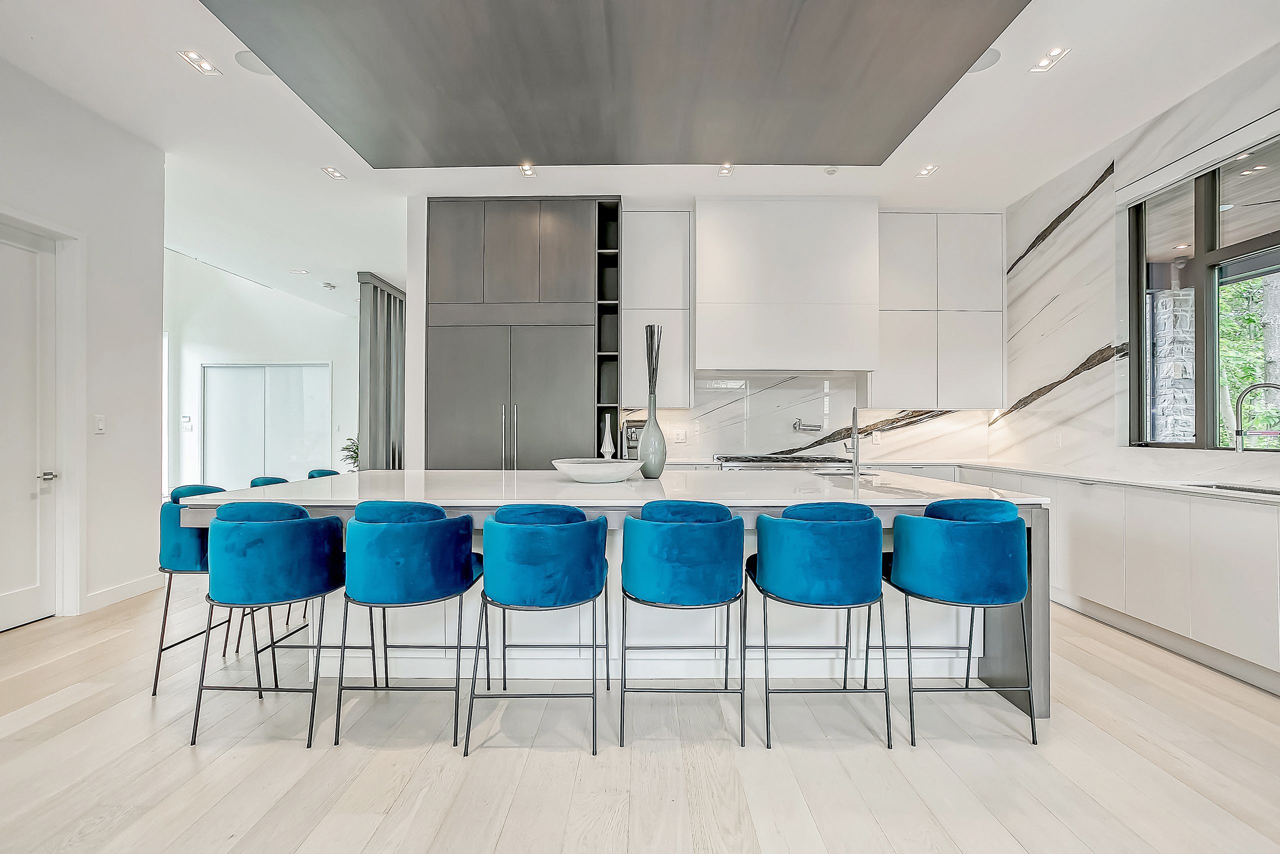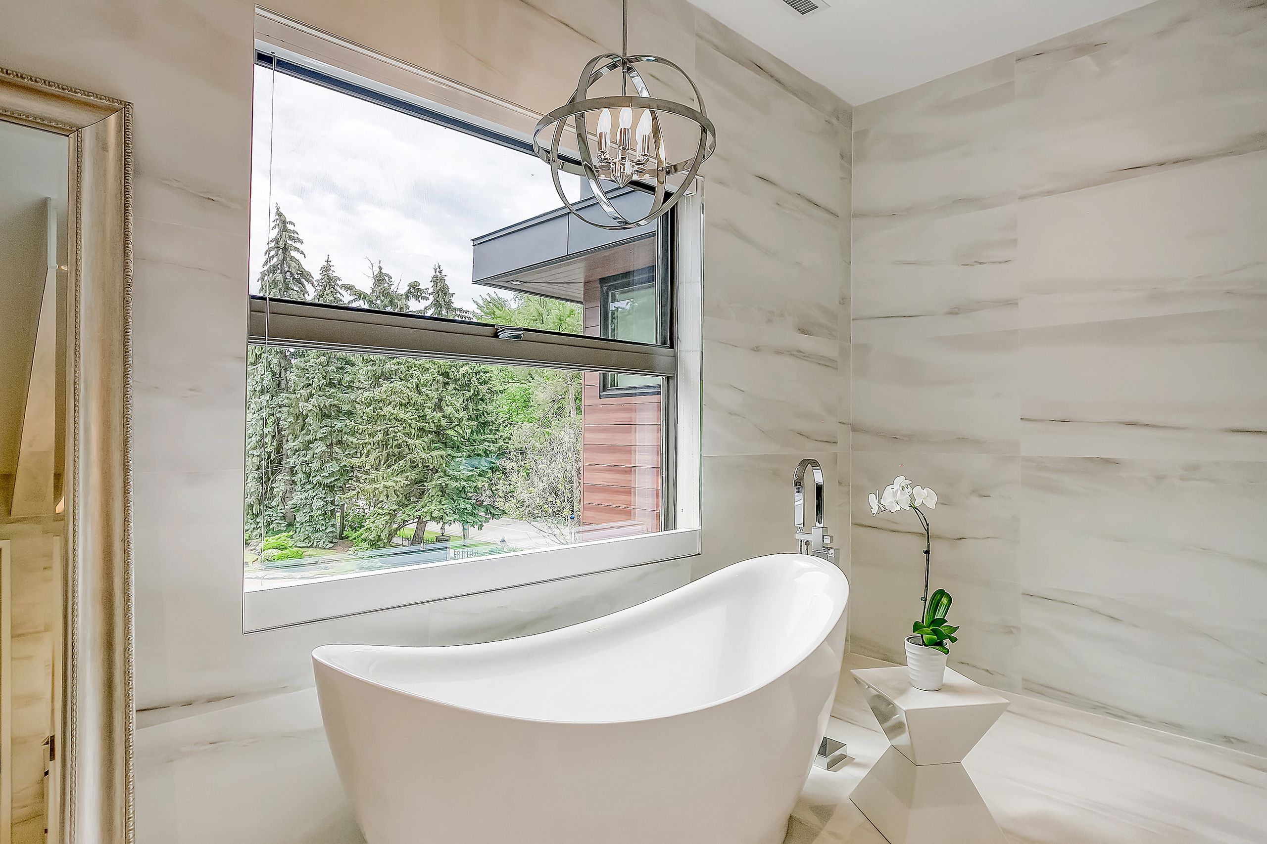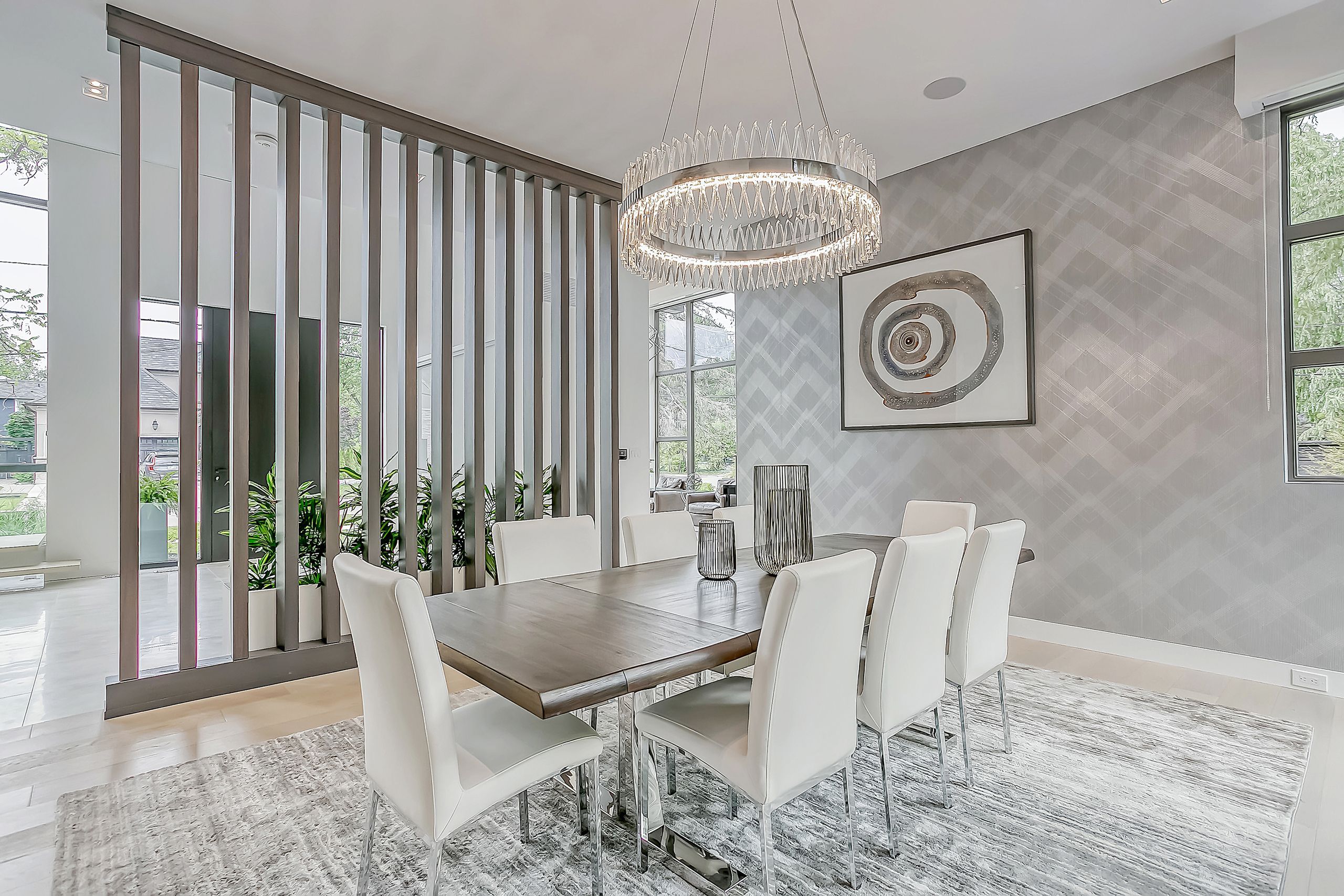 With a stunning backyard, 5,196 sq ft of above ground living, and quality construction built by Gatestone Homes, this home is truly the total package. Stone, wood, and striking Anderson windows have been eloquently incorporated on the exterior of the home, lending to the superb curb appeal. The thoughtful design fuses modern style with timeless elegance. The foyer of the home feels as though you are entering a luxury hotel, with a stunning floating staircase and a custom hanging light feature that is a piece of art in itself! The soaring two-storey foyer is flooded with natural light from oversized windows, creating a bright and welcoming space. A custom wooden piece subtly divides the foyer from the traditional dining room that is complete with a temperature-controlled wine room and glass doors that invite you to enjoy the expansive rear deck. The heart of the home is the open concept kitchen-family-dining space that is surrounded by windows and grounded by a beautiful gas fireplace. With an oversized island there is no shortage of space for you and your guests. Adjacent to the kitchen is a conveniently located powder room as well as a laundry/mudroom that can be concealed by a pocket door. The primary suite is a true oasis. With double door entry, a gas fireplace, and five-piece ensuite, no detail was overlooked. The three additional bedrooms all have ensuite access and walk-in closets. Completing this level is a laundry room and study area with built-in desk space. The 2,712 sq ft lower-level walk-up will not disappoint. The large recreation space features a built-in projector, billiards space, and wet bar. A home gym and two additional bedrooms as well as playroom/second home office finish off this space. Lush mature trees combined with meticulous landscaping will lure you to the rear yard. With approx. 1800 sq ft of outside living space, a gunite pool, and cabana, this backyard checks all the boxes! Enjoy the beautiful summer weather in this retreat-like home!