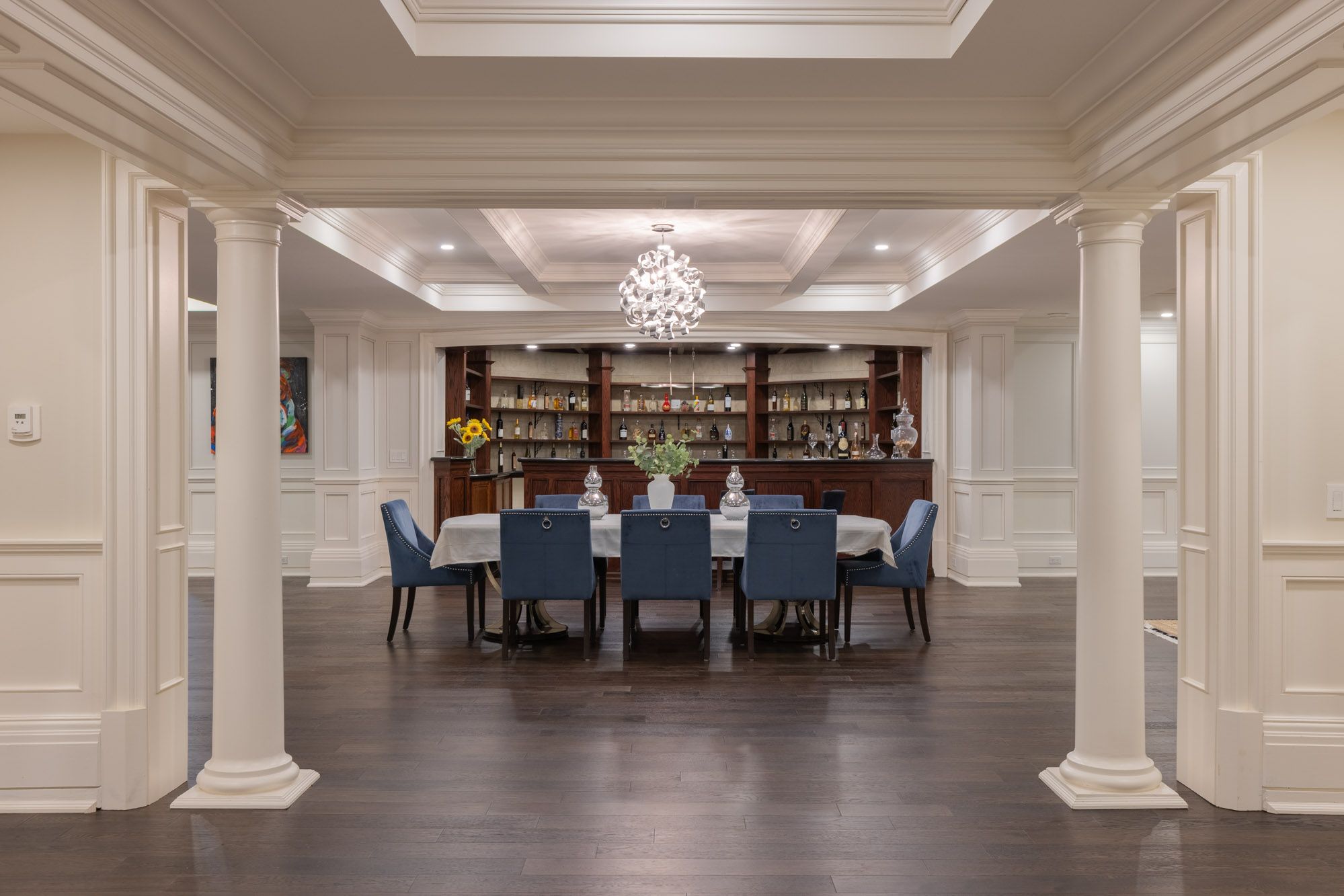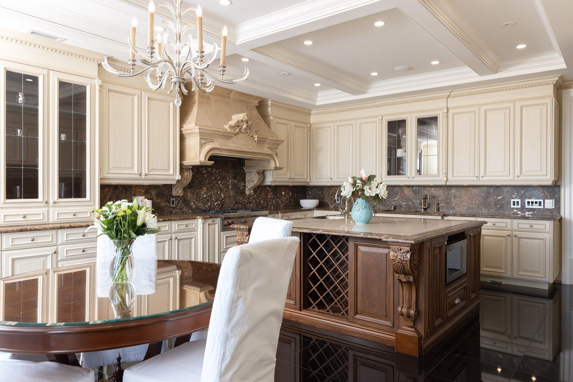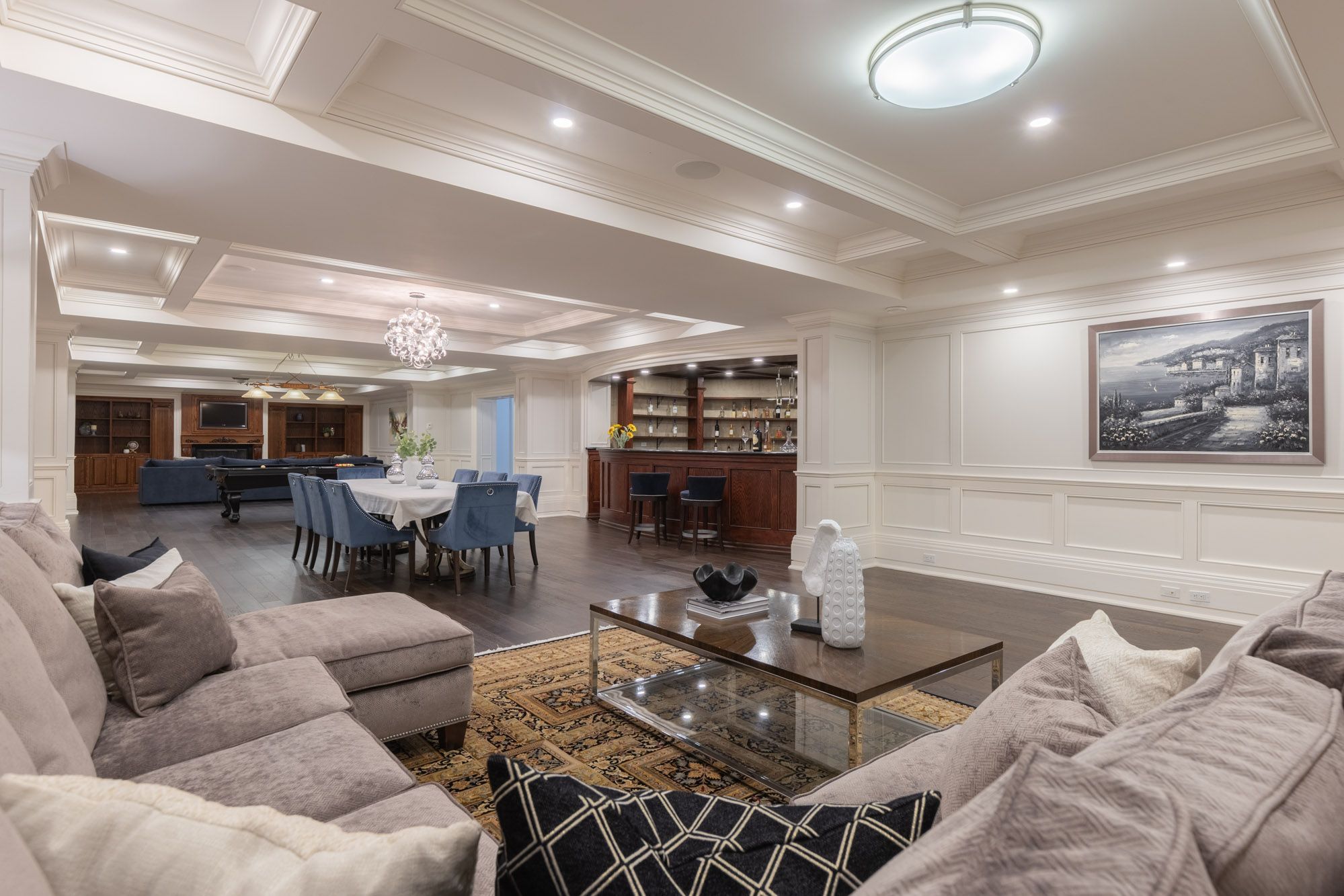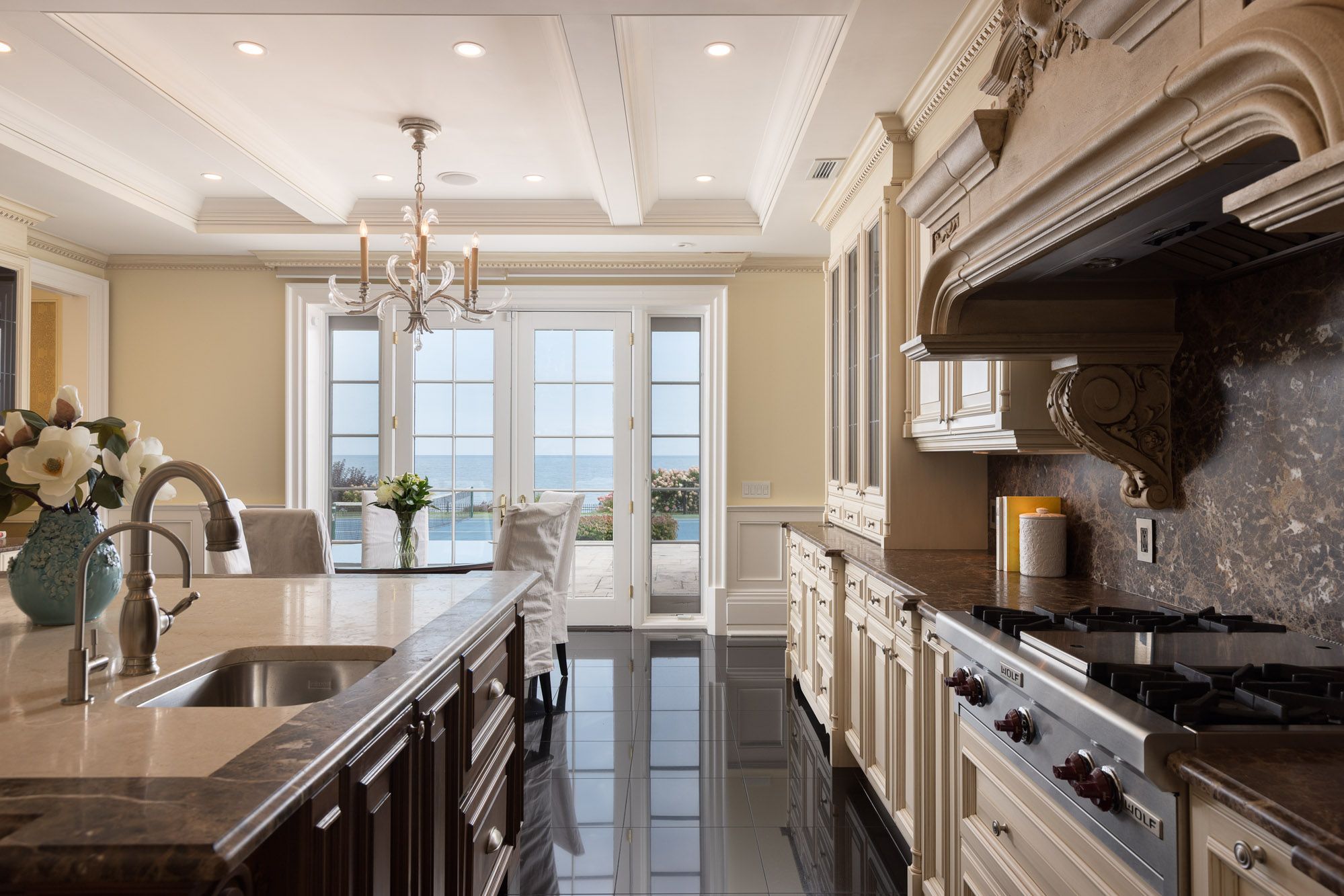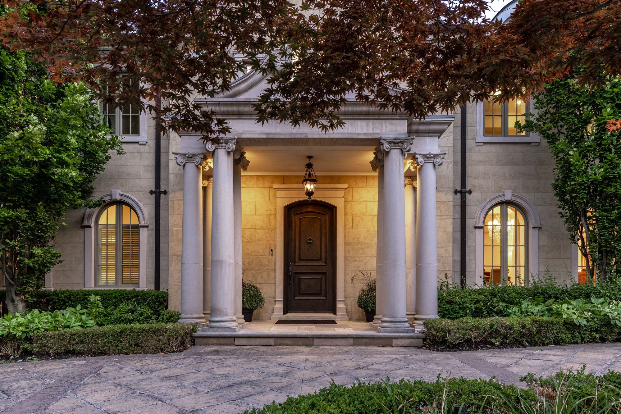 Commanding a prized stretch of Lake Ontario shoreline in prestigious South East Oakville, this Hicks-Pettes-designed estate defines European elegance and modern grandeur. A limestone façade with stone pillars, slate roof and copper detailing signal architectural pedigree of the highest order. Behind the gated, heated circular drive and stately covered porch, more than 14,000 sq. ft. of elevator-served luxury unfolds. From the moment you enter, panoramic lake vistas sweep across every principal room, creating an unforgettable backdrop for both intimate family life and grand entertaining. Radiant-heated marble floors and a soaring 22-foot illuminated barrel ceiling set a tone of sophisticated drama. Formal living and entertaining salons, each with hand-carved stone fireplaces, open to expansive lake-view terraces, while the sun-filled solarium captures year-round vistas of the tennis court and shimmering water beyond. A chefs kitchen with separate caterers prep area balances everyday ease with gala-scale hosting. Completing the main level, a richly paneled library provides a quiet, distinguished retreat for work or reflection. Five lavish bedroom suites each with private ensuite include a primary sanctuary with spa-inspired bath and private lake-view balcony. The lower level becomes a private club: temperature-controlled wine cellar and bar, theatre, banquet hall, gym, nanny suite and second laundry. Outdoors, French-inspired gardens, sound-equipped terraces and a full tennis court embrace the lakes breezes and golden sunsets. This is Oakvilles ultimate lakefront legacy residence - where unrivalled, world-class vistas from every principal room meet architectural mastery and resort-style amenities to create a property of true international calibre. Luxury Certified.