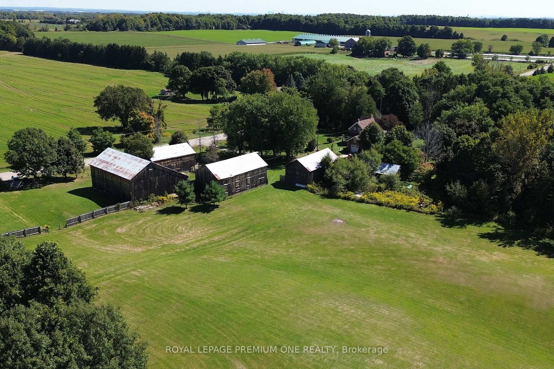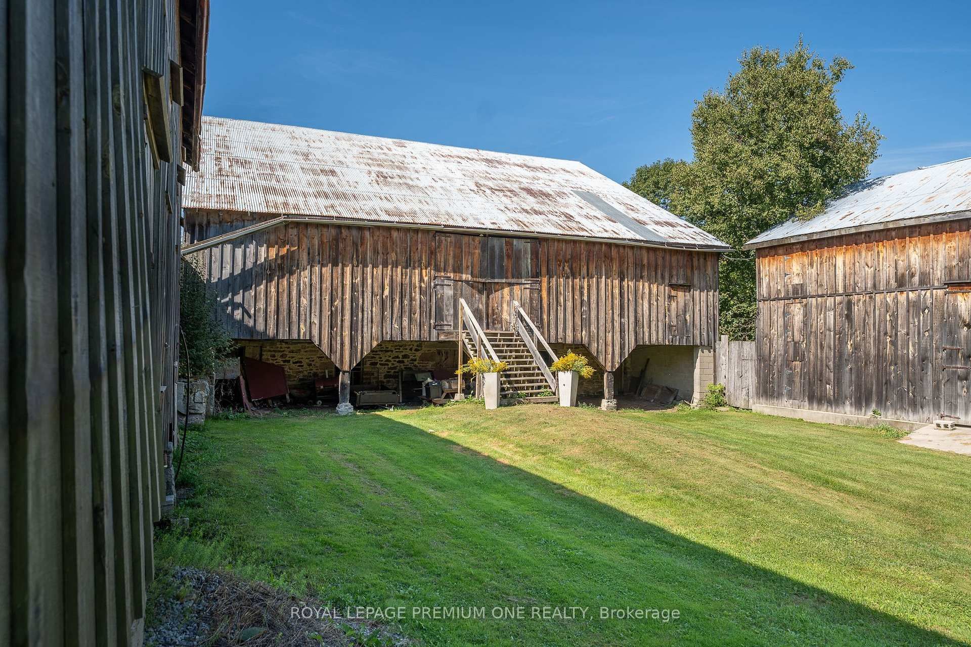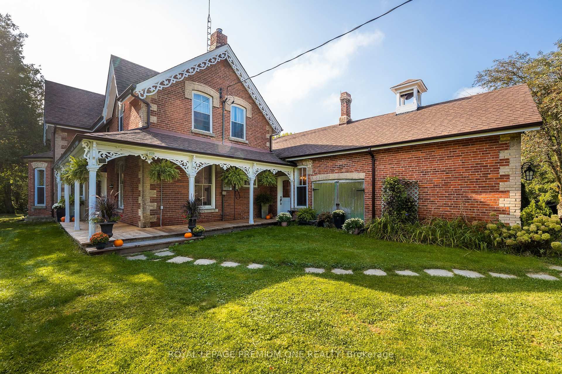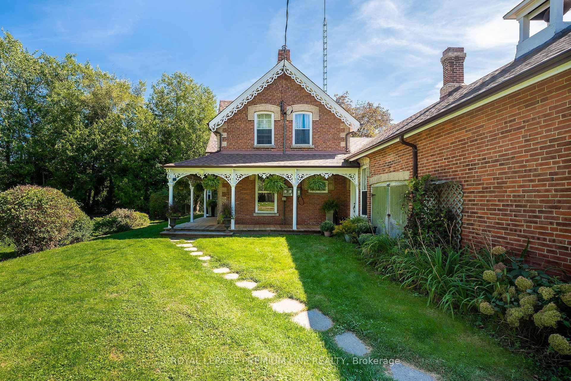 Bursting with charm and storied in history. This 1864 gem and 5 out buildings are with period features and old-world character. The Alexander Smith farmhouse is a good representation of the vernacular style known as "Ontario Gothic". This style is the L-Shaped floor plan, polychromatic brick patterning, buff brick quoins and voussoirs. The residence also has coursed polychromatic end chimneys, a projecting bay window, lancet & paired gable windows. A porch with decorative bargeboards wraps around the NE corner of the house. Attached to the NW corner of the house is the summer kitchen & brick carriage house with the original farm bell on the roof. Located across the farm lane, are the 5 out buildings. The buildings consist of the chicken house, implement shed, and three timber frame barns set in a U-Shape, all with medium pitched gable roofs & board and batten cladding. The farm complex is surrounded by a mix of open fields, natural growth cedar & areas of reforestation. A cedar rail fence lines the property. Make this property your hobby farm or transform it into an income property by way of hosting events like weddings or corporate gatherings. How about turning it into a wellness retreat or a bed & breakfast. Even add additional outbuildings and increase your income capabilities. The opportunities at this farm complex are endless.