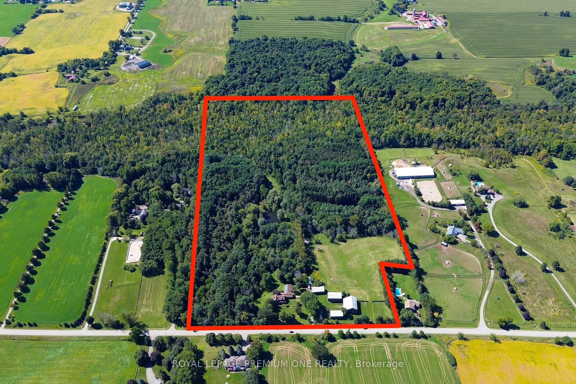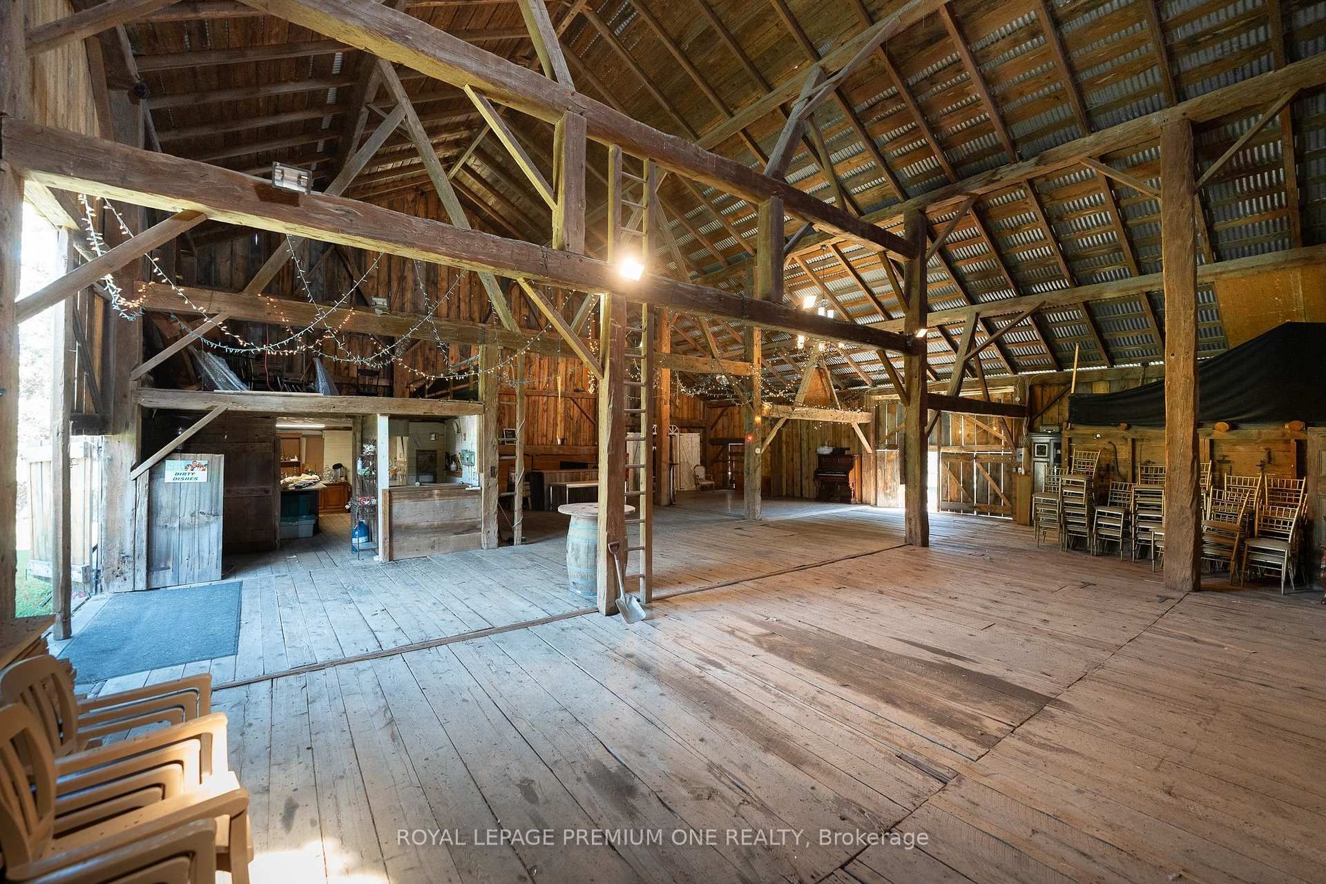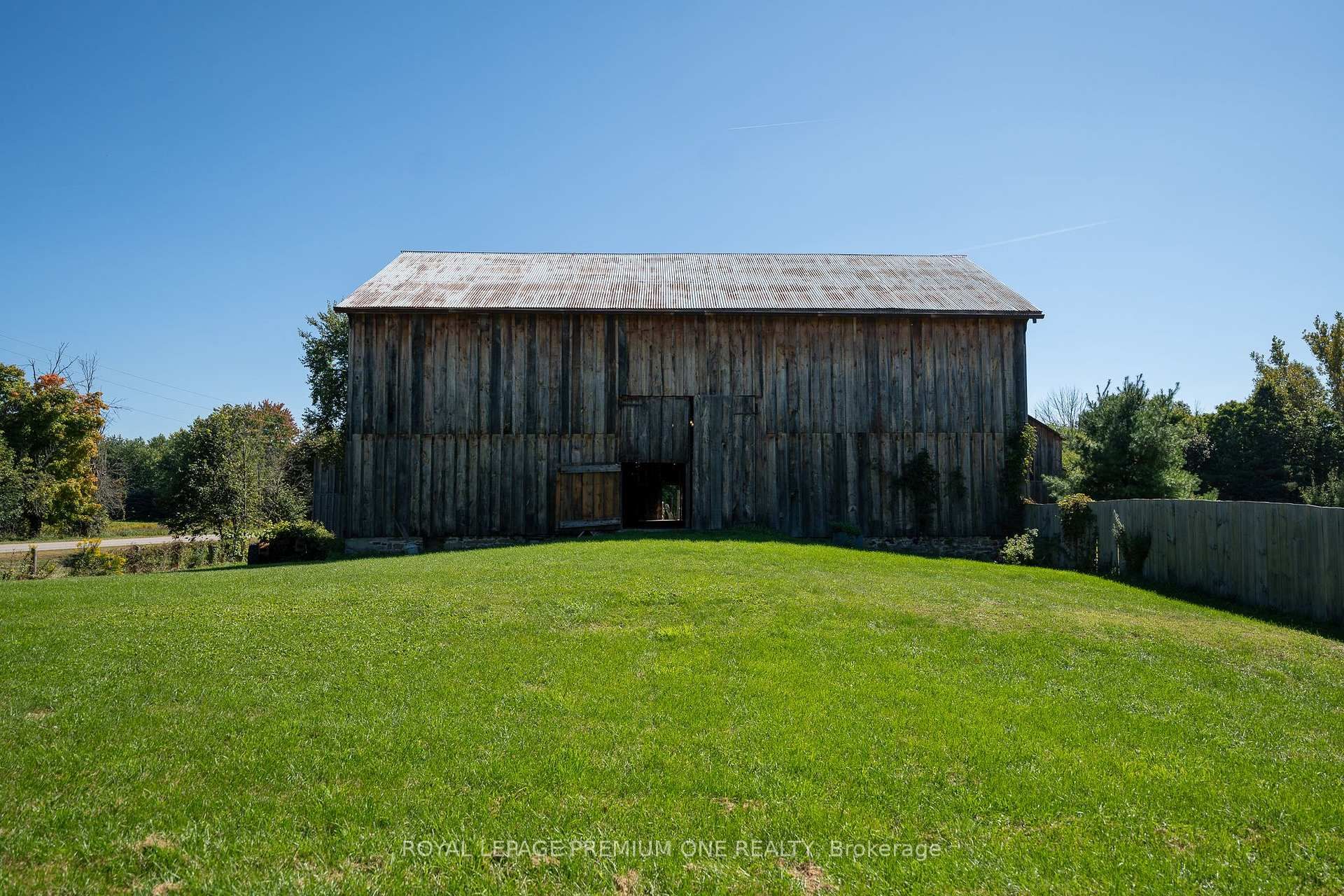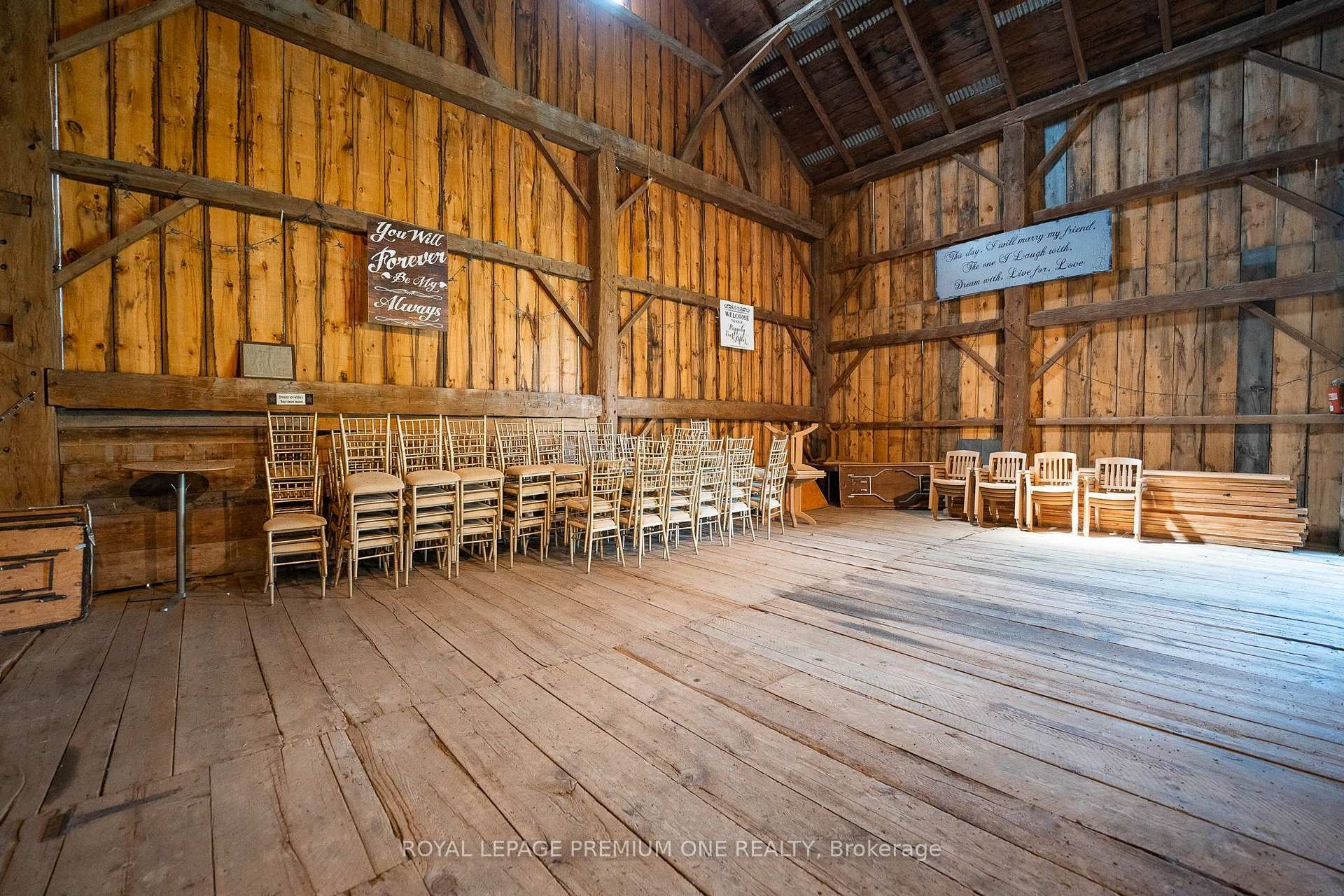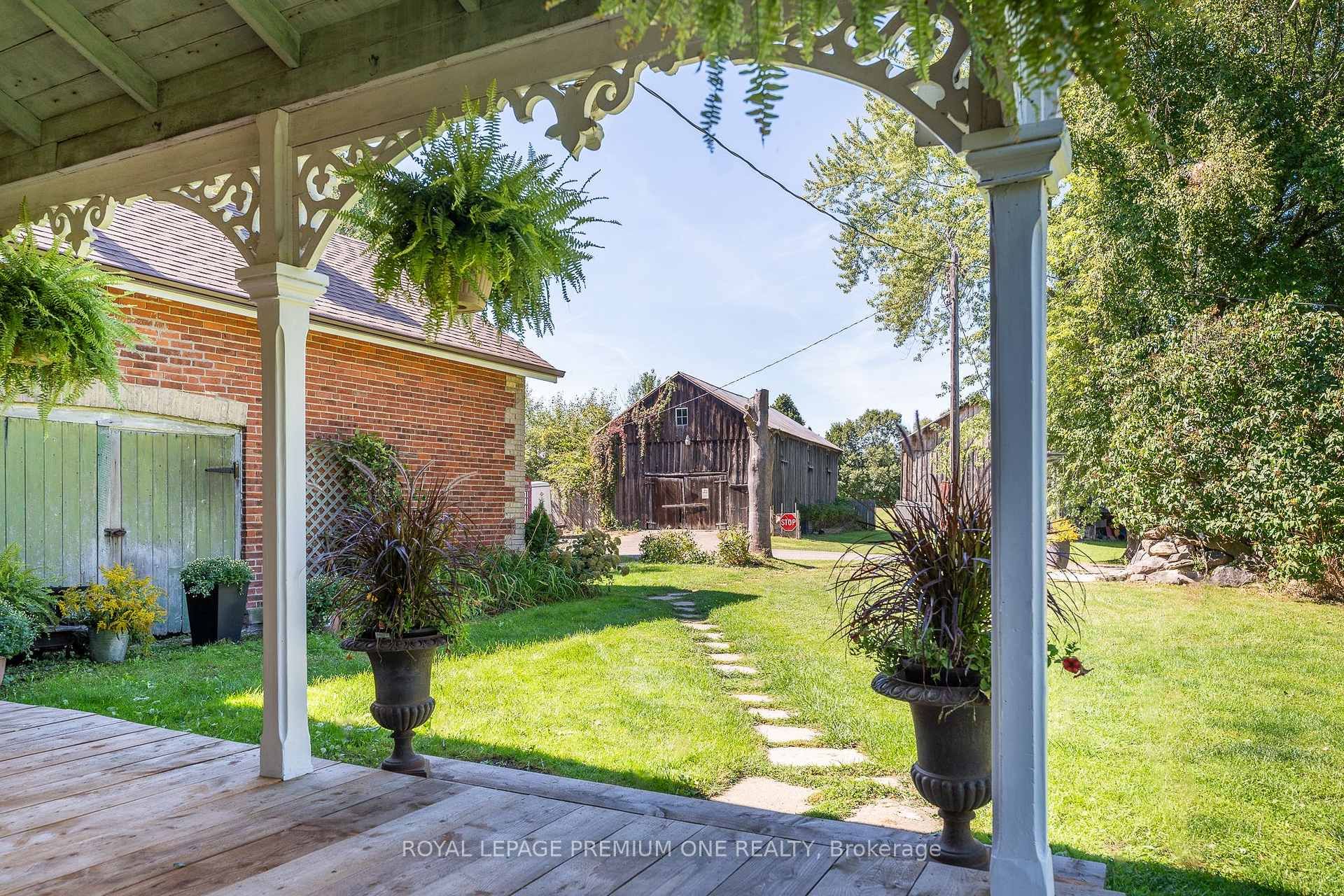 Bursting with charm and storied in history. This 1864 gem and 5 out buildings are with period features and old-world character. The Alexander Smith farmhouse is a good representation of the vernacular style known as "Ontario Gothic". This style is the L-Shaped floor plan, polychromatic brick patterning, buff brick quoins and voussoirs. The residence also has coursed polychromatic end chimneys, a projecting bay window, lancet & paired gable windows. A porch with decorative bargeboards wraps around the NE corner of the house. Attached to the NW corner of the house is the summer kitchen & brick carriage house with the original farm bell on the roof. Located across the farm lane, are the 5 out buildings. The buildings consist of the chicken house, implement shed, and three timber frame barns set in a U-Shape, all with medium pitched gable roofs & board and batten cladding. The farm complex is surrounded by a mix of open fields, natural growth cedar & areas of reforestation. A cedar rail fence lines the property. Make this property your hobby farm or transform it into an income property by way of hosting events like weddings or corporate gatherings. How about turning it into a wellness retreat or a bed & breakfast. Even add additional outbuildings and increase your income capabilities. The opportunities at this farm complex are endless.