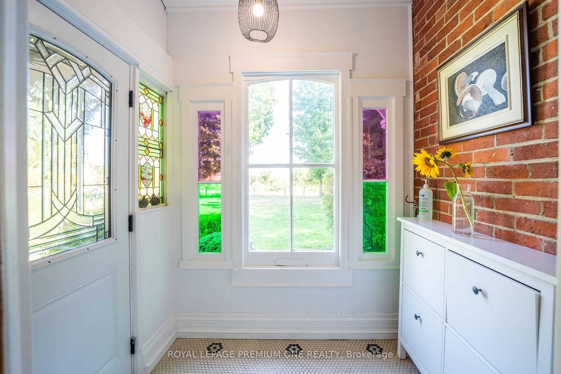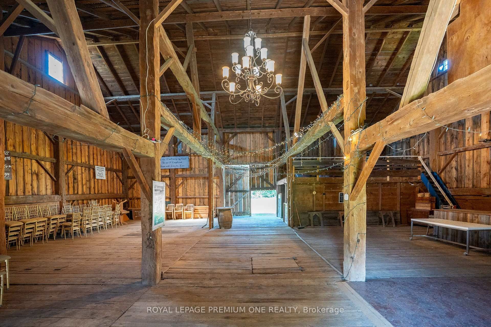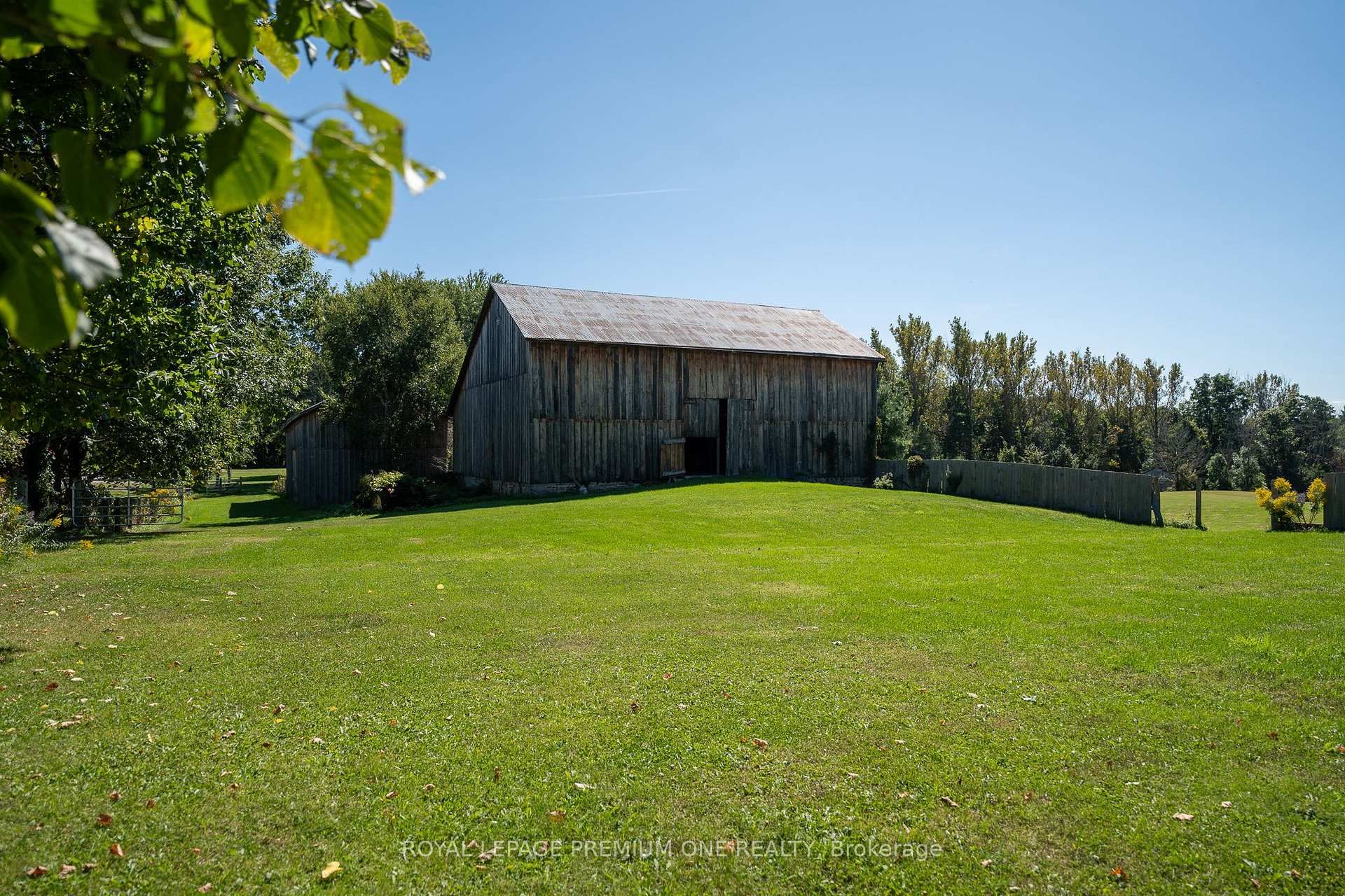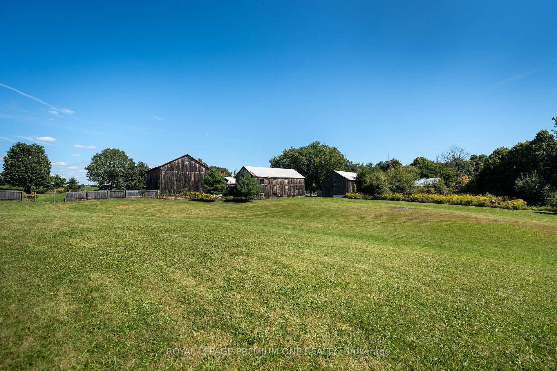 Bursting with charm and storied in history. This 1864 gem and 5 out buildings are with period features and old-world character. The Alexander Smith farmhouse is a good representation of the vernacular style known as "Ontario Gothic". This style is the L-Shaped floor plan, polychromatic brick patterning, buff brick quoins and voussoirs. The residence also has coursed polychromatic end chimneys, a projecting bay window, lancet & paired gable windows. A porch with decorative bargeboards wraps around the NE corner of the house. Attached to the NW corner of the house is the summer kitchen & brick carriage house with the original farm bell on the roof. Located across the farm lane, are the 5 out buildings. The buildings consist of the chicken house, implement shed, and three timber frame barns set in a U-Shape, all with medium pitched gable roofs & board and batten cladding. The farm complex is surrounded by a mix of open fields, natural growth cedar & areas of reforestation. A cedar rail fence lines the property. Make this property your hobby farm or transform it into an income property by way of hosting events like weddings or corporate gatherings. How about turning it into a wellness retreat or a bed & breakfast. Even add additional outbuildings and increase your income capabilities. The opportunities at this farm complex are endless.